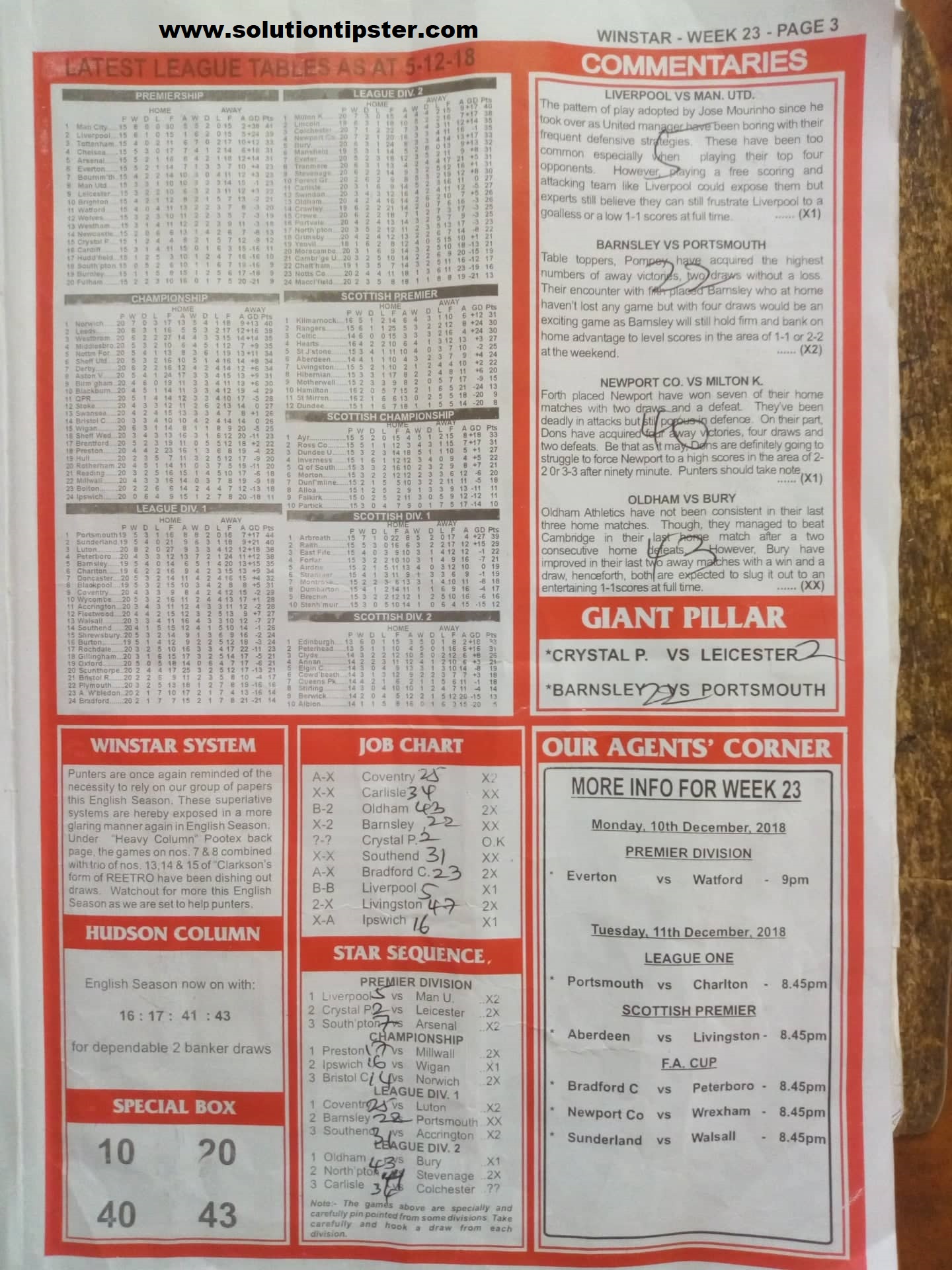 Week 23 Pool RSK Papers 2018: Soccer, Bob Morton, Capital, Winstar, Big Win December 9, 2018 SolutionTipster Admin FOOTBALL POOLS, POOL RSK PAPERS 0 Welcome to week 23 pool rsk papers page; click on the images to view more clearly.Special Advance FixturesRight On FixturesSoccer ResearchBob MortonCapital InternationalWinstar Big Win Happy Forecasting…