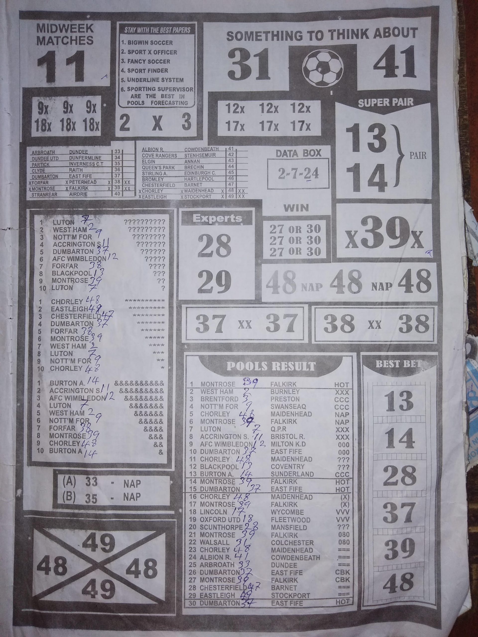 Here, we furnish you with weekly and current pool rsk papers for your forecast and winning pleasure. Click on the images to view more clearly. Enjoy