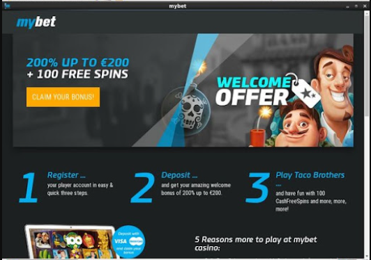 Mybet Casino will then reward you with a bonus come. Note that the welcome bonus is for new users only.