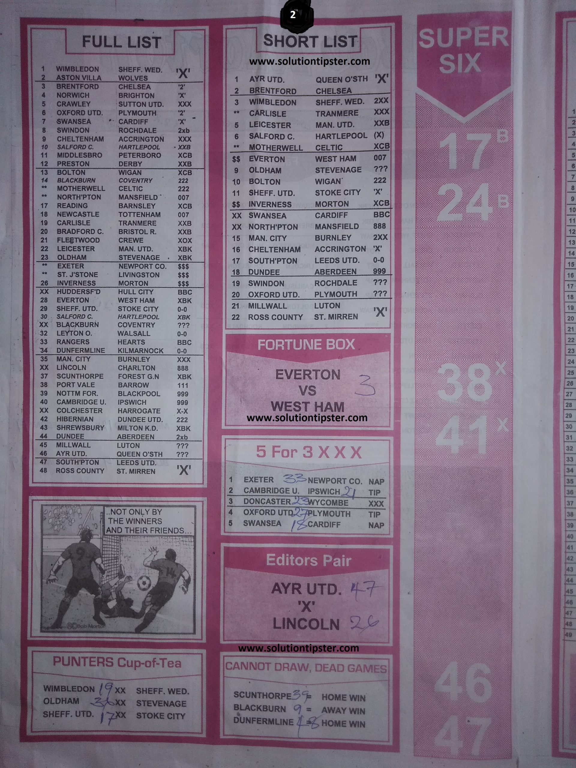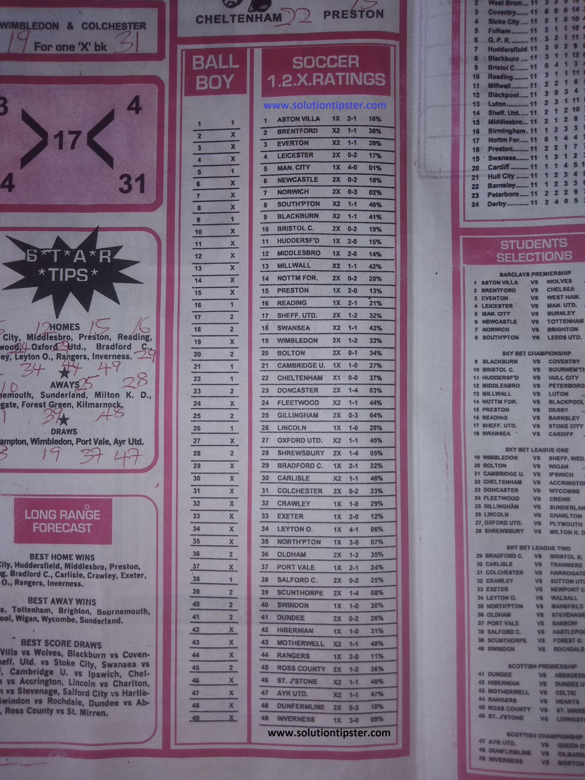Here, we furnish you with weekly and current pool rsk papers for your forecast and winning pleasure. Click on the images to view more clearly. Enjoy