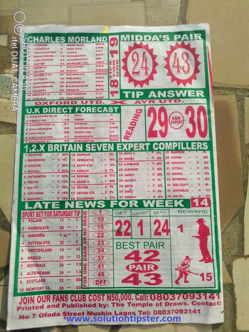 However, for those that stake their coupons through us hand via our online pool agent office, the papers will be dully delivered to you in the whatsapp group.