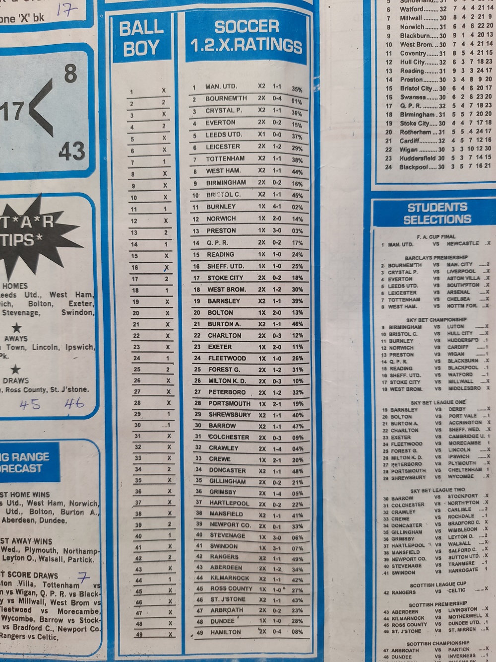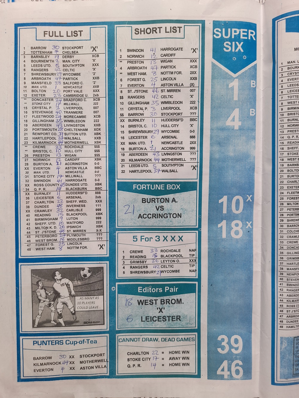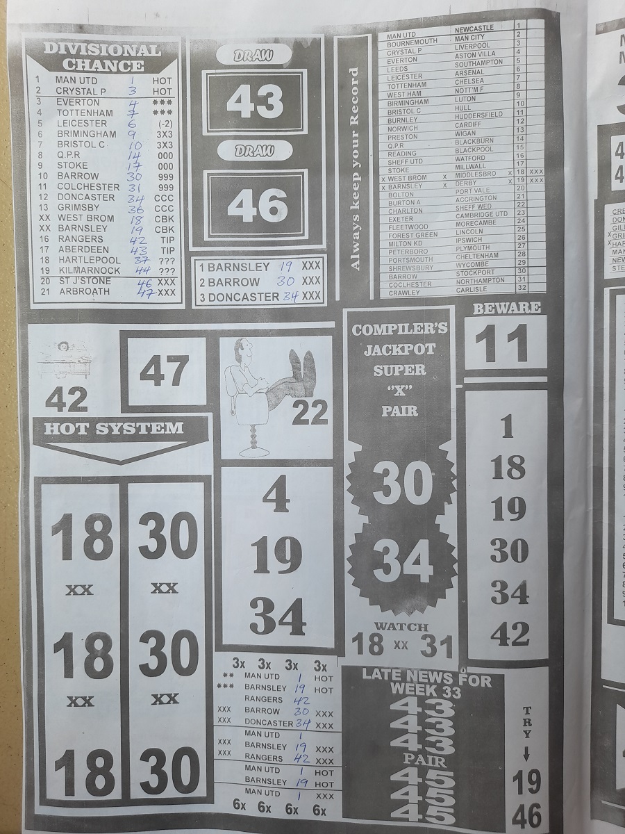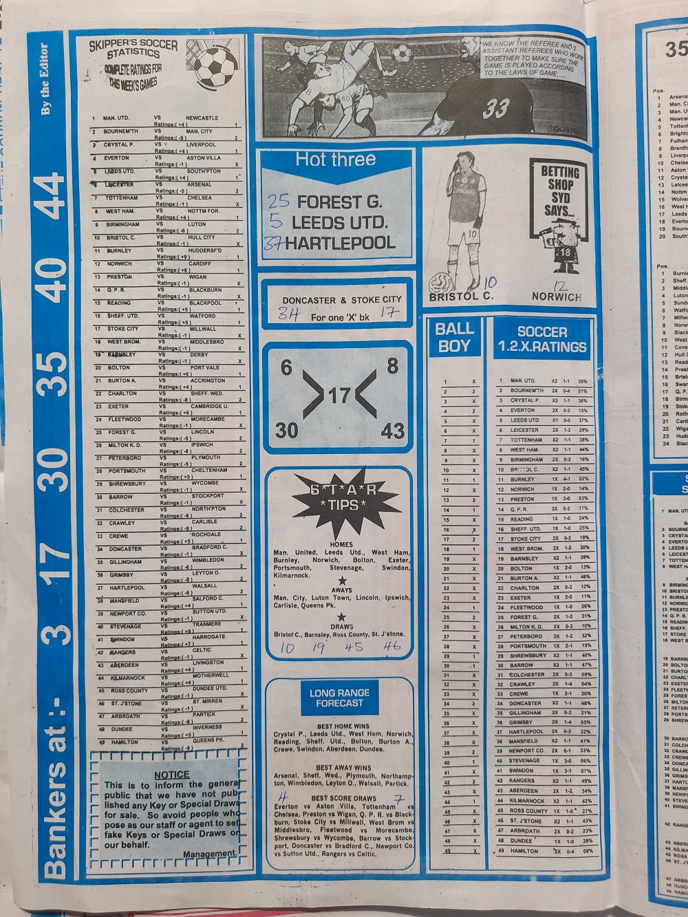 Here, we furnish you with weekly and current pool rsk papers for your forecast and winning pleasure. Click on the images to view more clearly. Enjoy