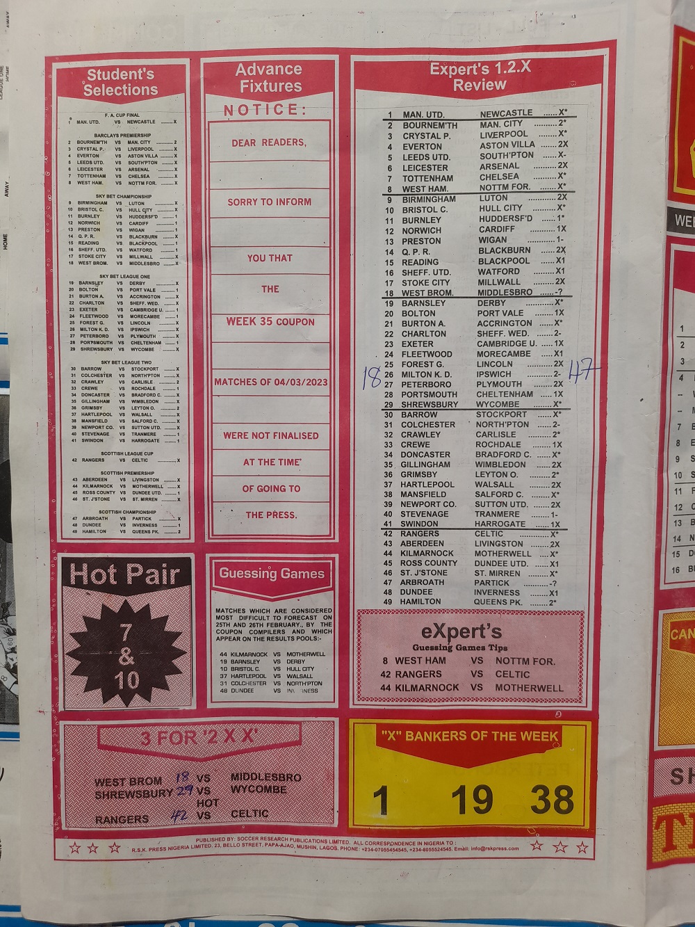 However, for those that stake their coupons through us hand via our online pool agent office, the papers will be dully delivered to you in the whatsapp group.