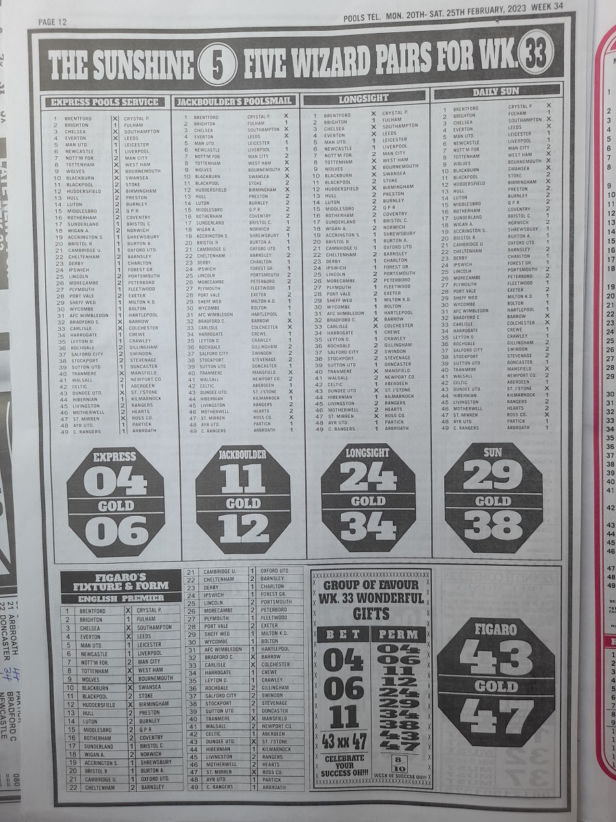 TO VIEW PREVIOUS WEEKS,GO TO WEEKLY POOLS RSK PAPERS ARCHIVE