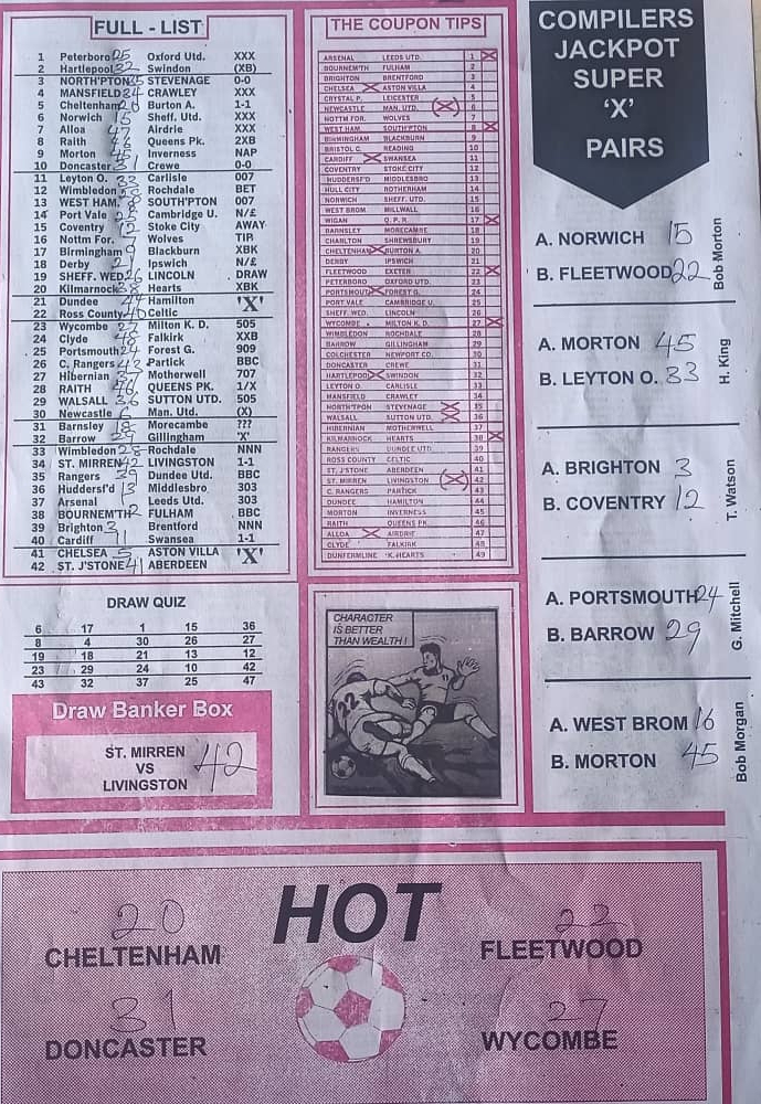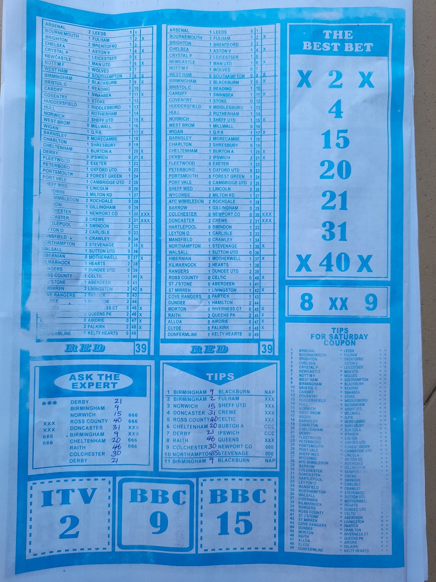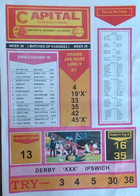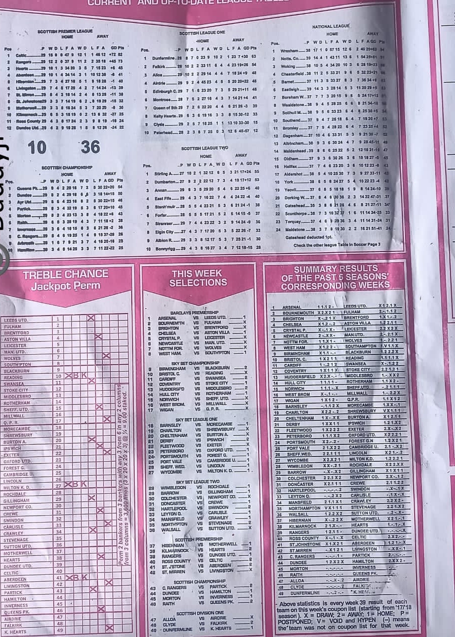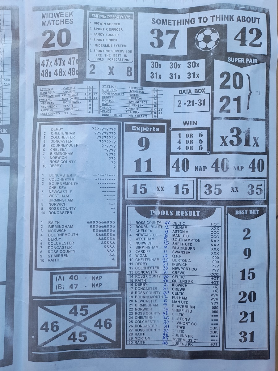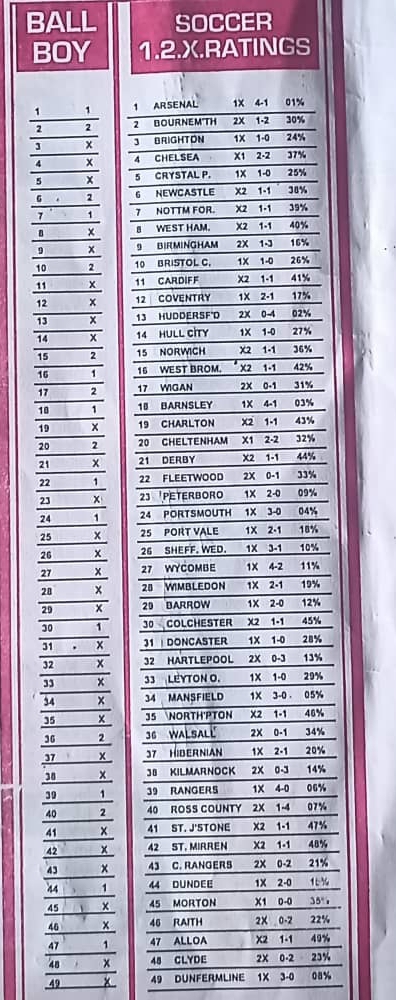 Here, we furnish you with weekly and current pool rsk papers for your forecast and winning pleasure. Click on the images to view more clearly. Enjoy