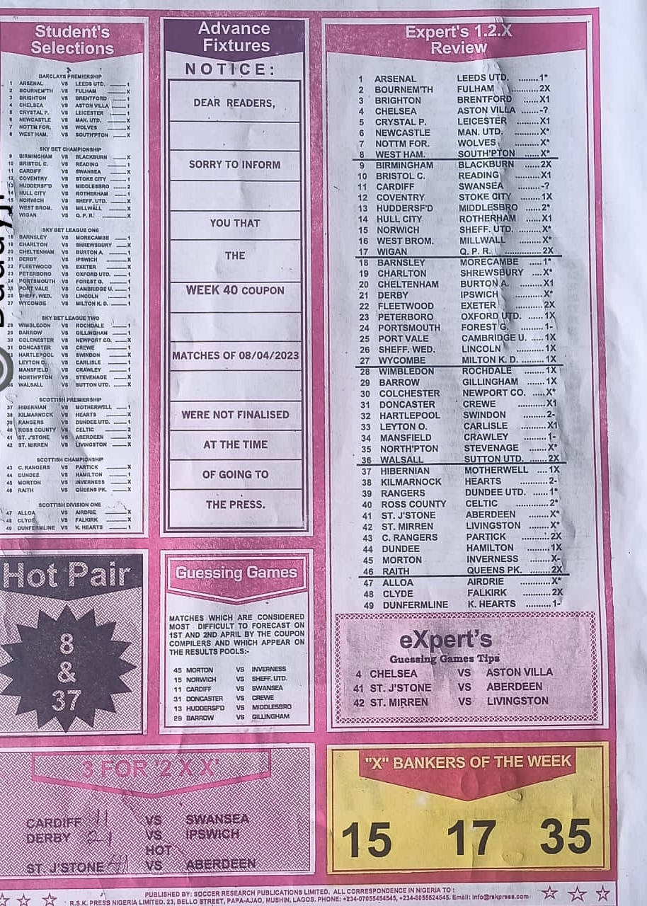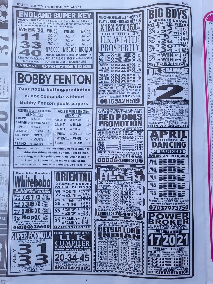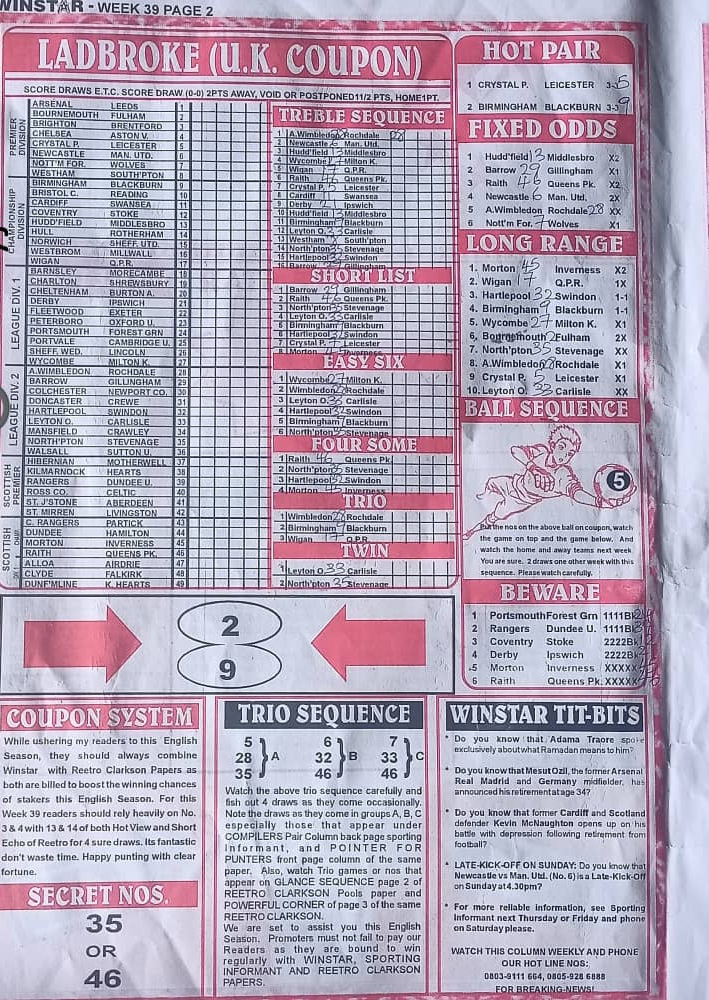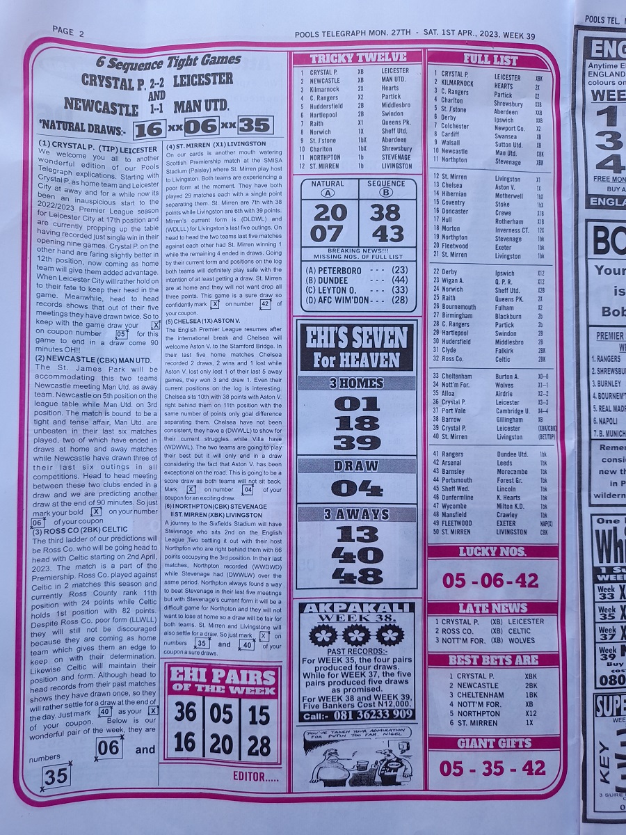 However, for those that stake their coupons through us hand via our online pool agent office, the papers will be dully delivered to you in the whatsapp group.