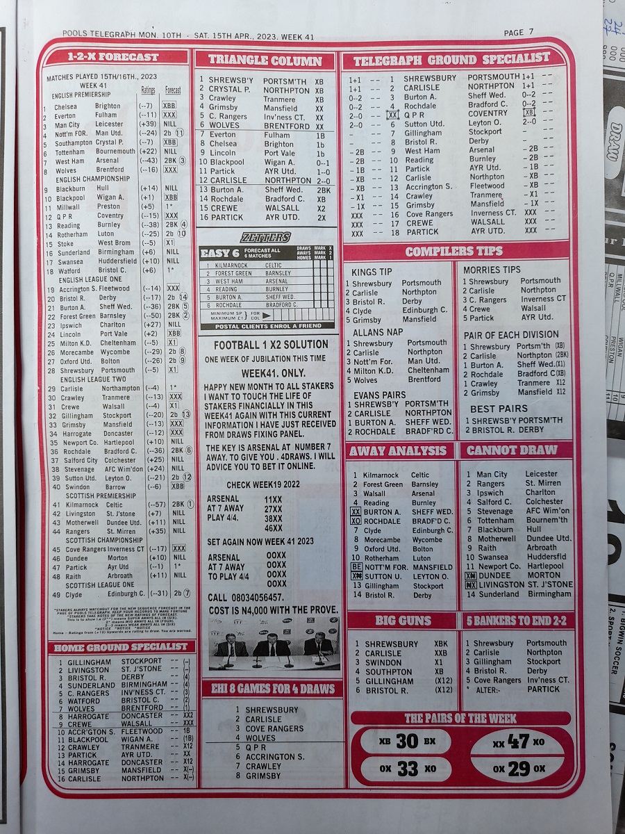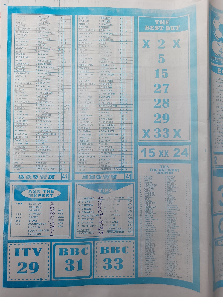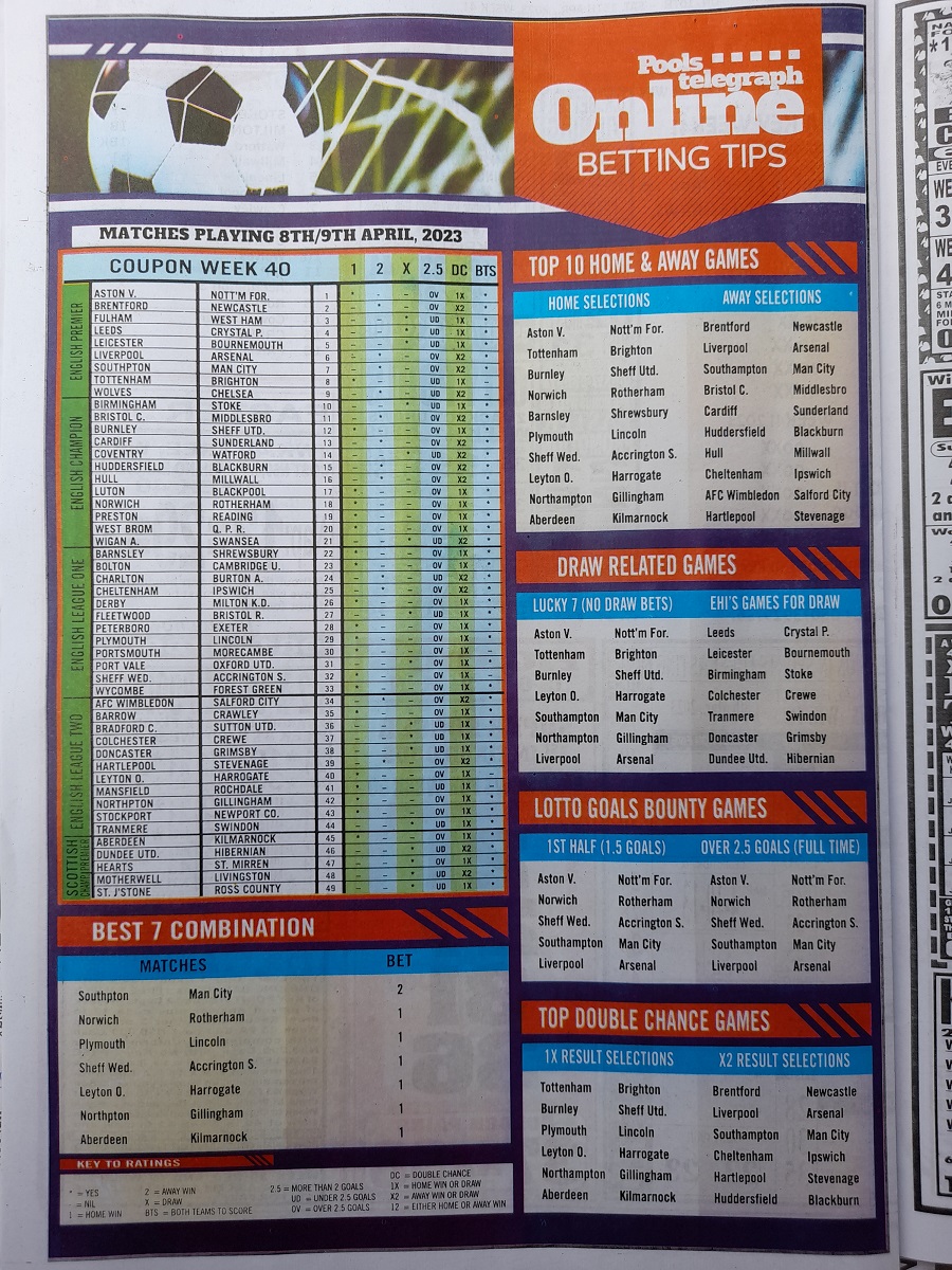 Here, we furnish you with weekly and current pool rsk papers for your forecast and winning pleasure. Click on the images to view more clearly. Enjoy