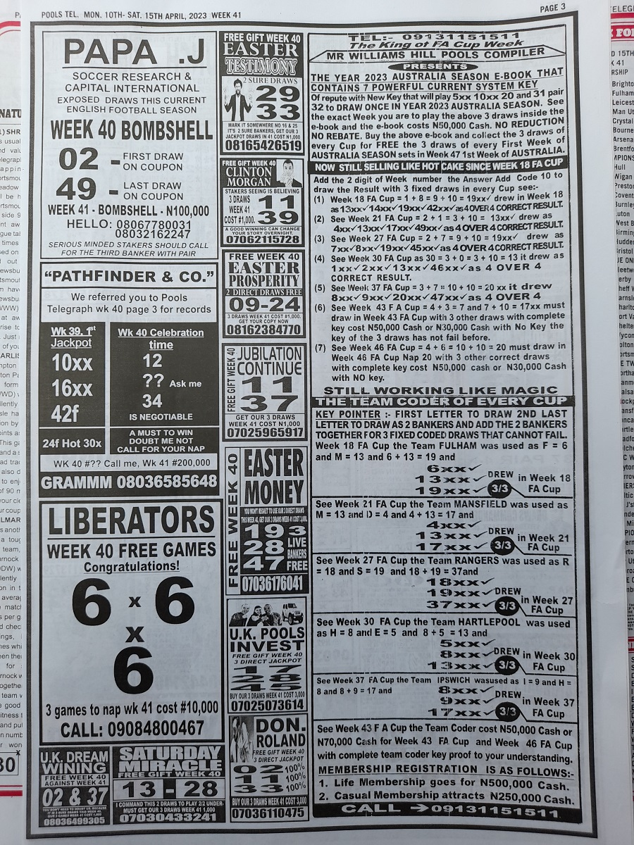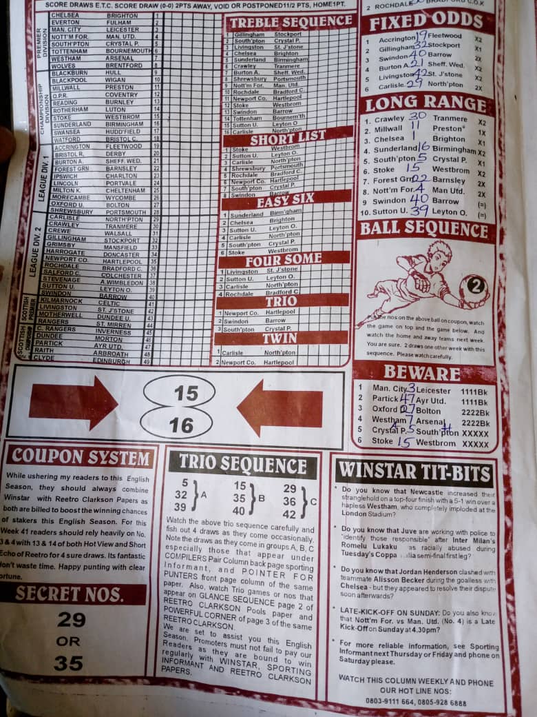 However, for those that stake their coupons through us hand via our online pool agent office, the papers will be dully delivered to you in the whatsapp group.