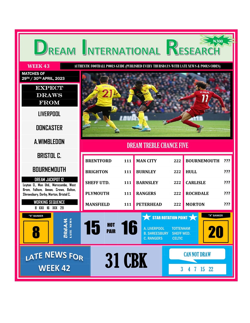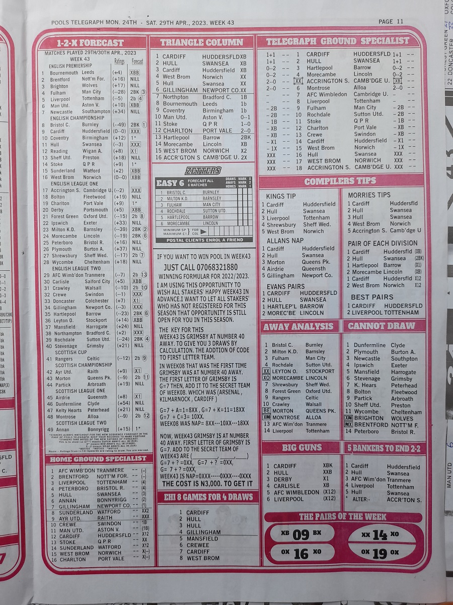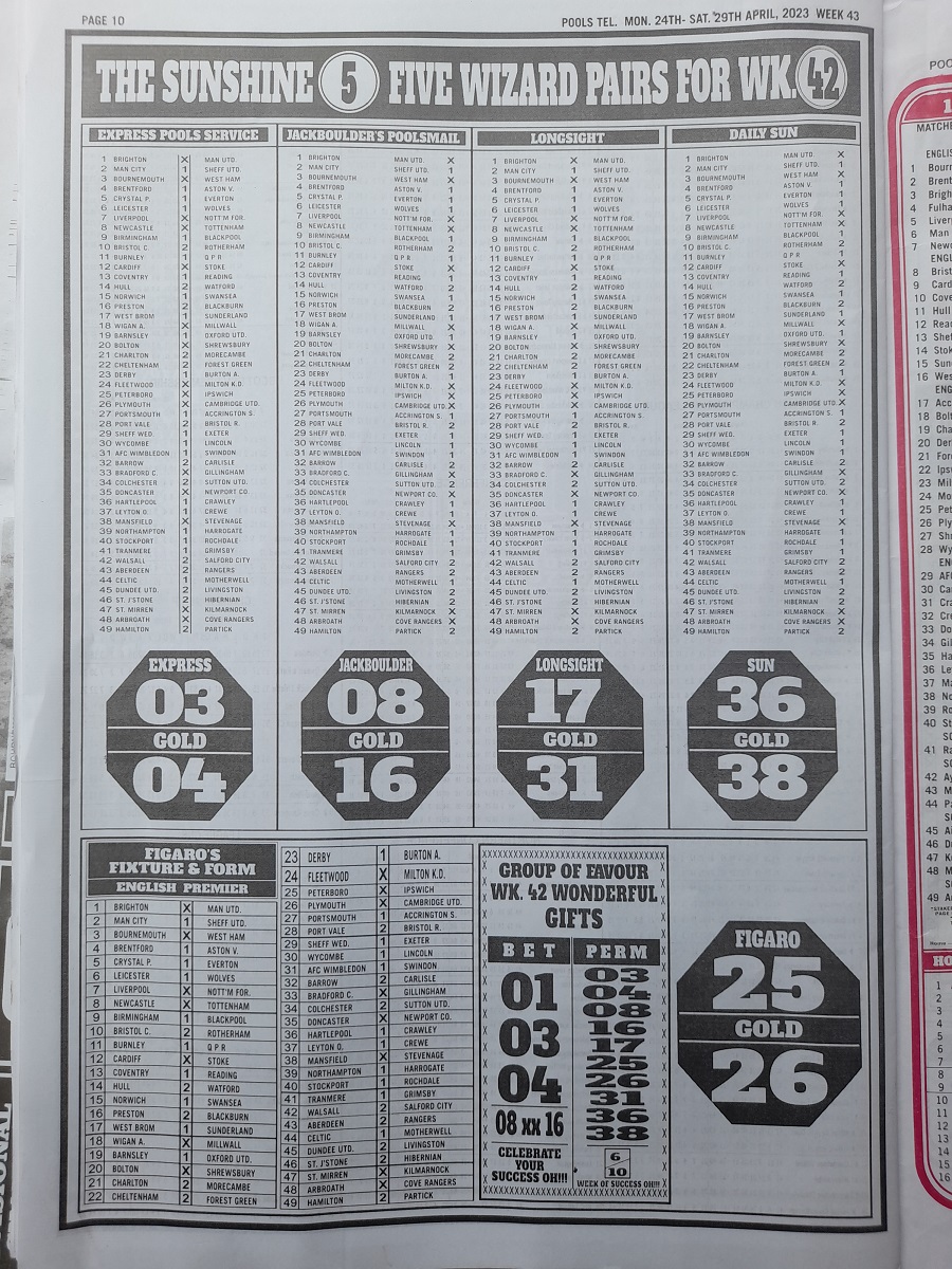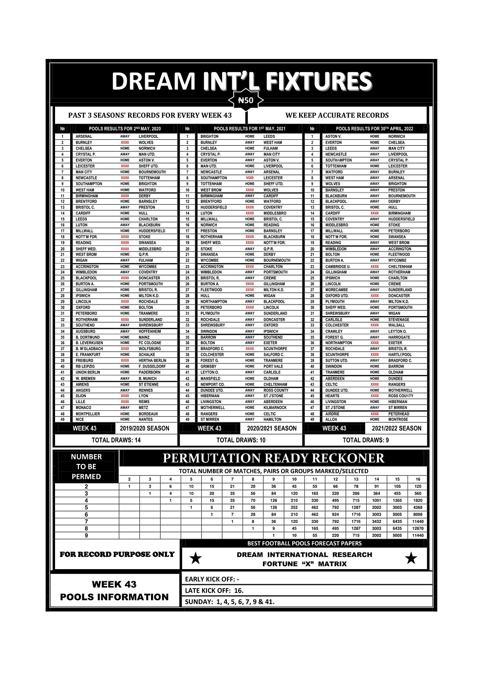 Week 43 Pools RSK Papers…. Enjoy your Forecast