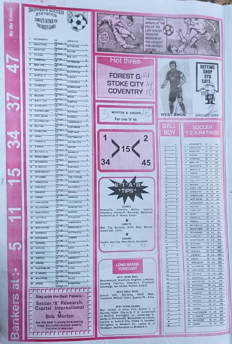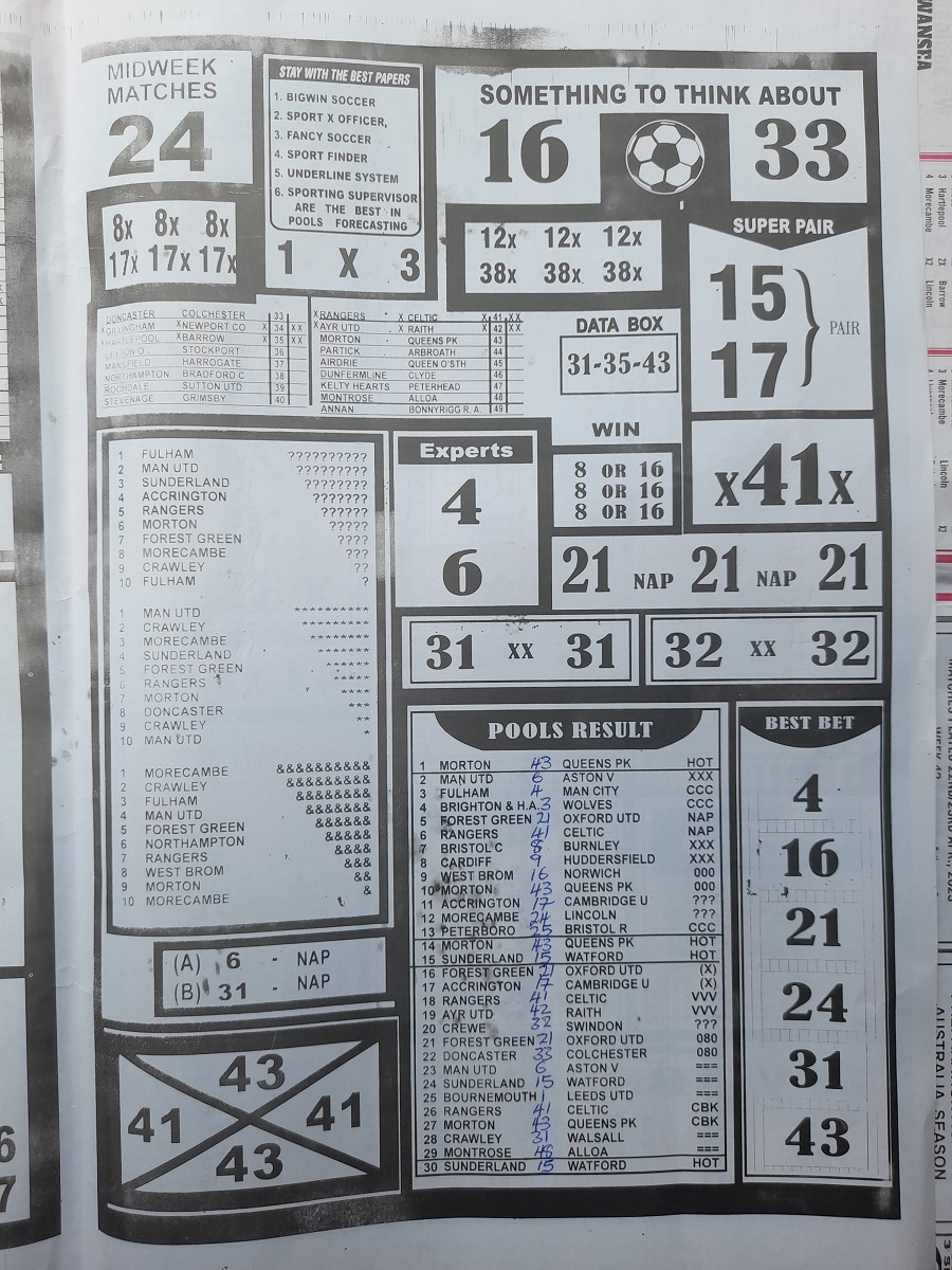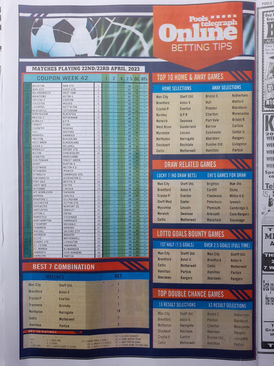 Here, we furnish you with weekly and current pool rsk papers for your forecast and winning pleasure. Click on the images to view more clearly. Enjoy