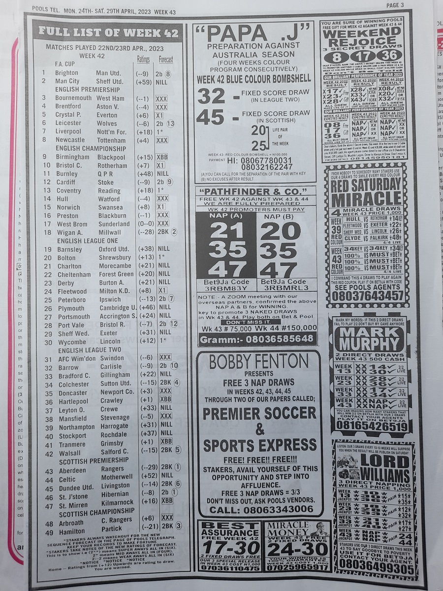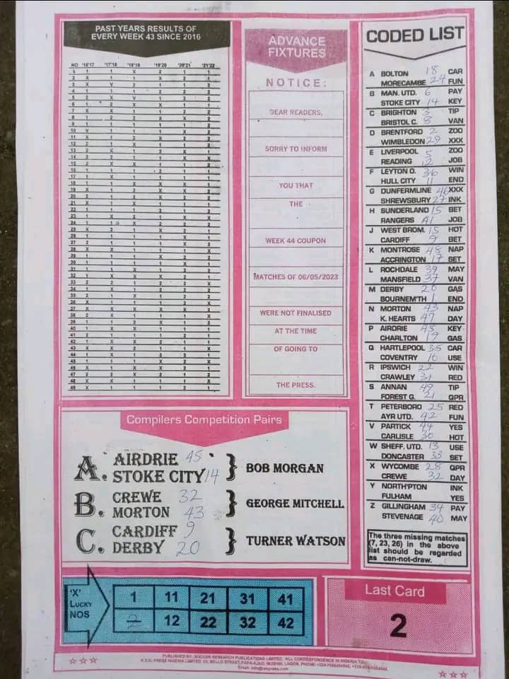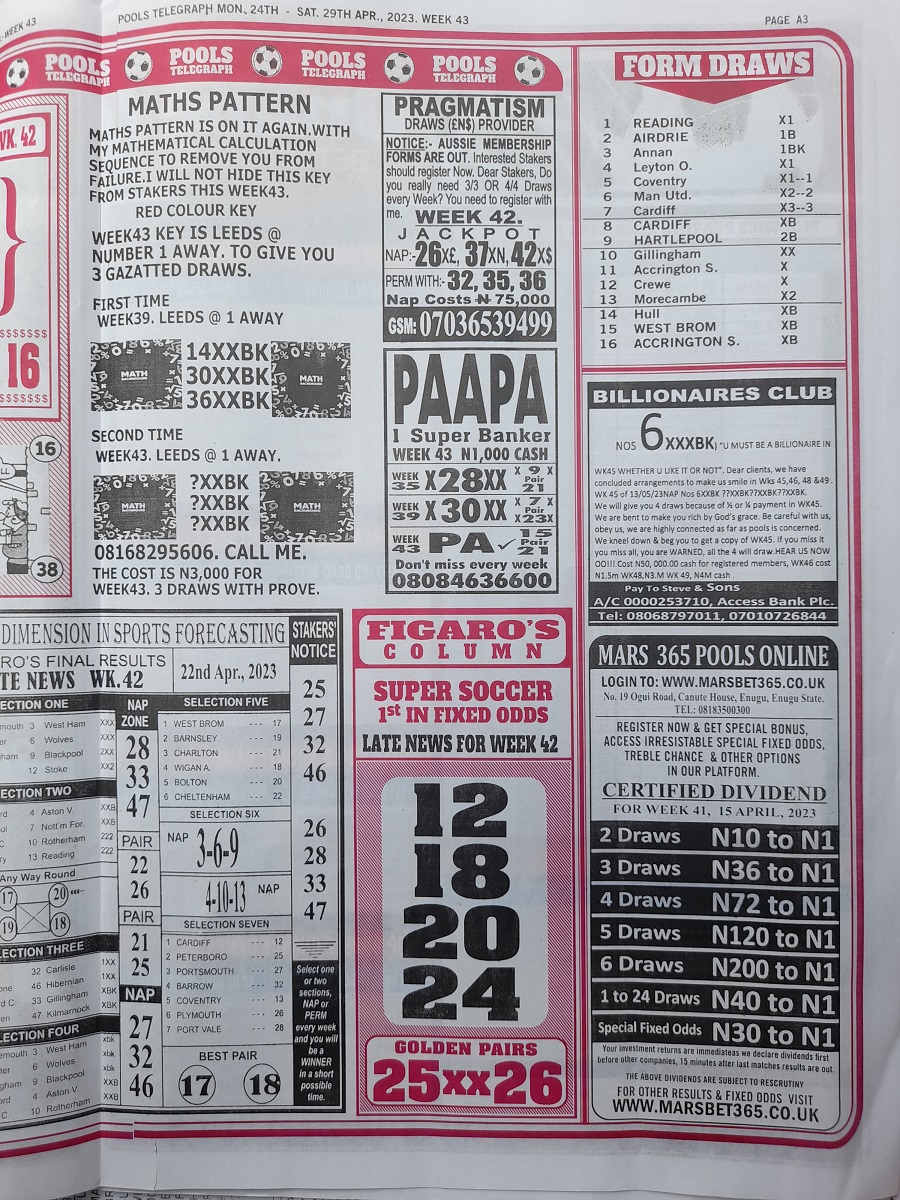 However, for those that stake their coupons through us hand via our online pool agent office, the papers will be dully delivered to you in the whatsapp group.