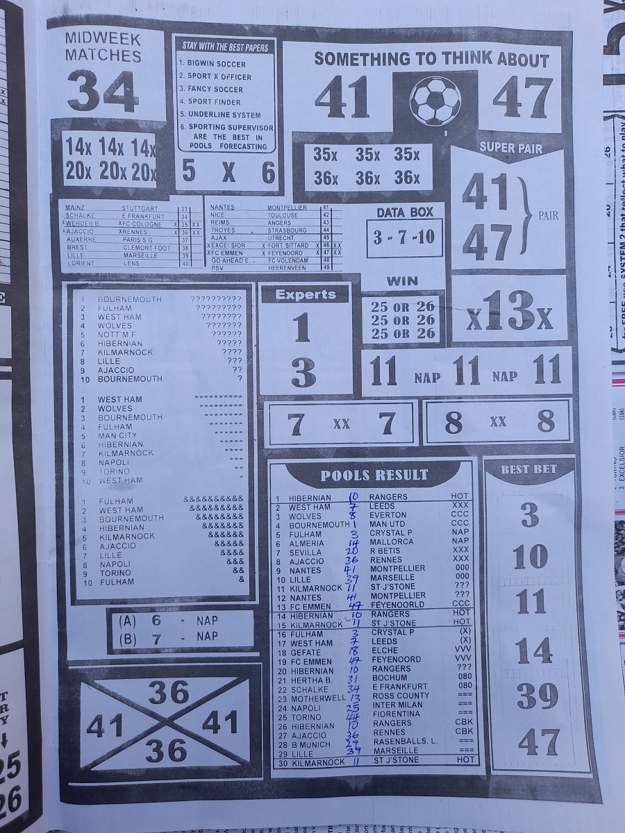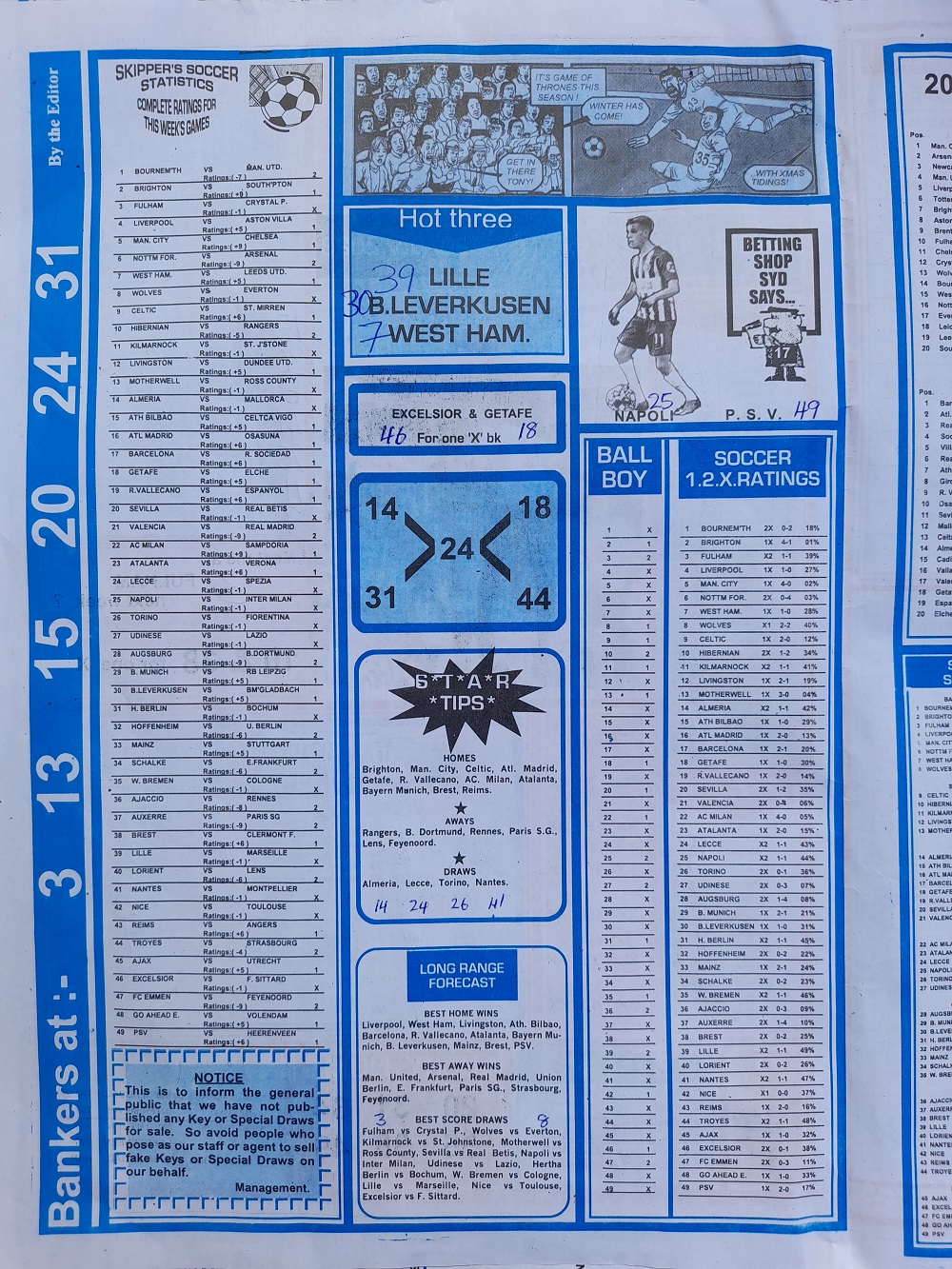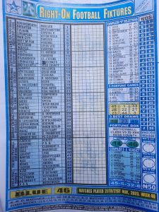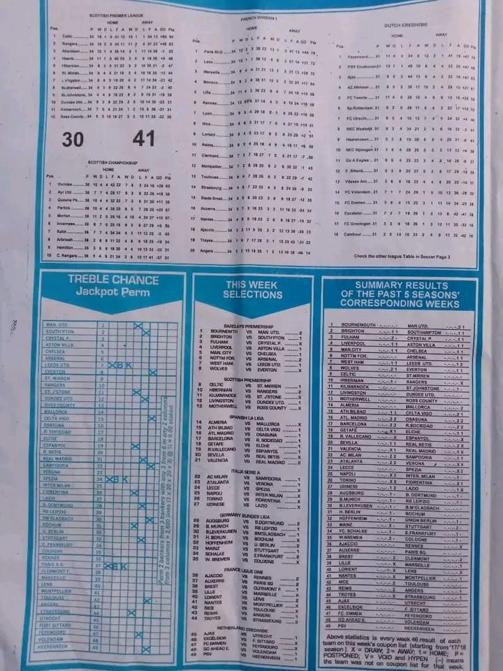 Here, we furnish you with weekly and current pool rsk papers for your forecast and winning pleasure. Click on the images to view more clearly. Enjoy