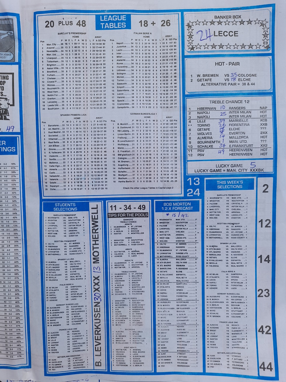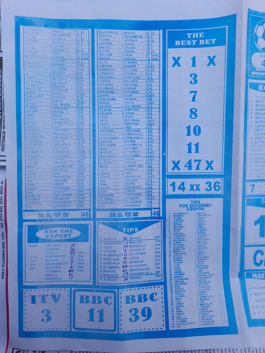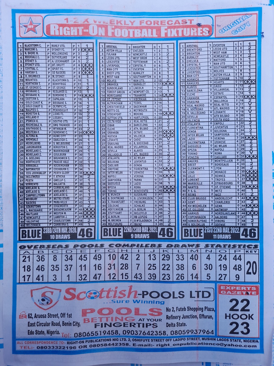 Here, we furnish you with weekly and current pool rsk papers for your forecast and winning pleasure. Click on the images to view more clearly. Enjoy