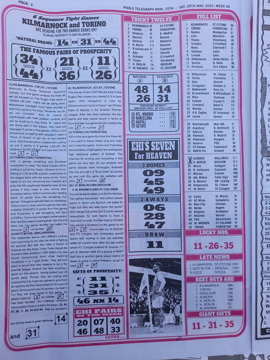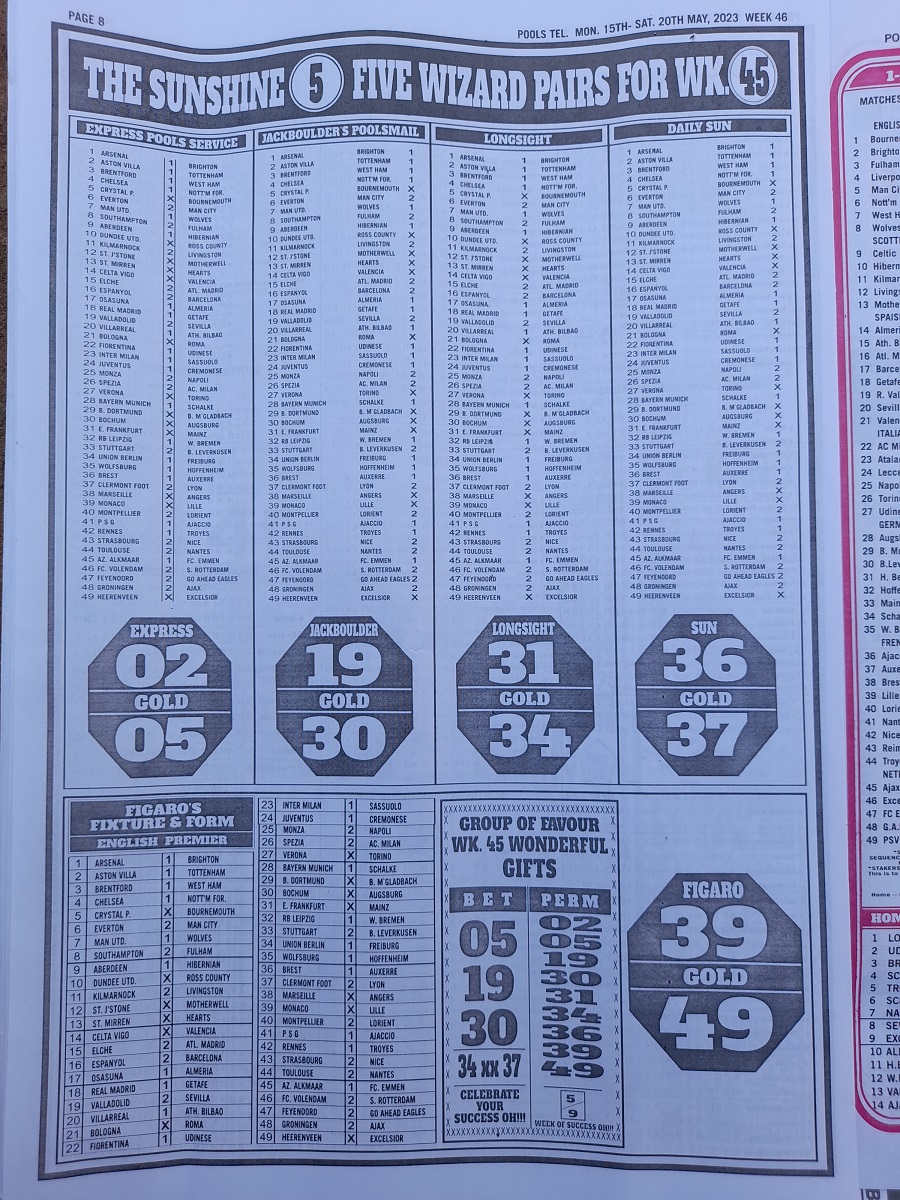Week 46 Pools RSK Papers…. Enjoy your Forecast