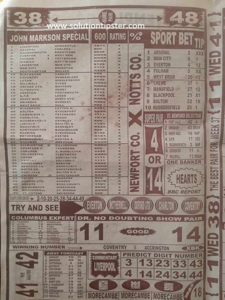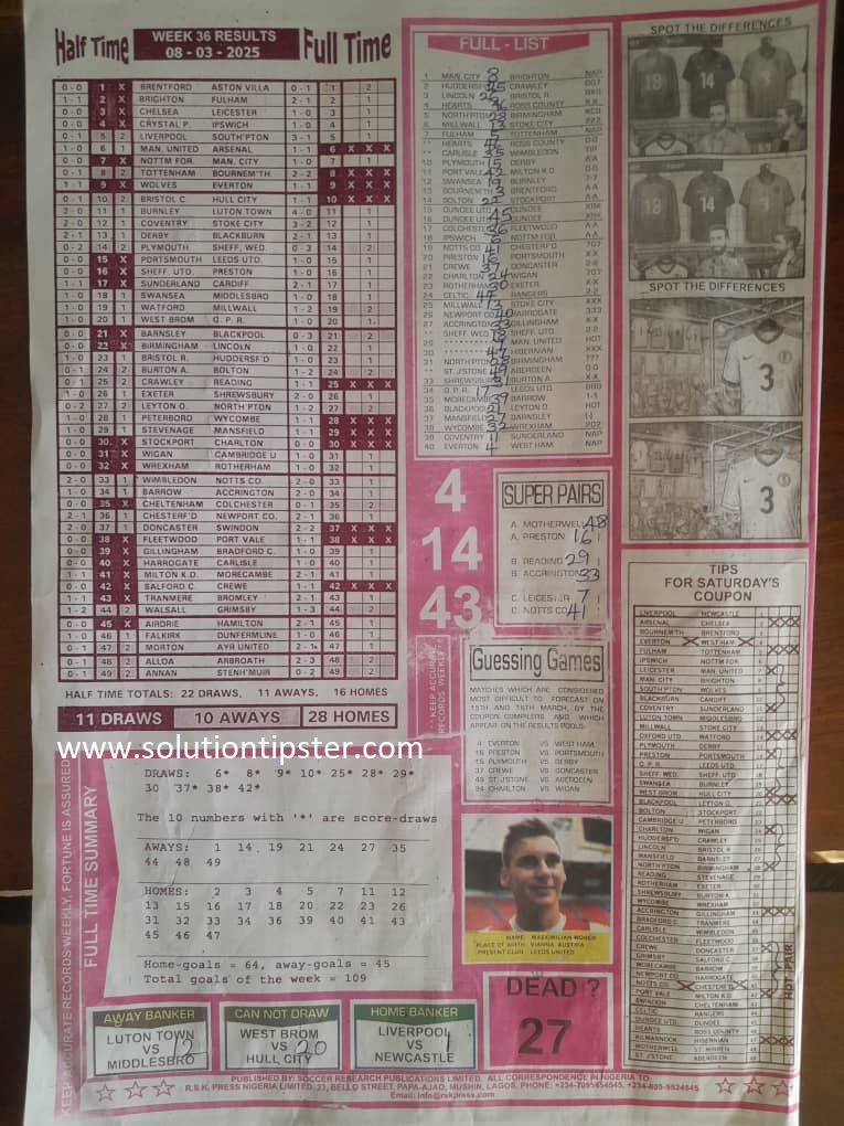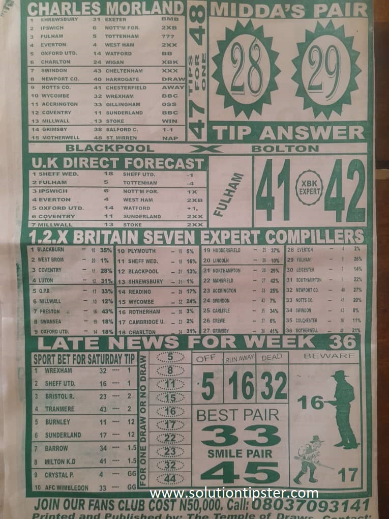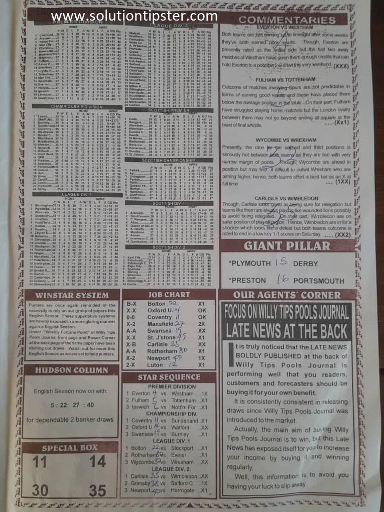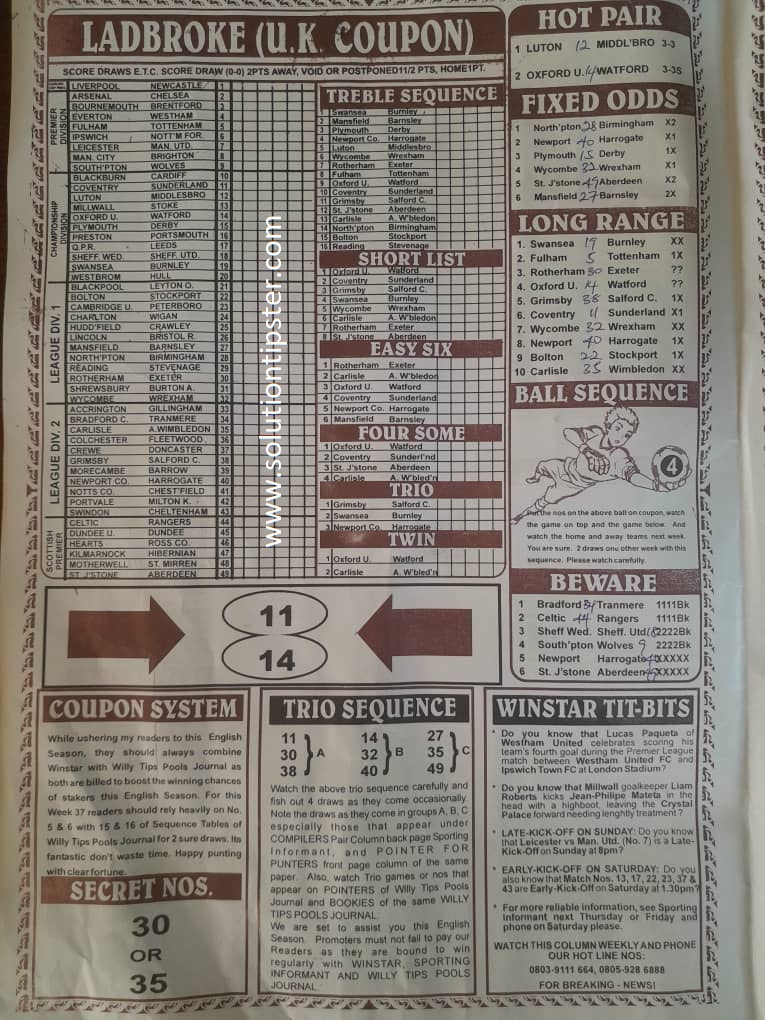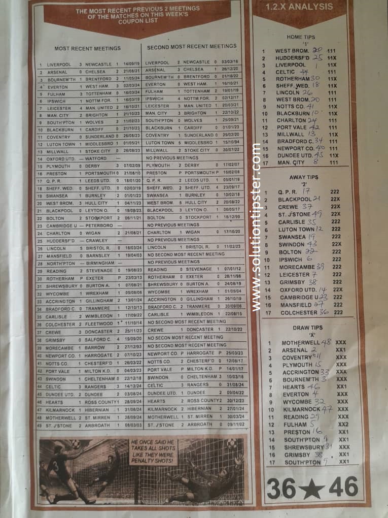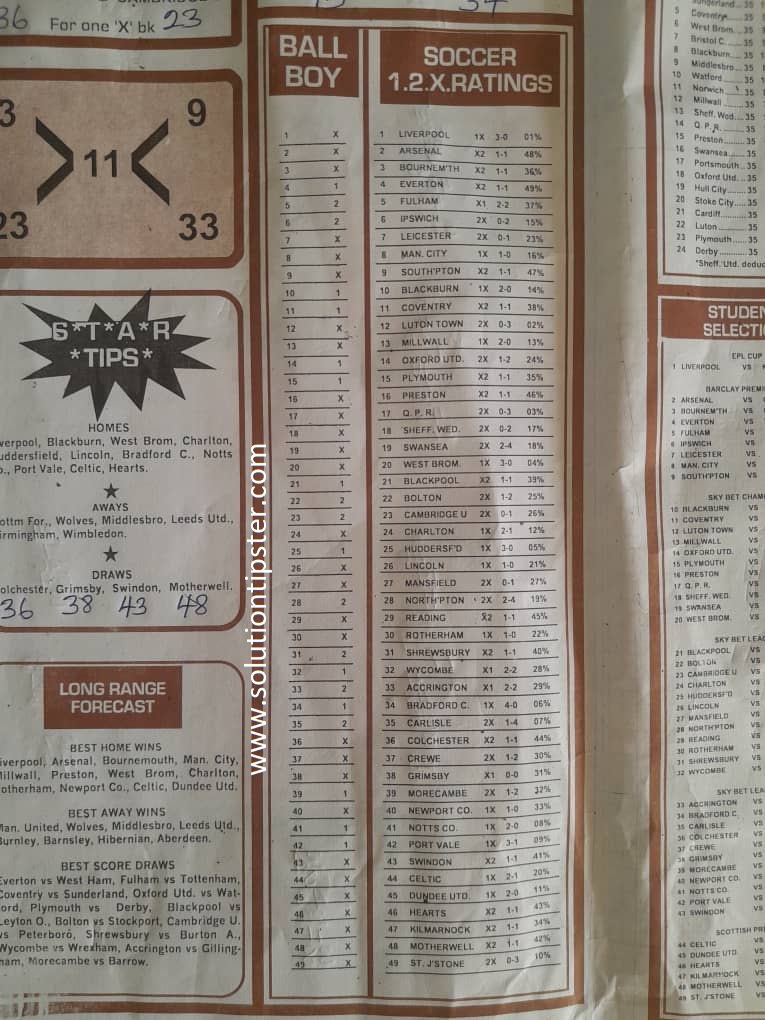 Here, we furnish you with weekly and current Pool Fixture Papers, Pools RSK papers and other forecasting papers for your forecast and winning pleasure. Click on the images to view them more clearly.