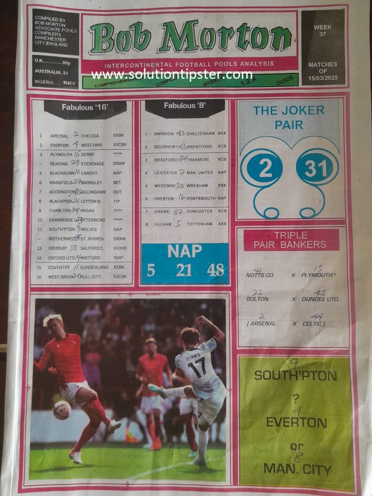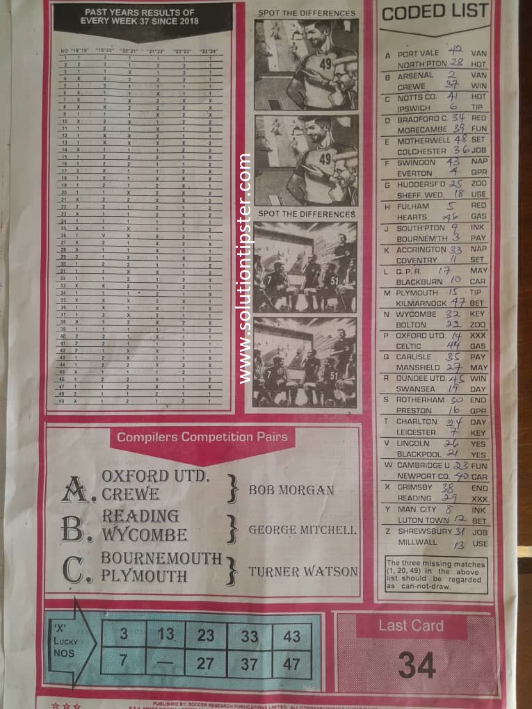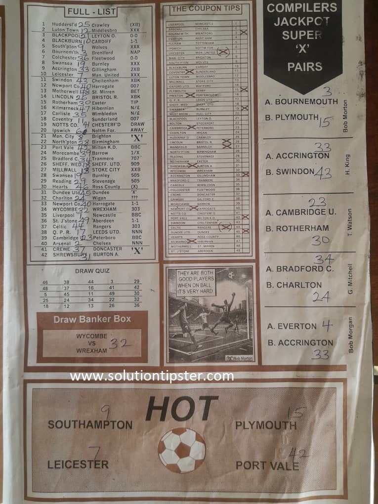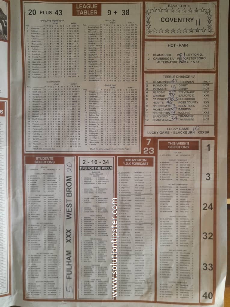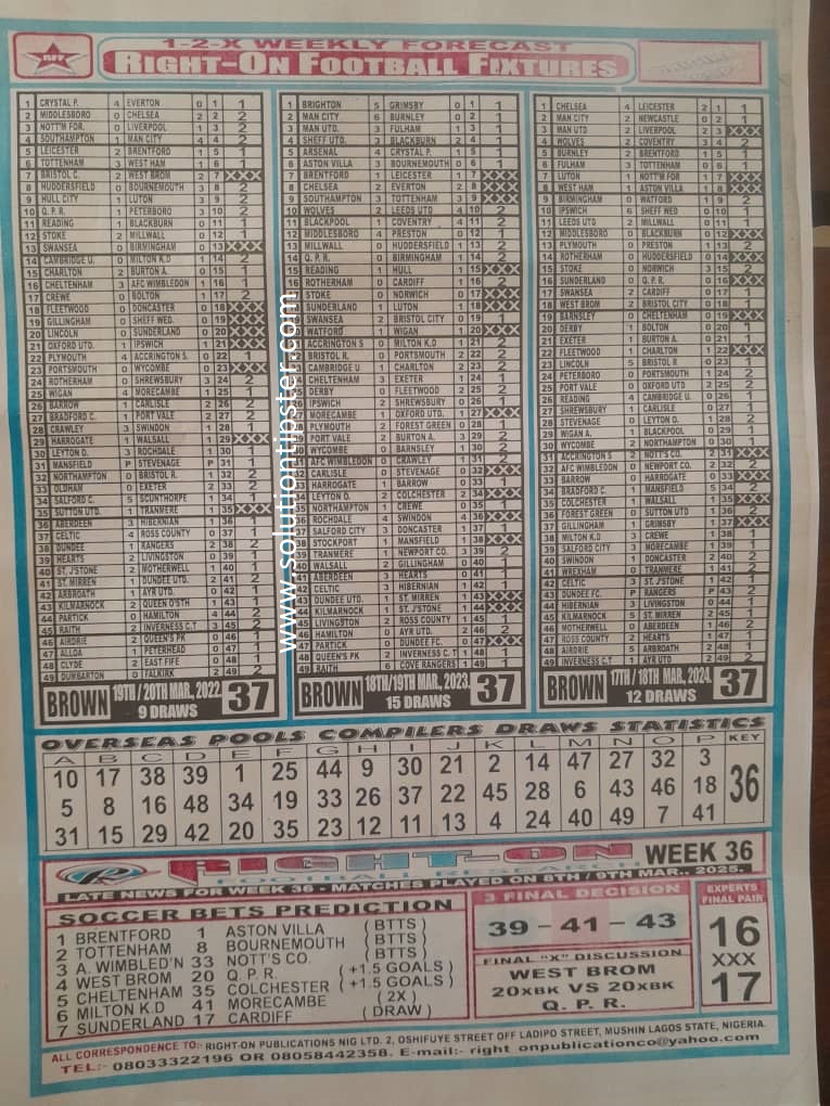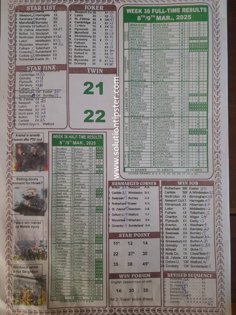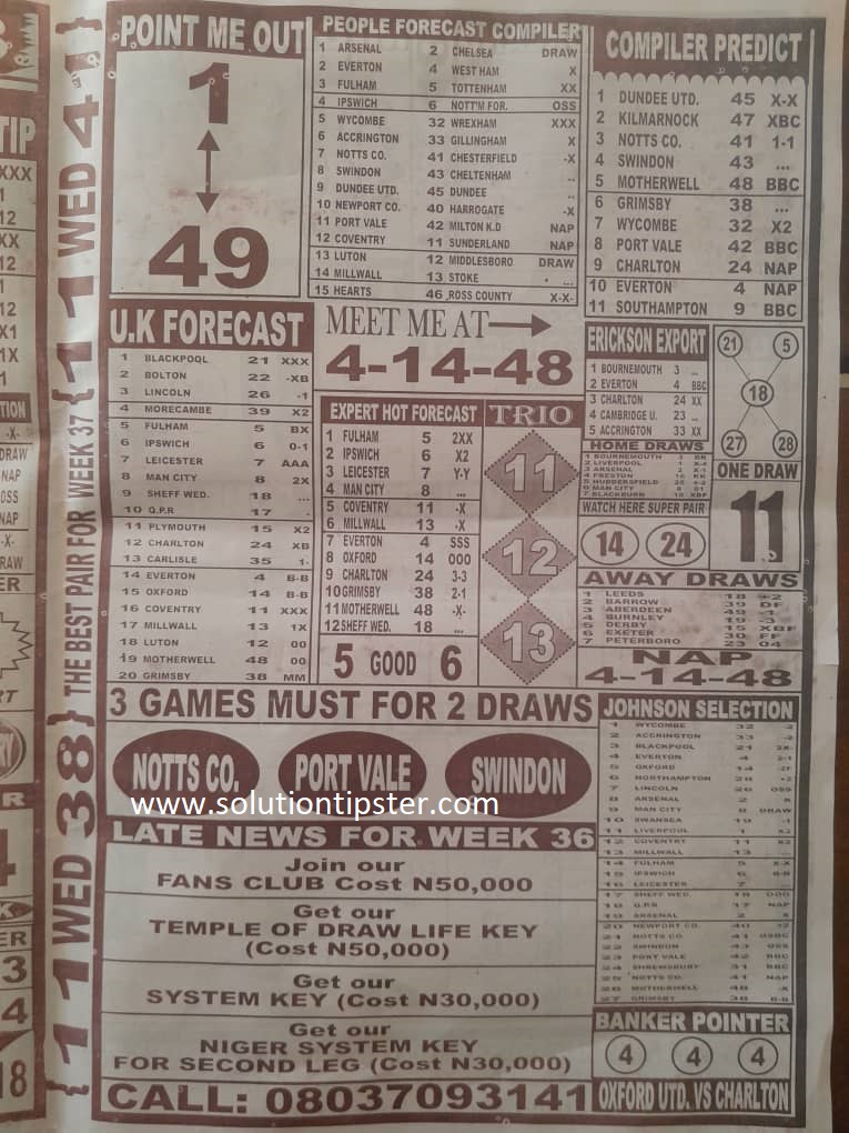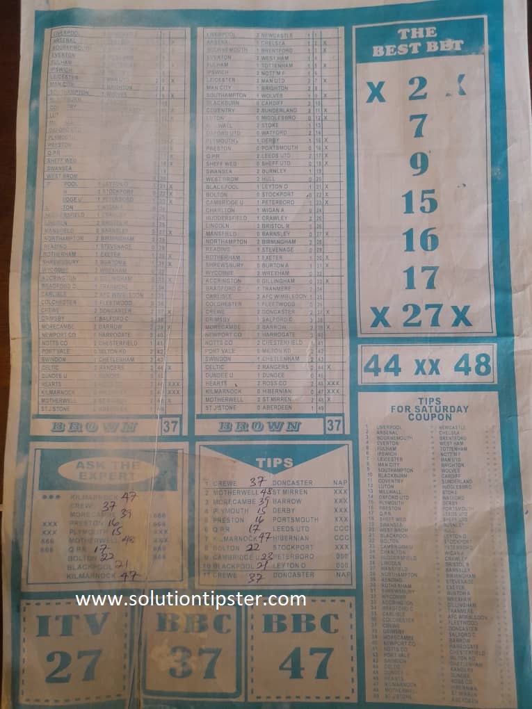 Here, we furnish you with weekly and current Pool Fixture Papers, Pools RSK papers and other forecasting papers for your forecast and winning pleasure. Click on the images to view them more clearly.
