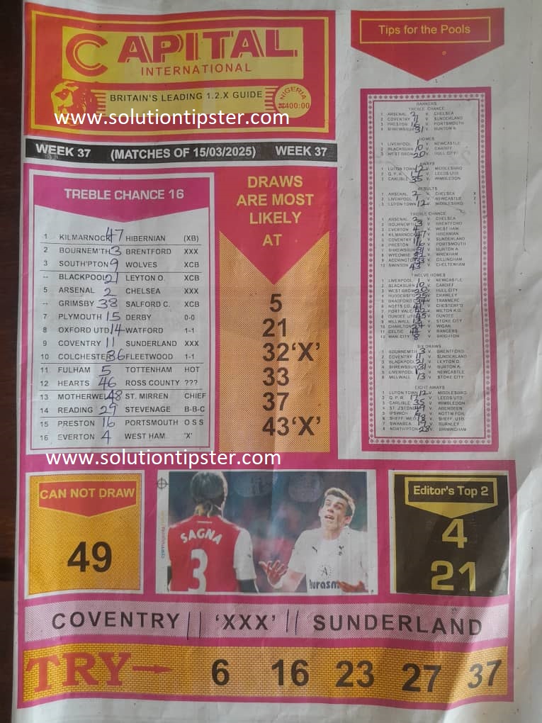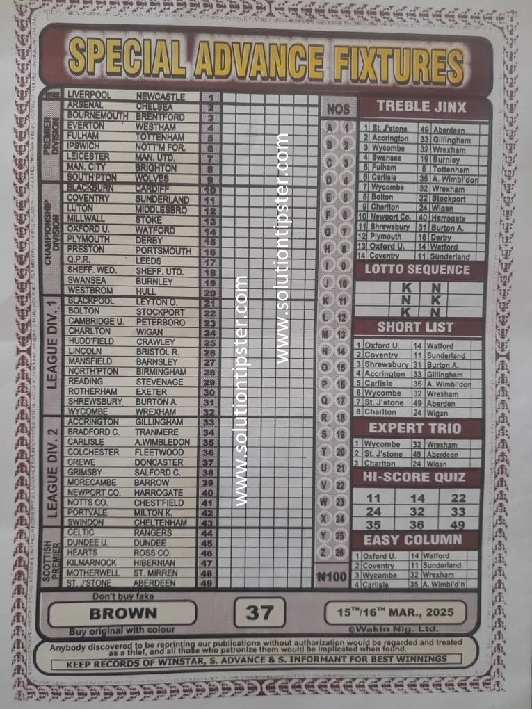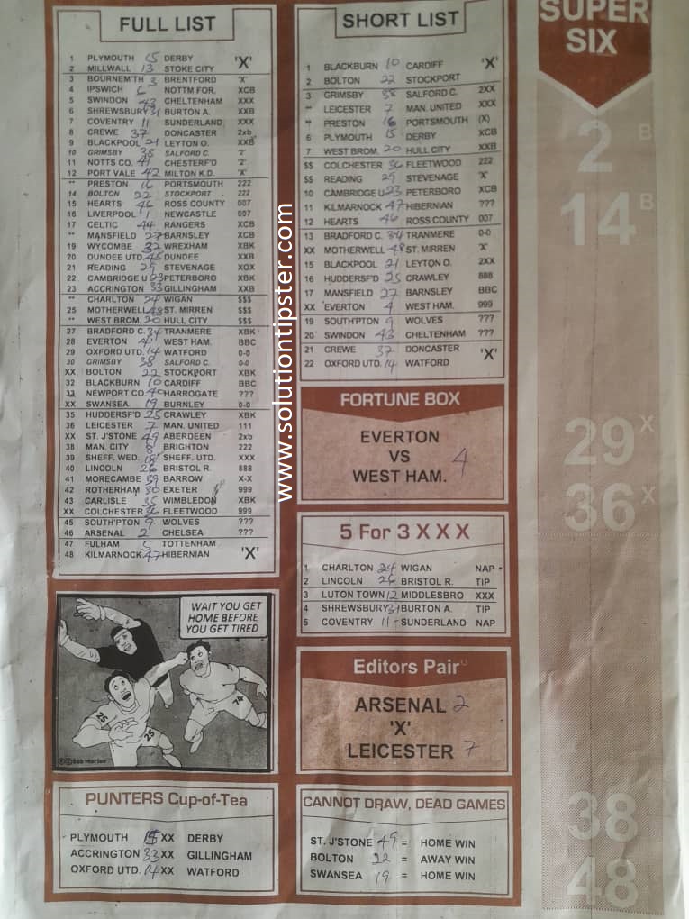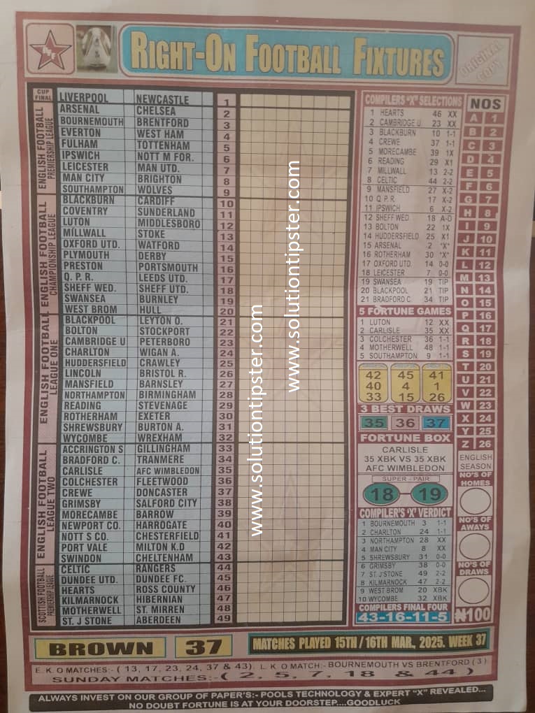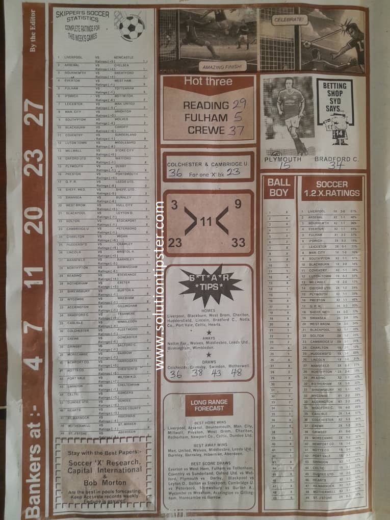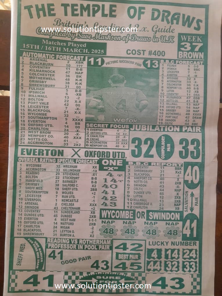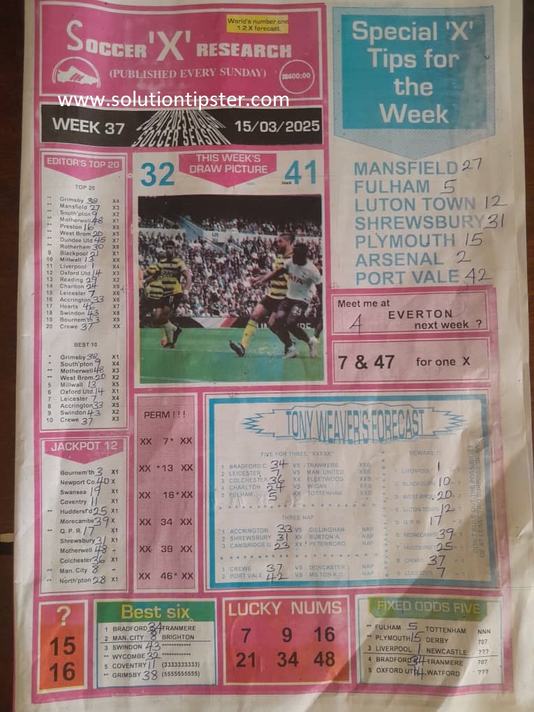Here, we furnish you with weekly and current Pool Fixture Papers, Pools RSK papers and other forecasting papers for your forecast and winning pleasure. Click on the images to view them more clearly.