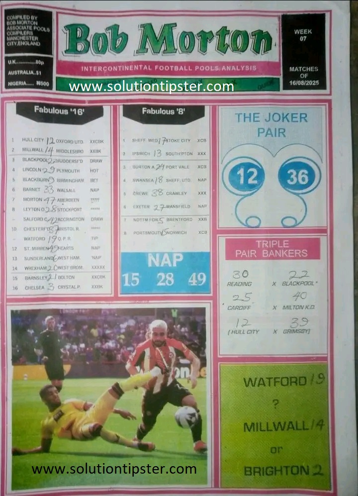 For Pools Live Results, Advance fixtures, Weekly Pools Tips and more, check – Poolsupdate.com
