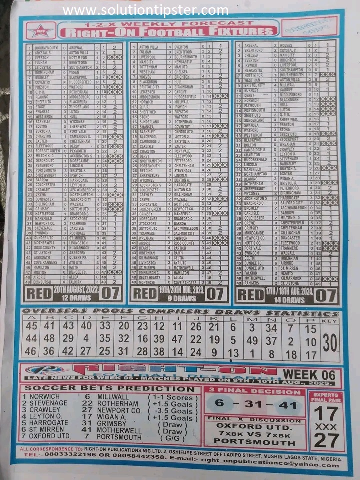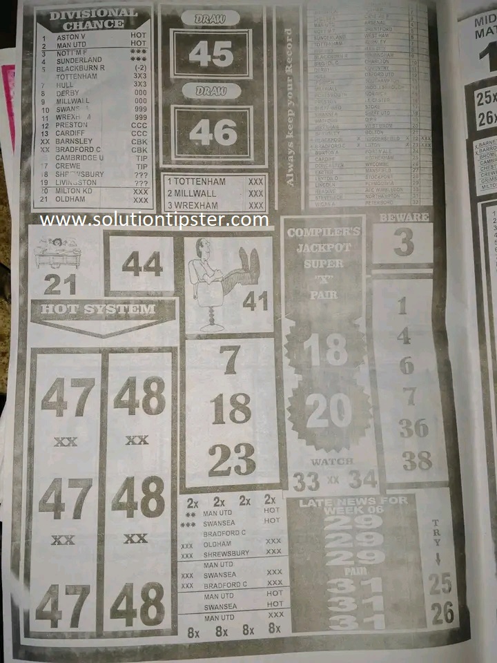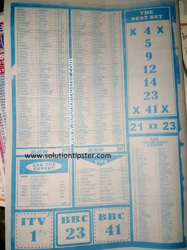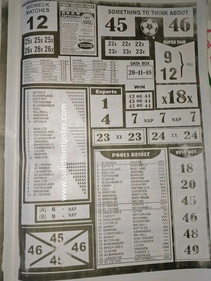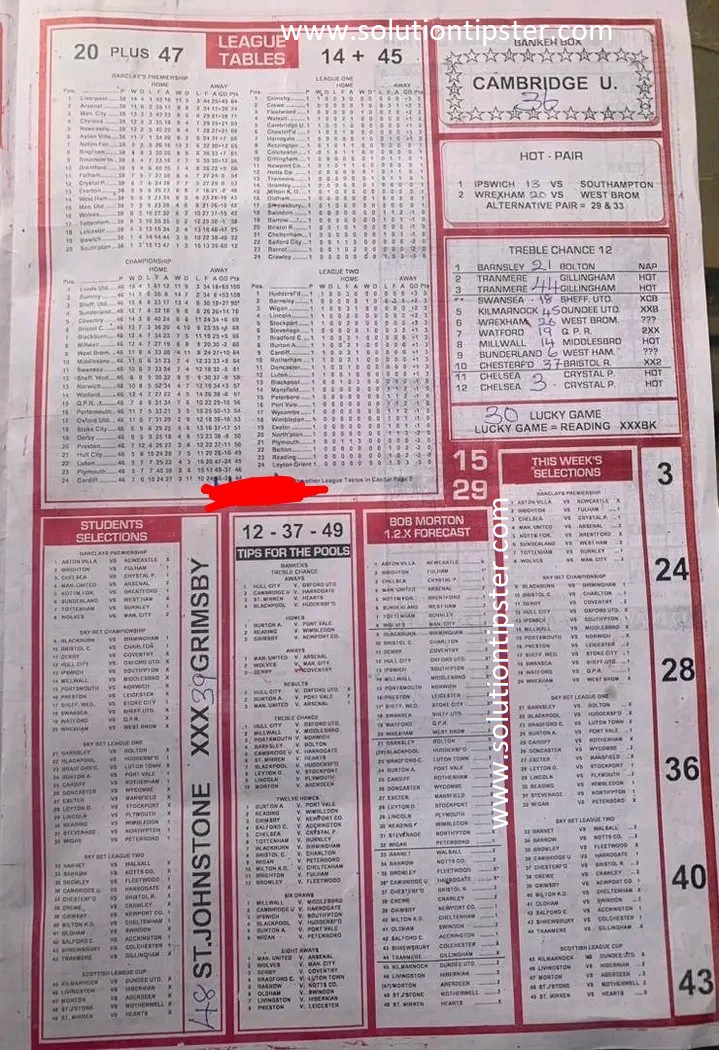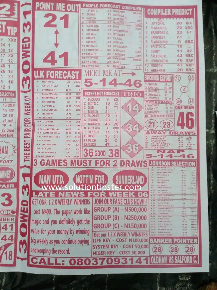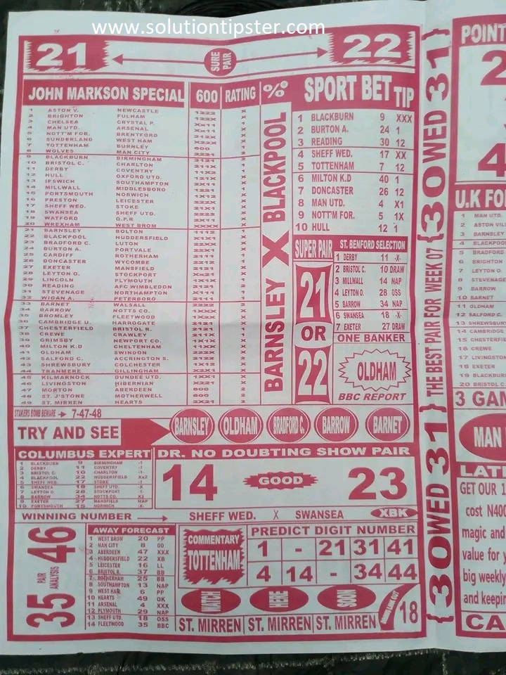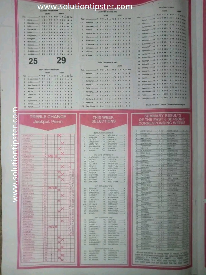 Here, we furnish you with weekly and current Pool Fixture Papers, Pools RSK papers and other forecasting papers for your forecast and winning pleasure. Click on the images to view them more clearly.
