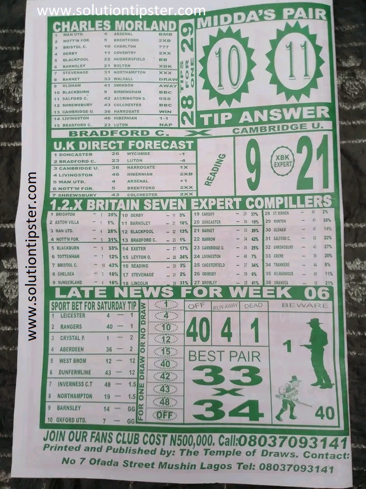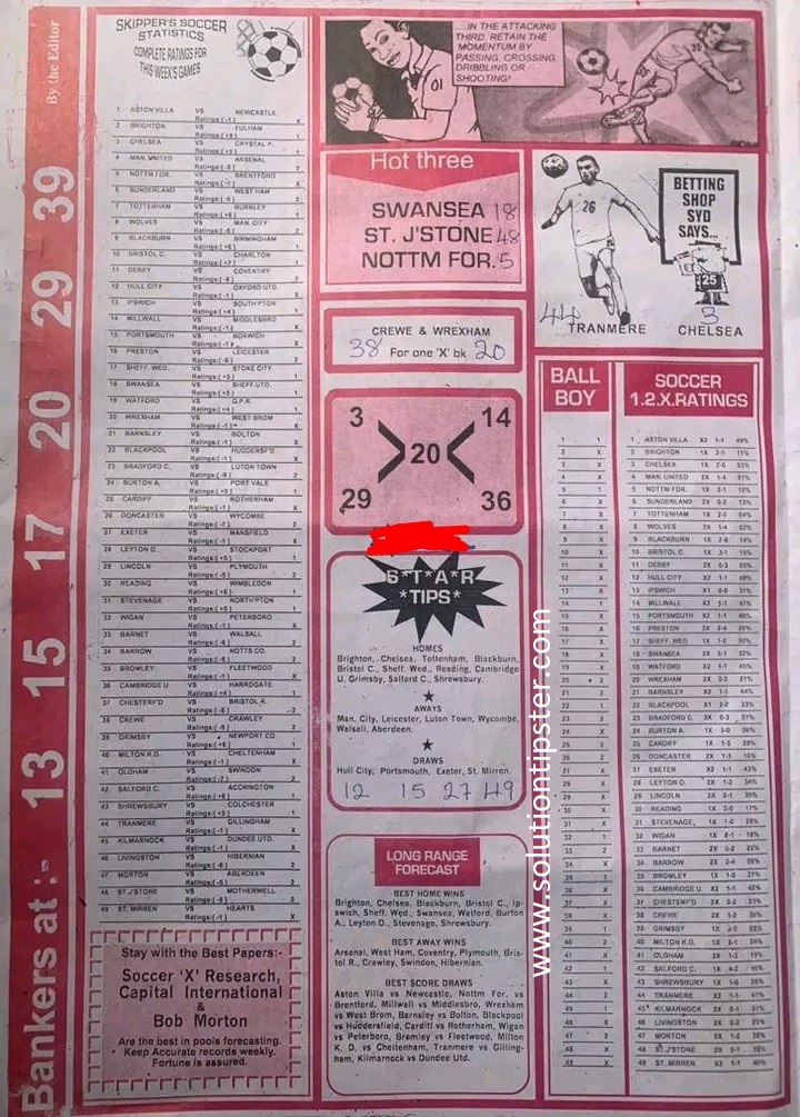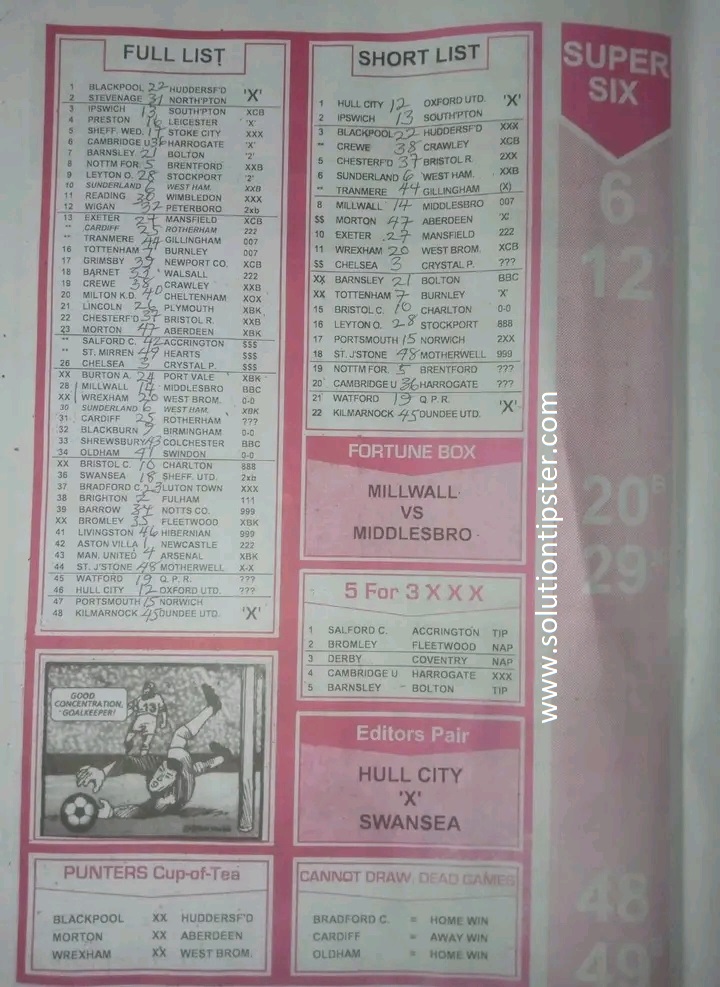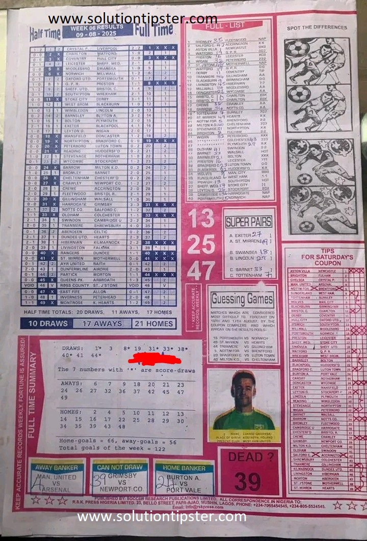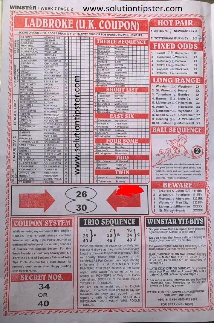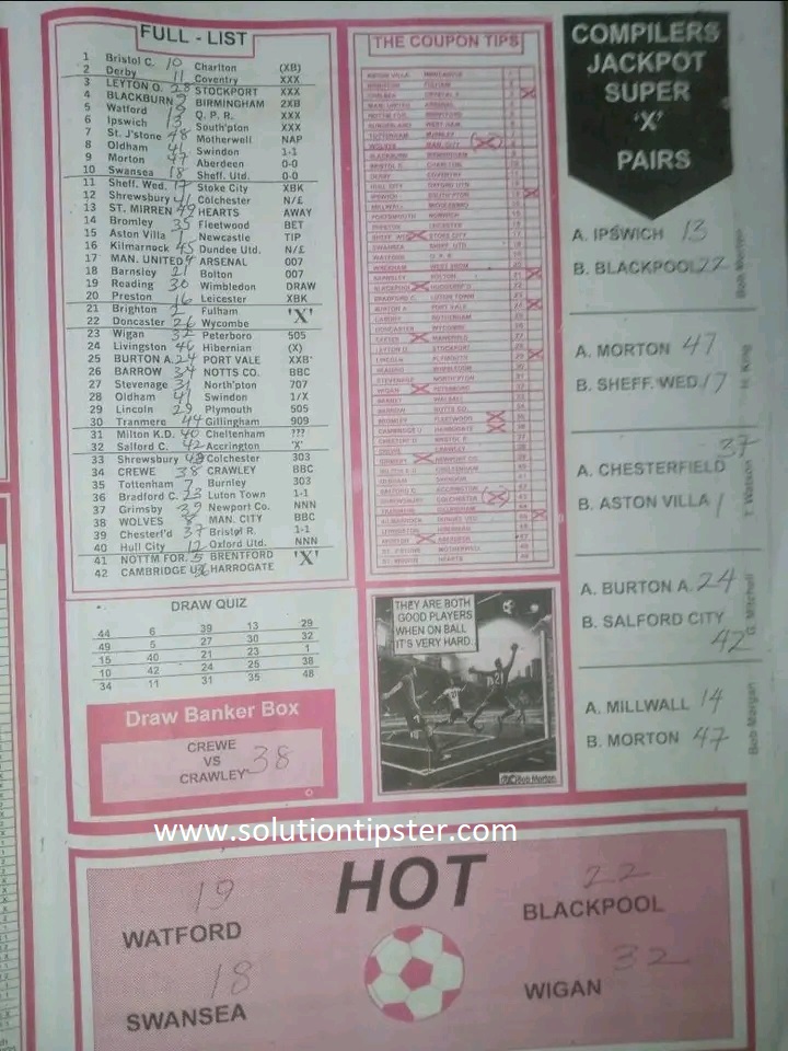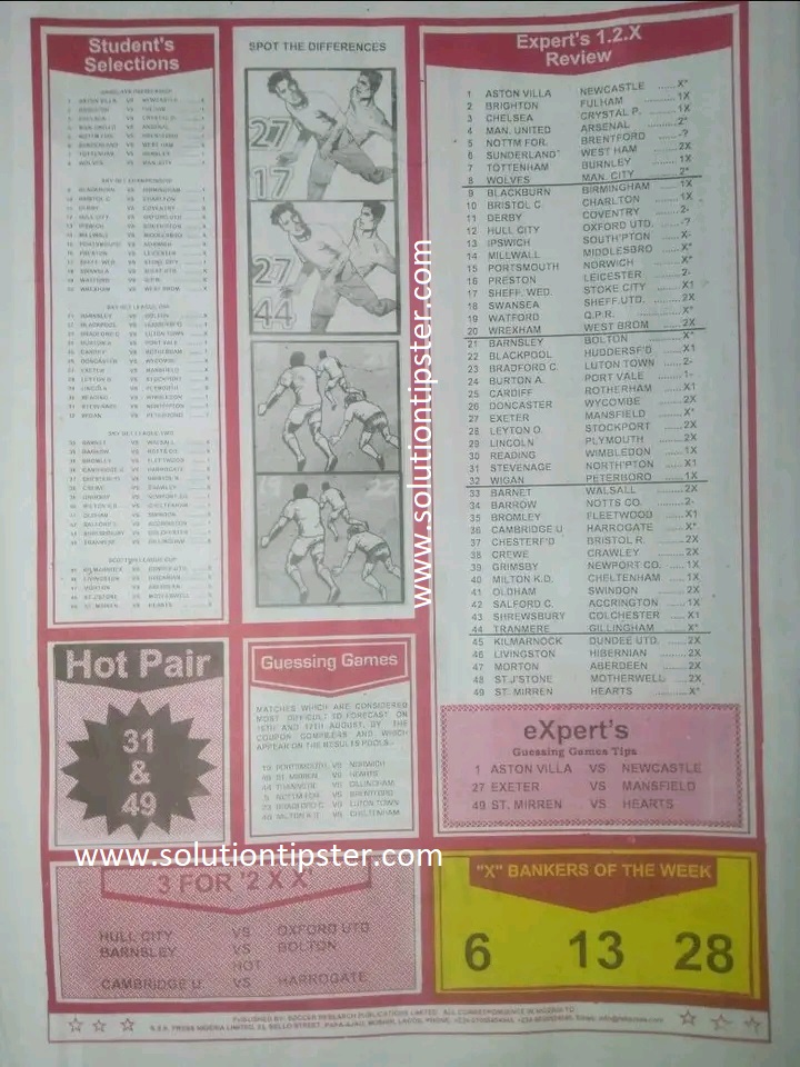 Here, we furnish you with weekly and current Pool Fixture Papers, Pools RSK papers and other forecasting papers for your forecast and winning pleasure. Click on the images to view them more clearly.