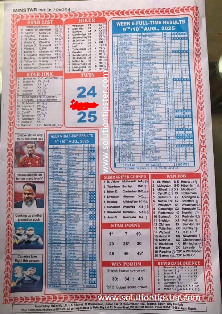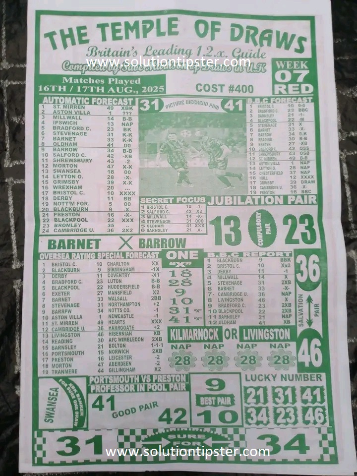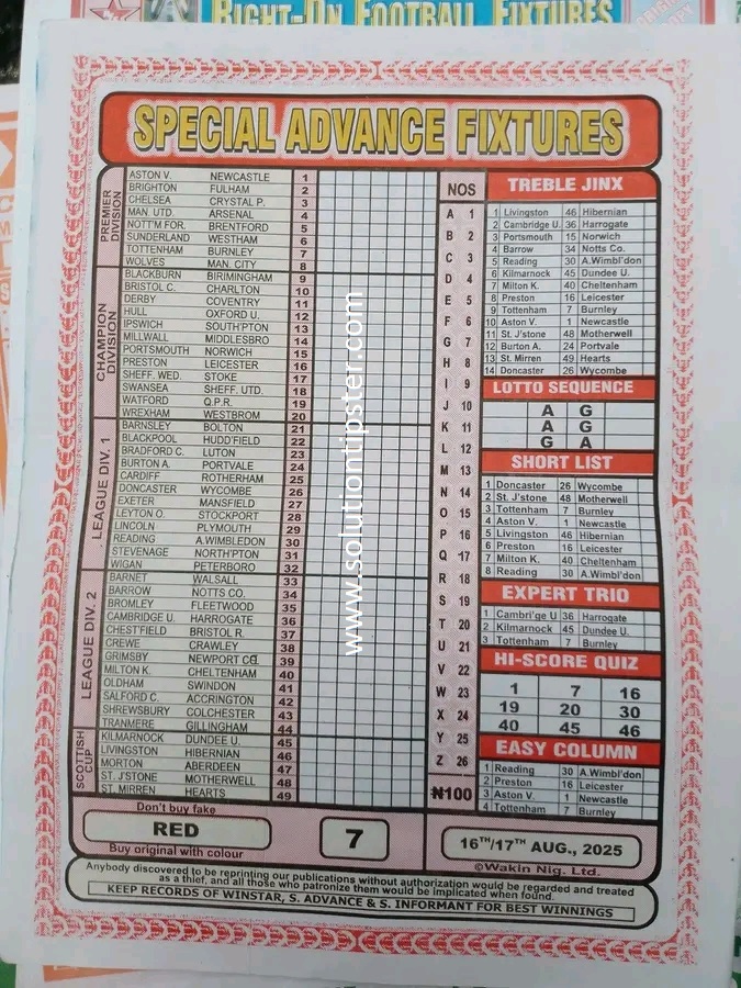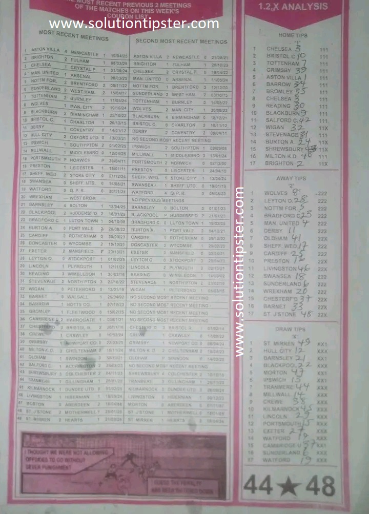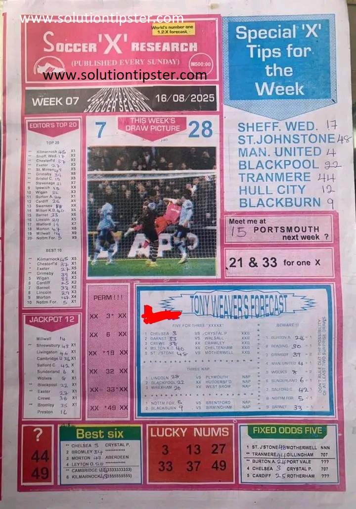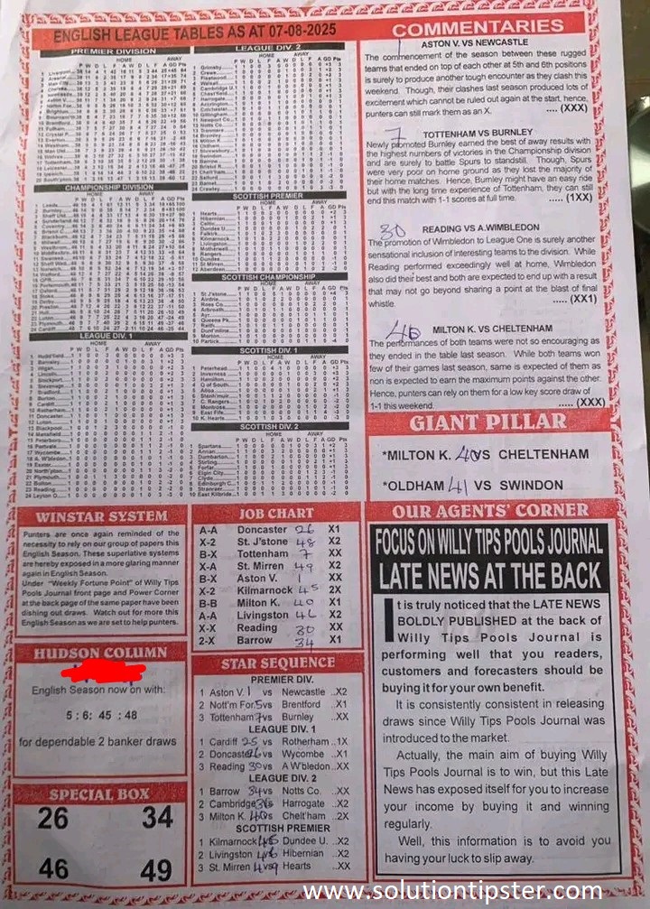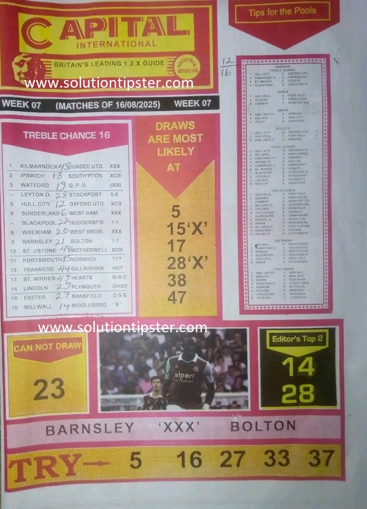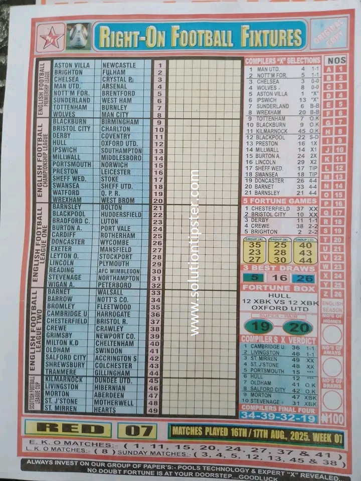 Here, we furnish you with weekly and current Pool Fixture Papers, Pools RSK papers and other forecasting papers for your forecast and winning pleasure. Click on the images to view them more clearly.