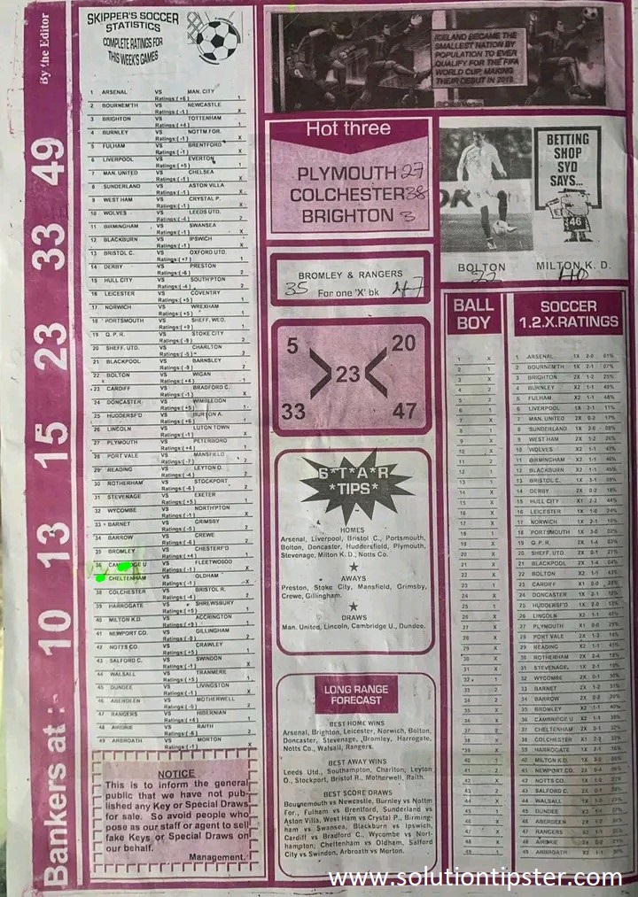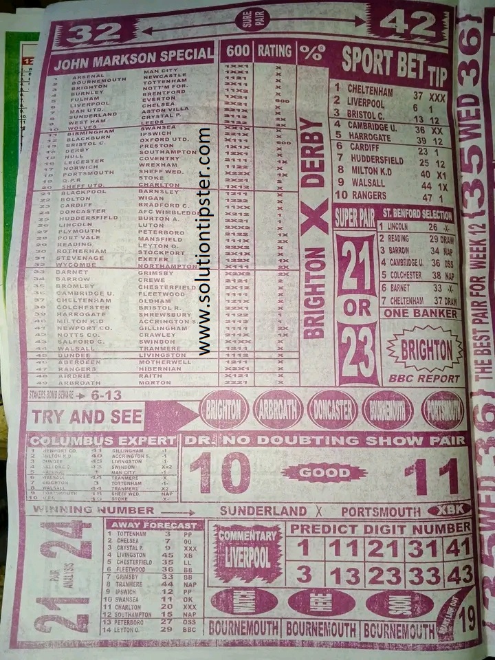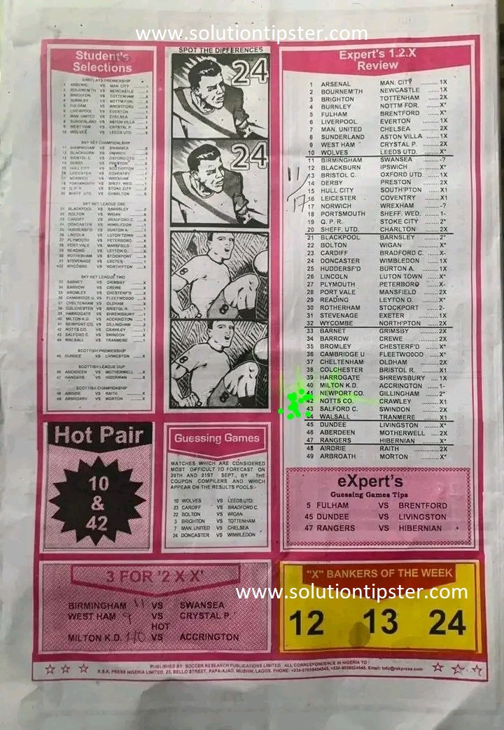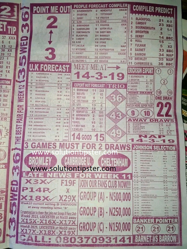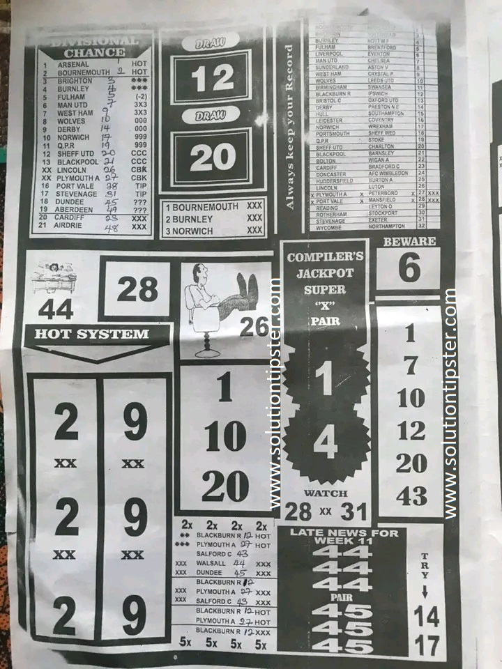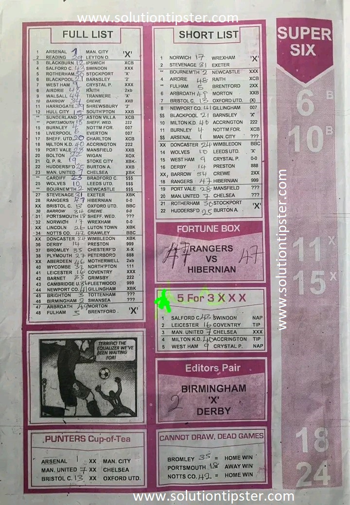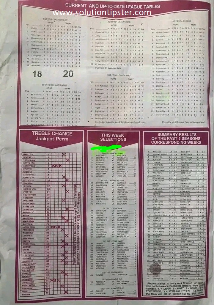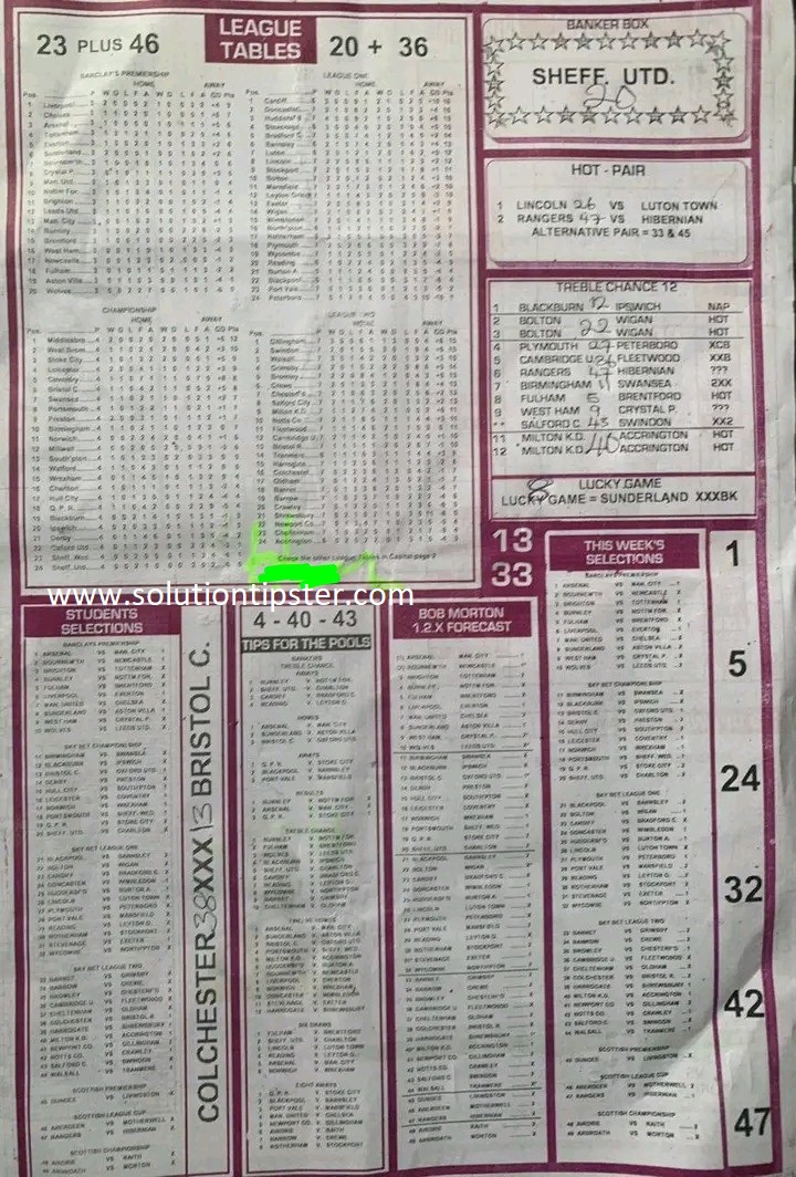 Here, we furnish you with weekly and current Pool Fixture Papers, Pools RSK papers and other forecasting papers for your forecast and winning pleasure. Click on the images to view them more clearly.
