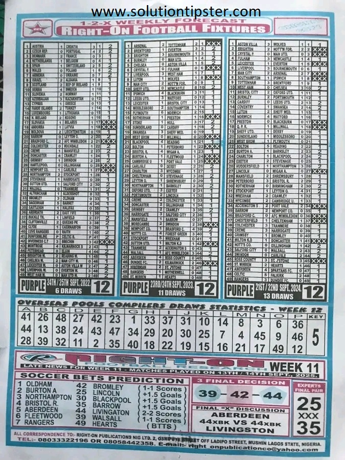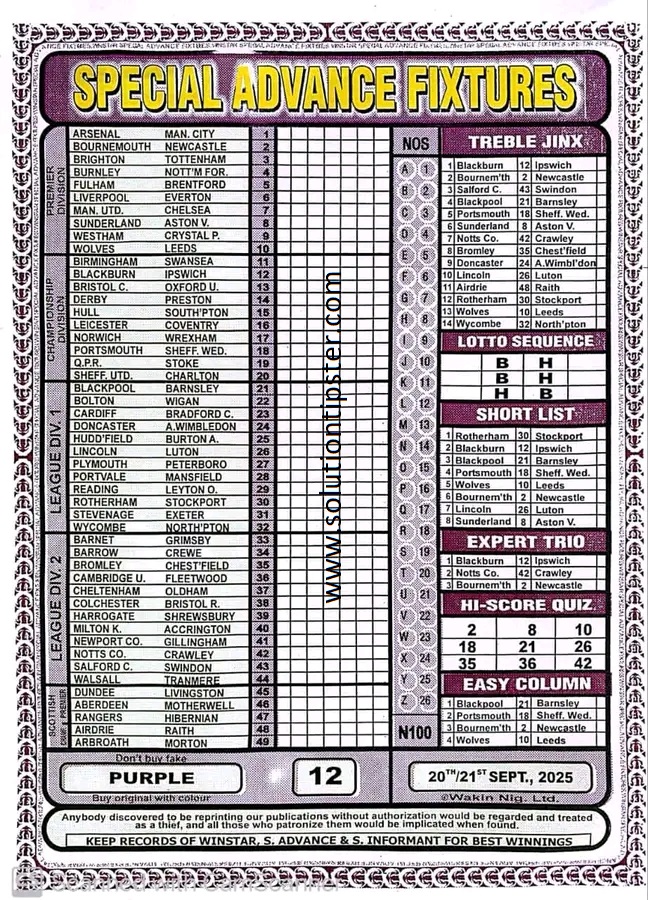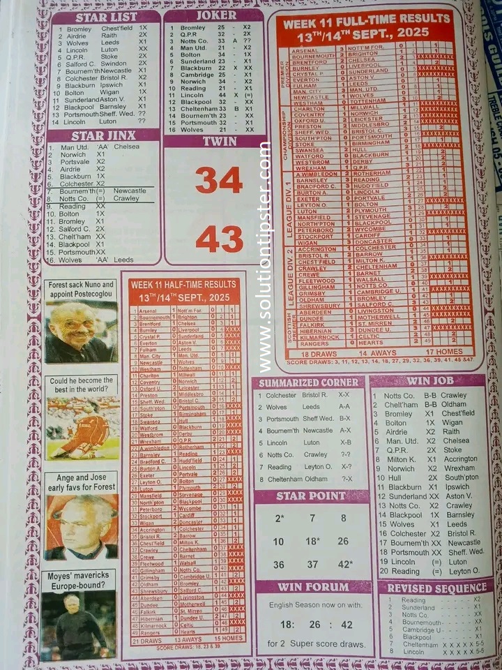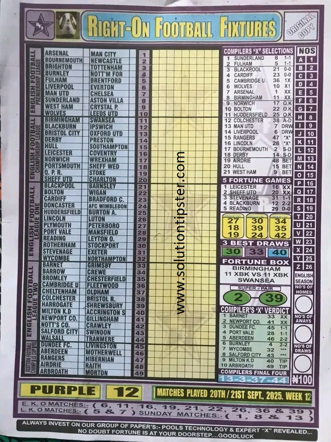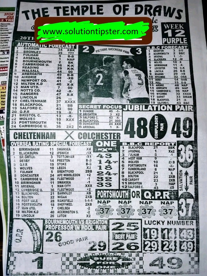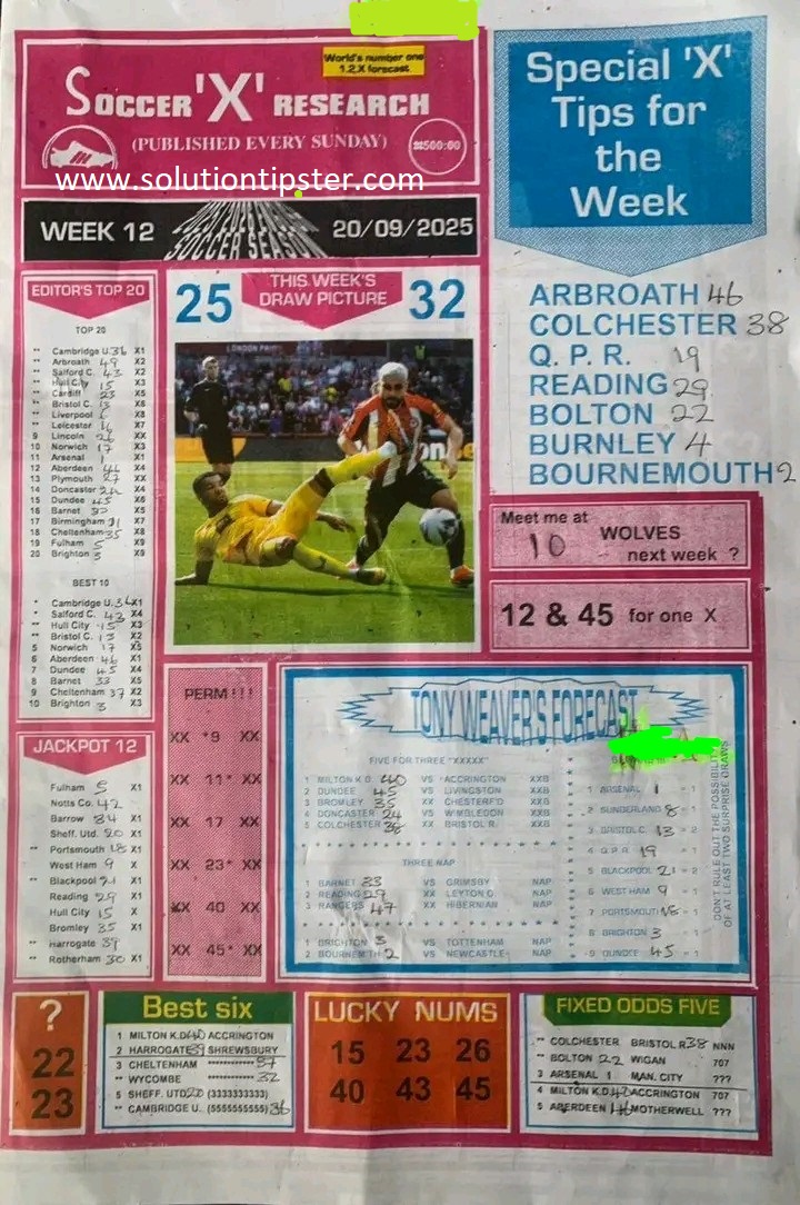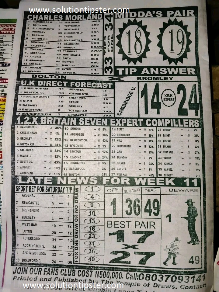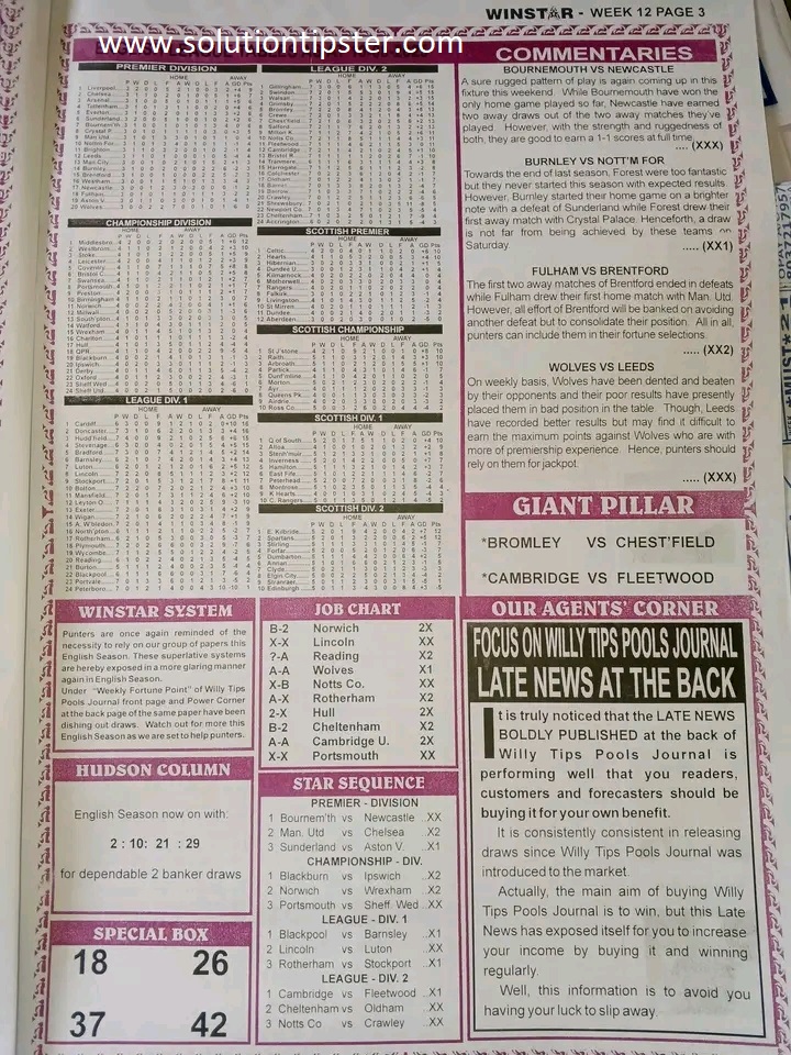 Here, we furnish you with weekly and current Pool Fixture Papers, Pools RSK papers and other forecasting papers for your forecast and winning pleasure. Click on the images to view them more clearly.