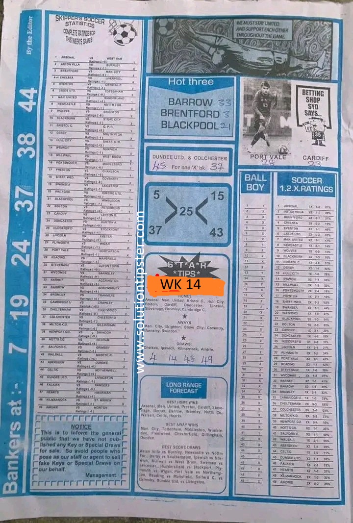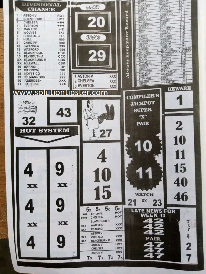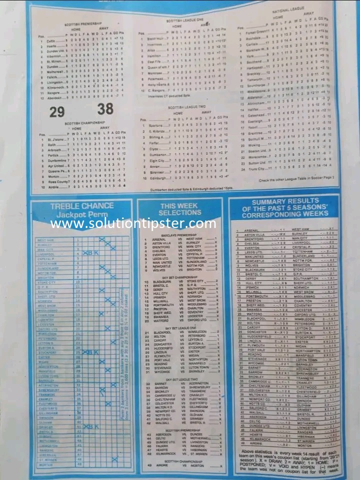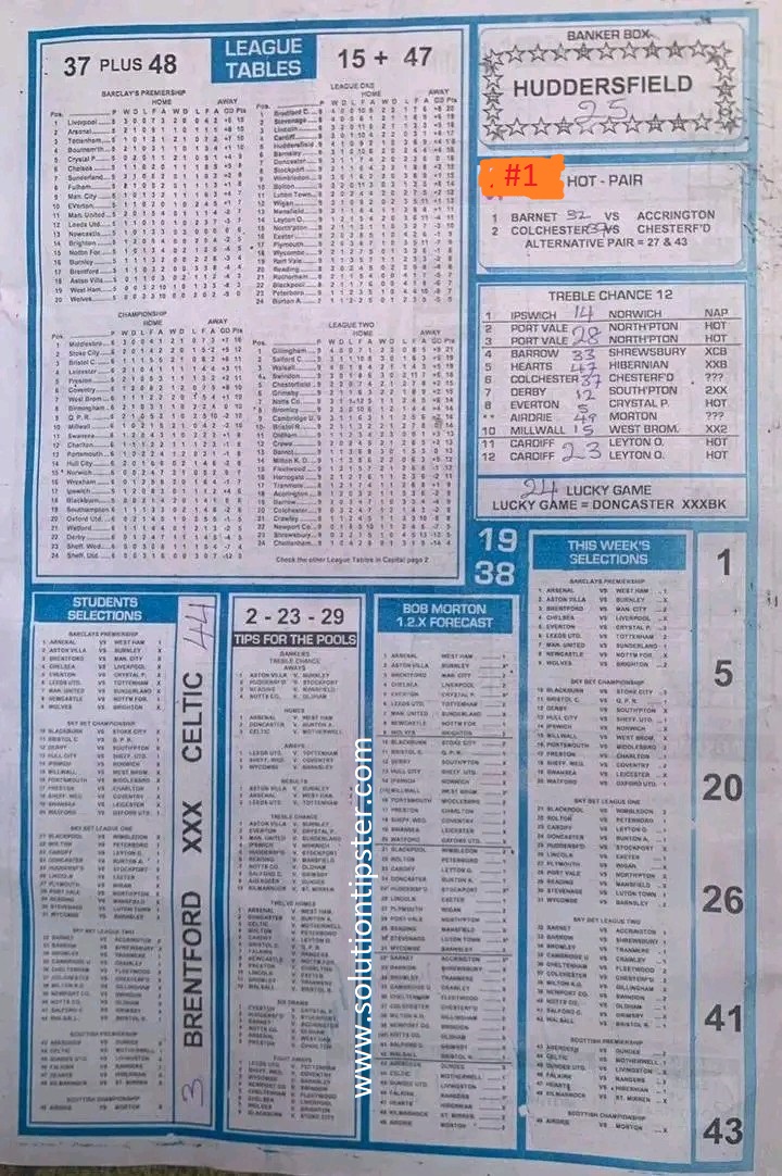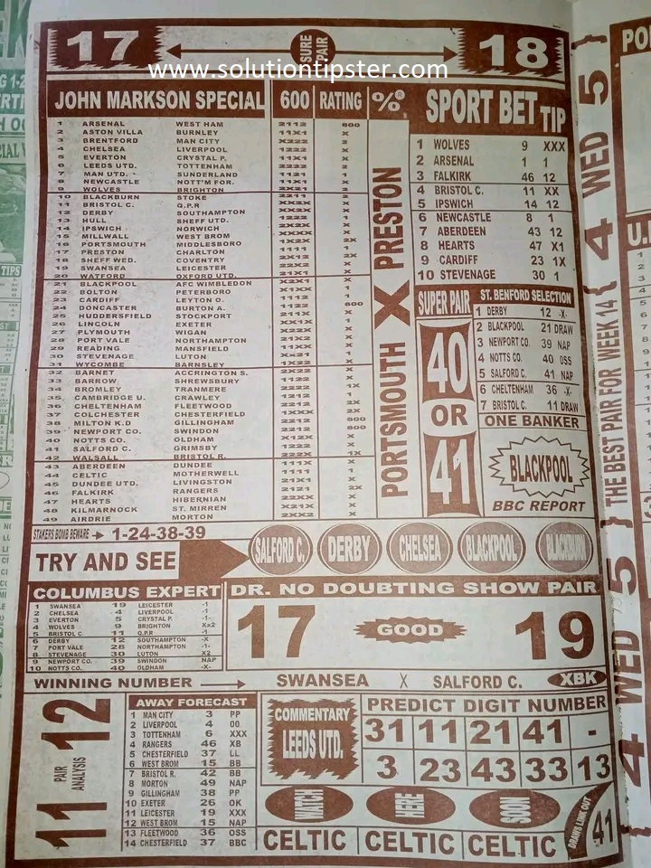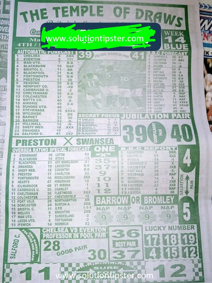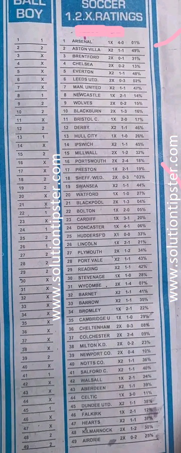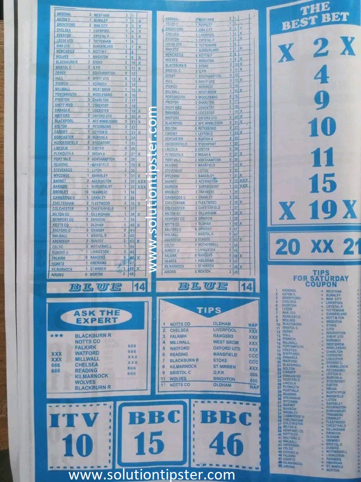 Here, we furnish you with weekly and current Pool Fixture Papers, Pools RSK papers and other forecasting papers for your forecast and winning pleasure. Click on the images to view them more clearly.