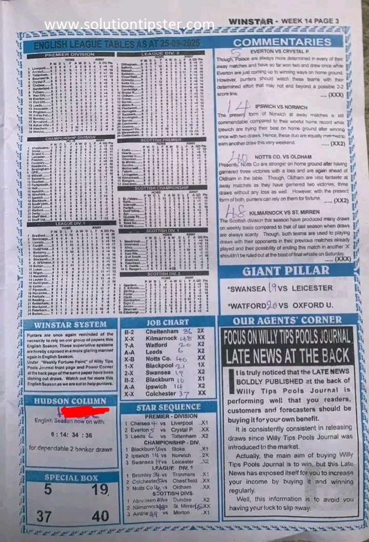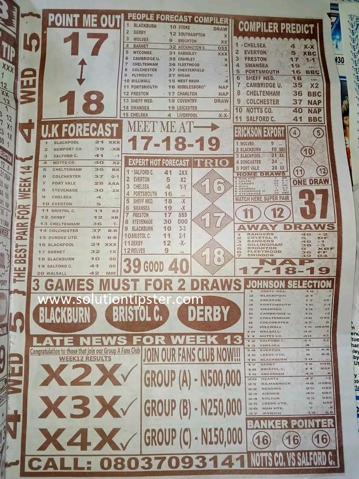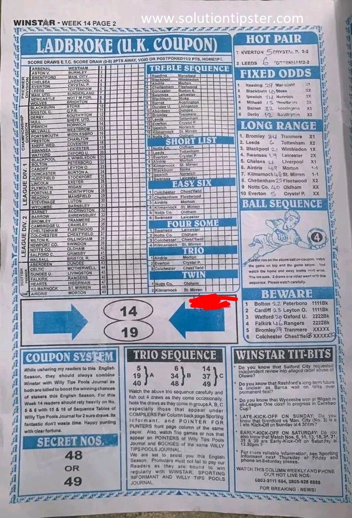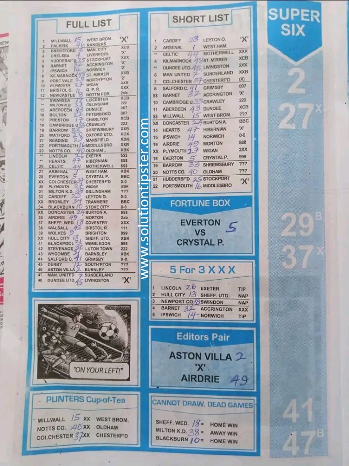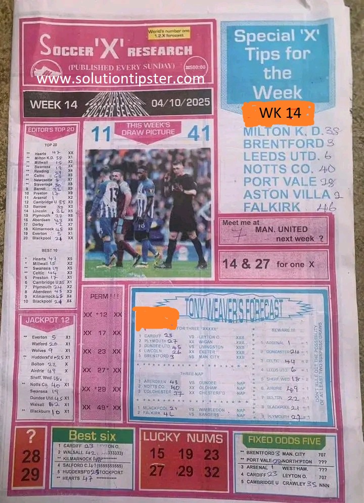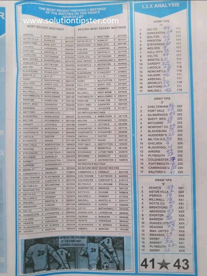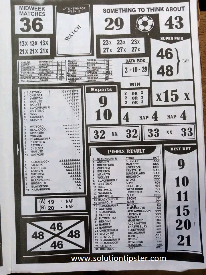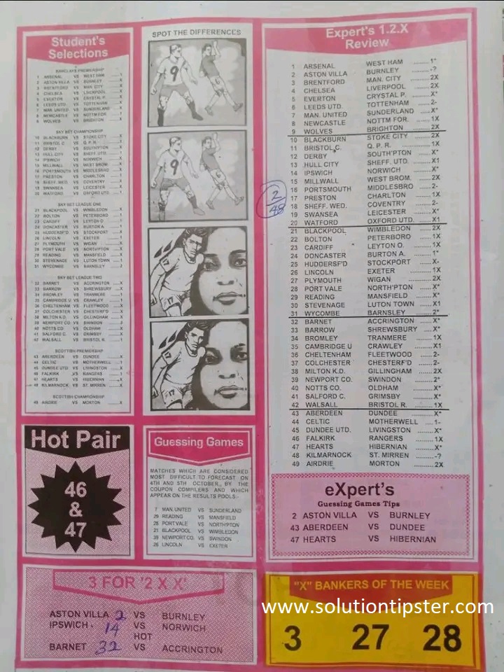 Here, we furnish you with weekly and current Pool Fixture Papers, Pools RSK papers and other forecasting papers for your forecast and winning pleasure. Click on the images to view them more clearly.