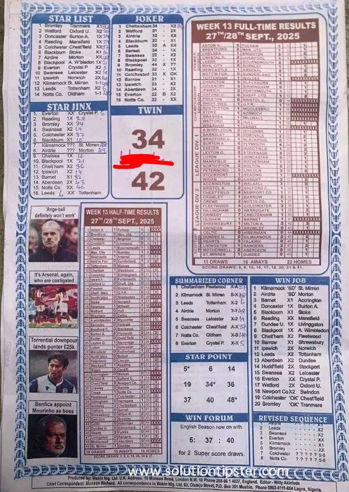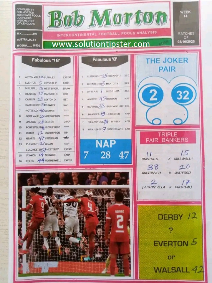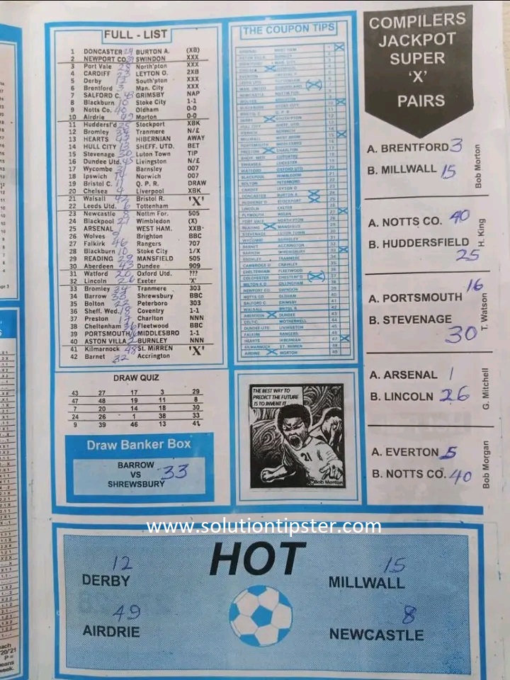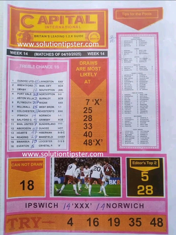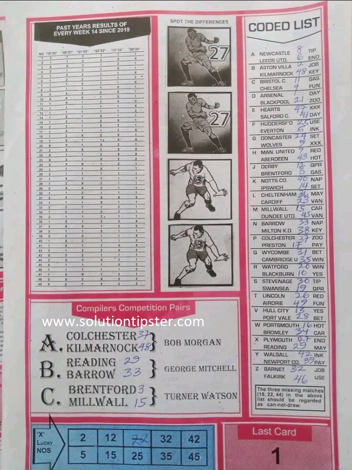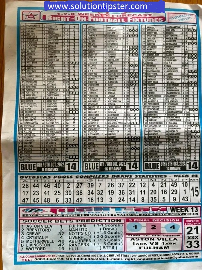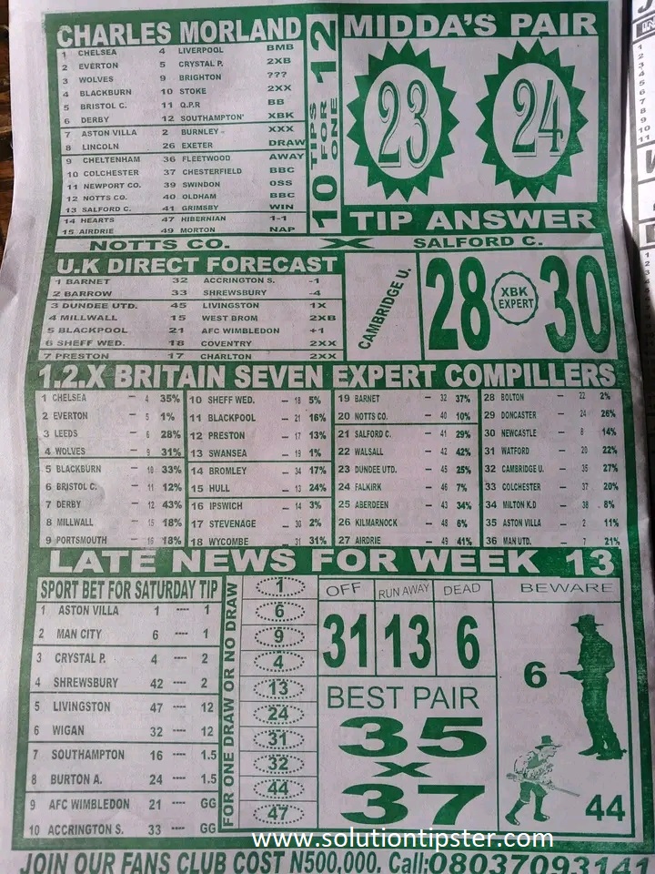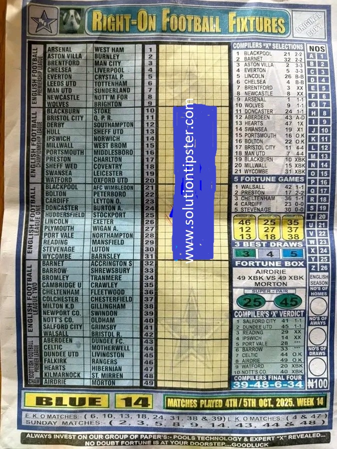 Here, we furnish you with weekly and current Pool Fixture Papers, Pools RSK papers and other forecasting papers for your forecast and winning pleasure. Click on the images to view them more clearly.