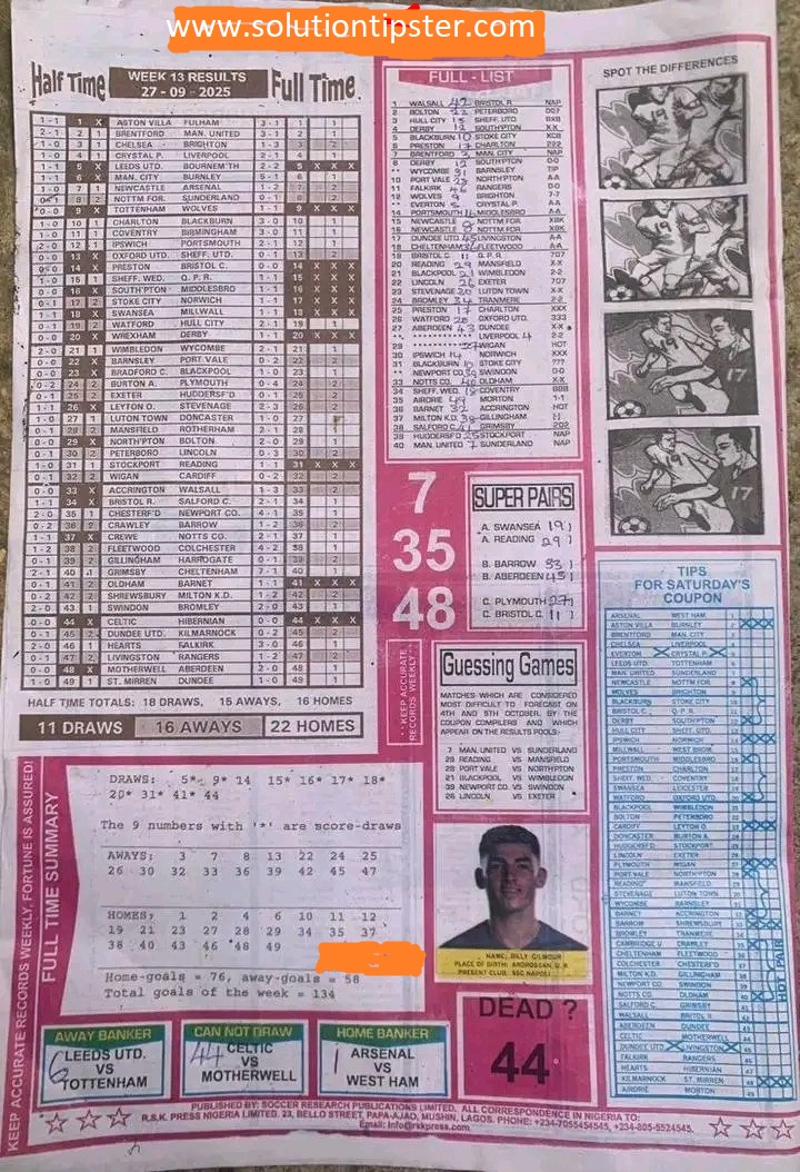 For Pools Live Results, Advance fixtures, Weekly Pools Tips and more, check – Poolsupdate.com