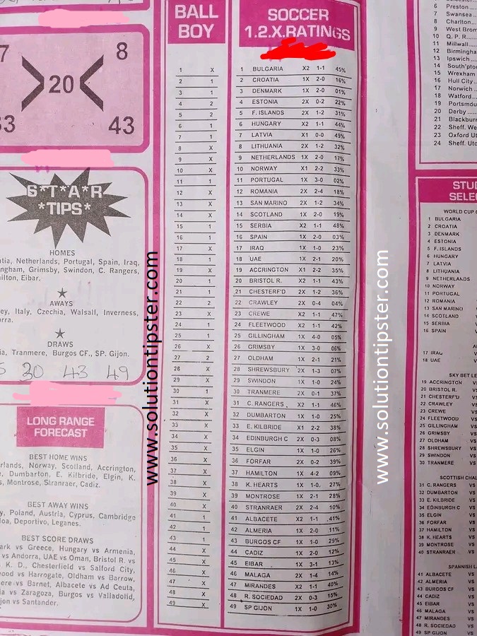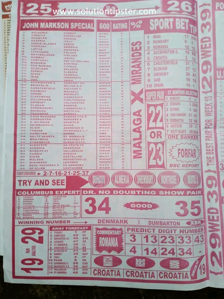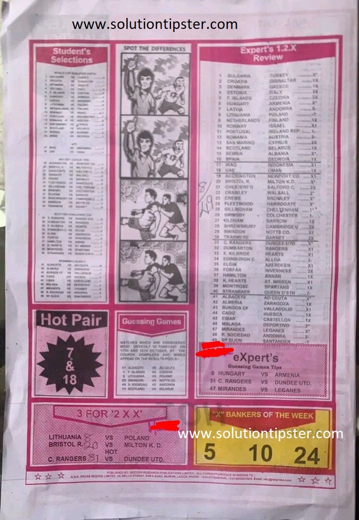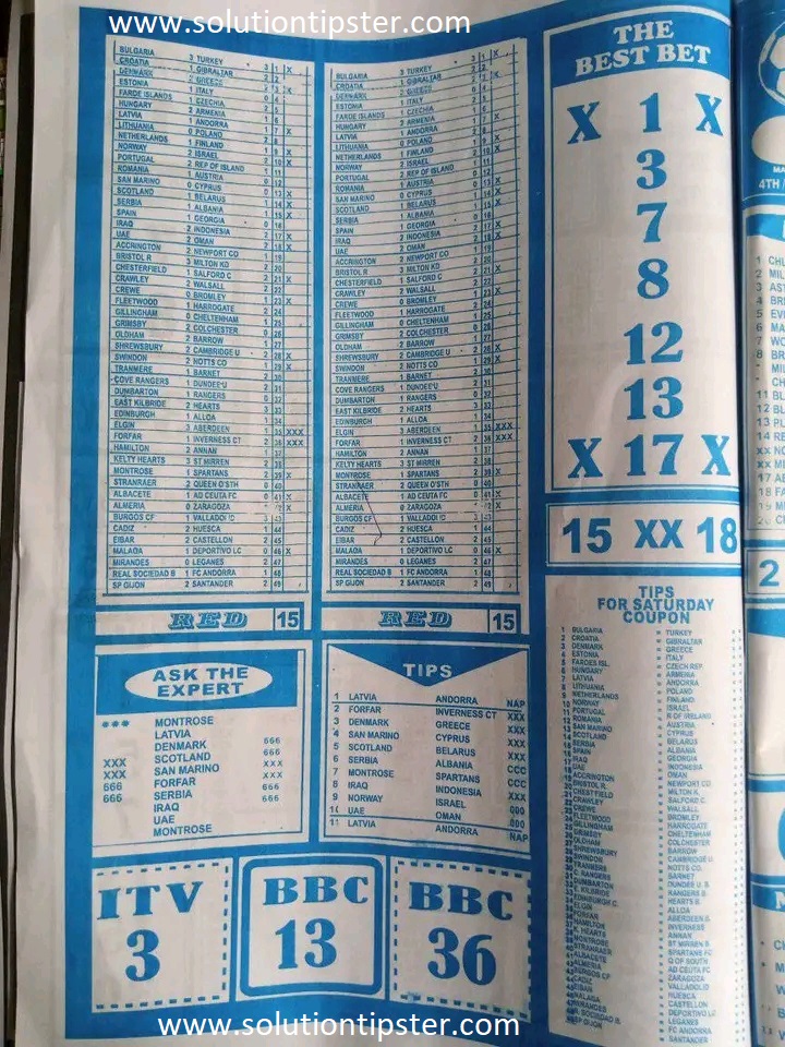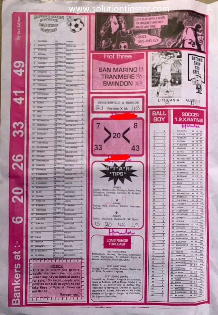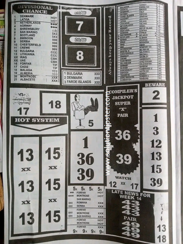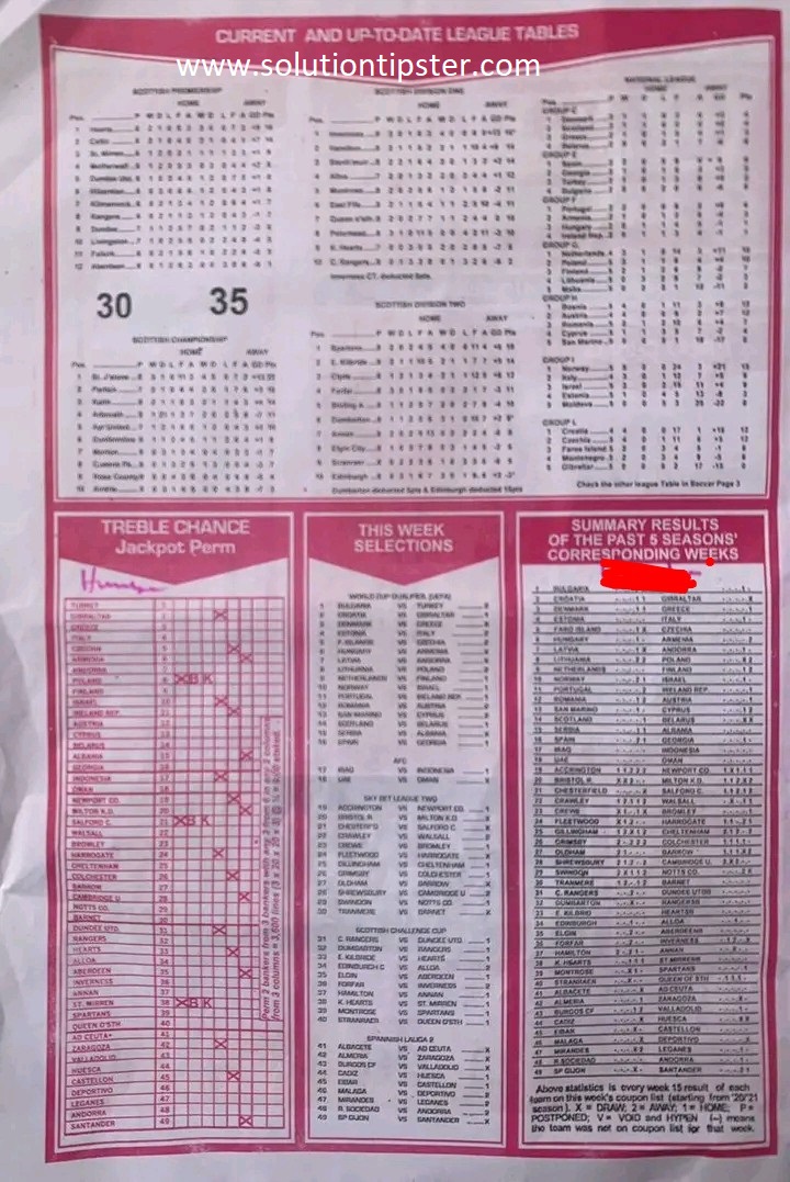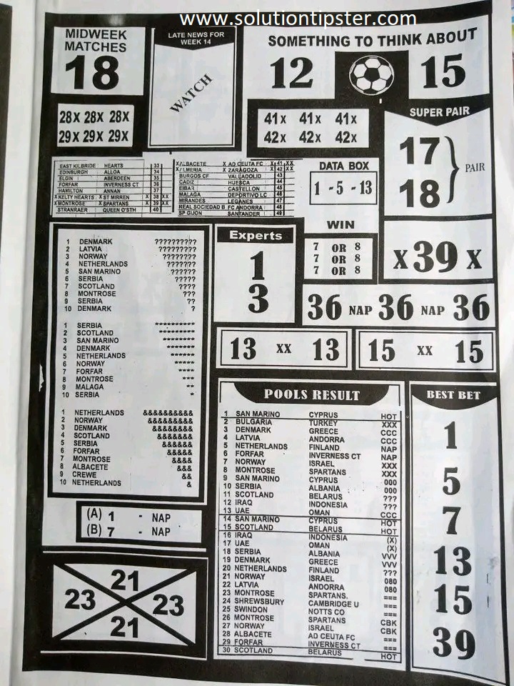 Here, we furnish you with weekly and current Pool Fixture Papers, Pools RSK papers and other forecasting papers for your forecast and winning pleasure. Click on the images to view them more clearly.