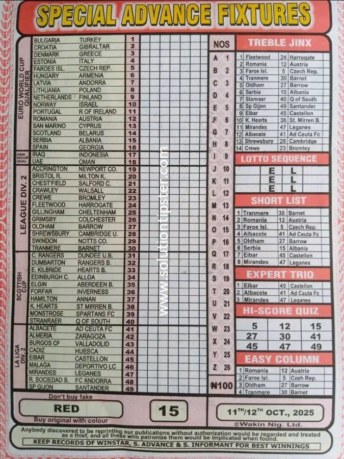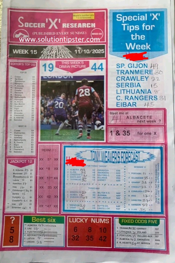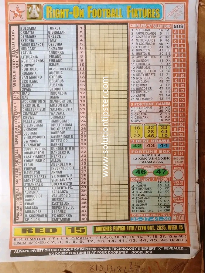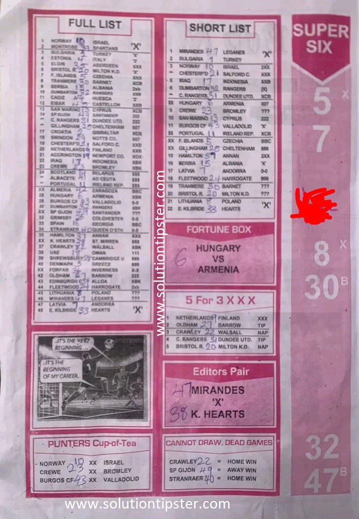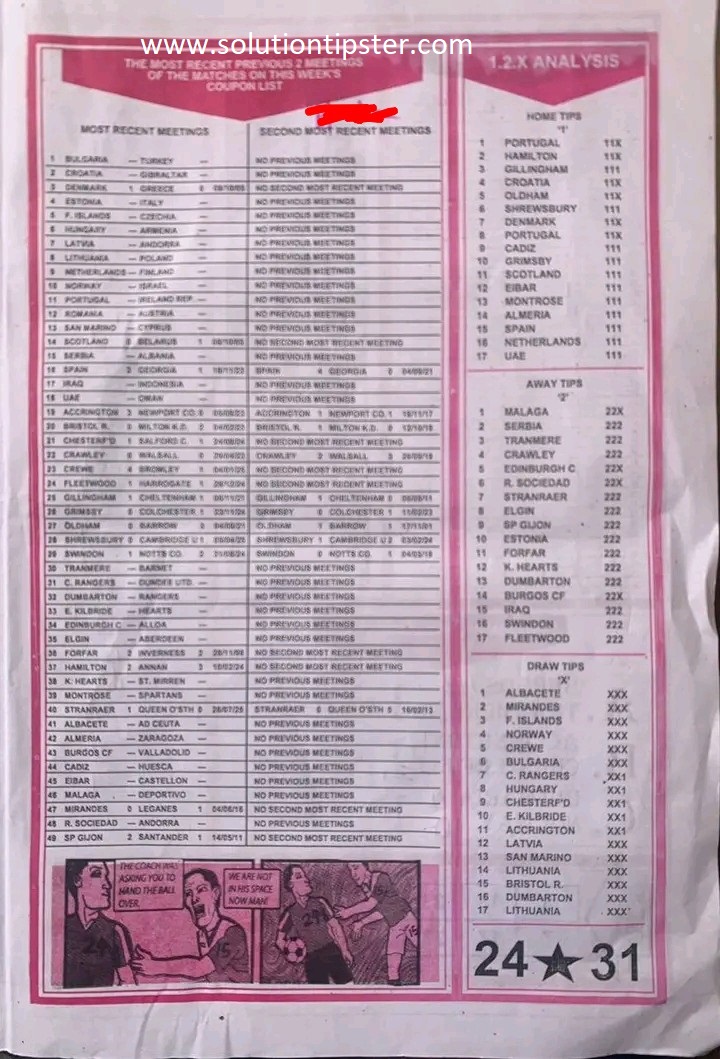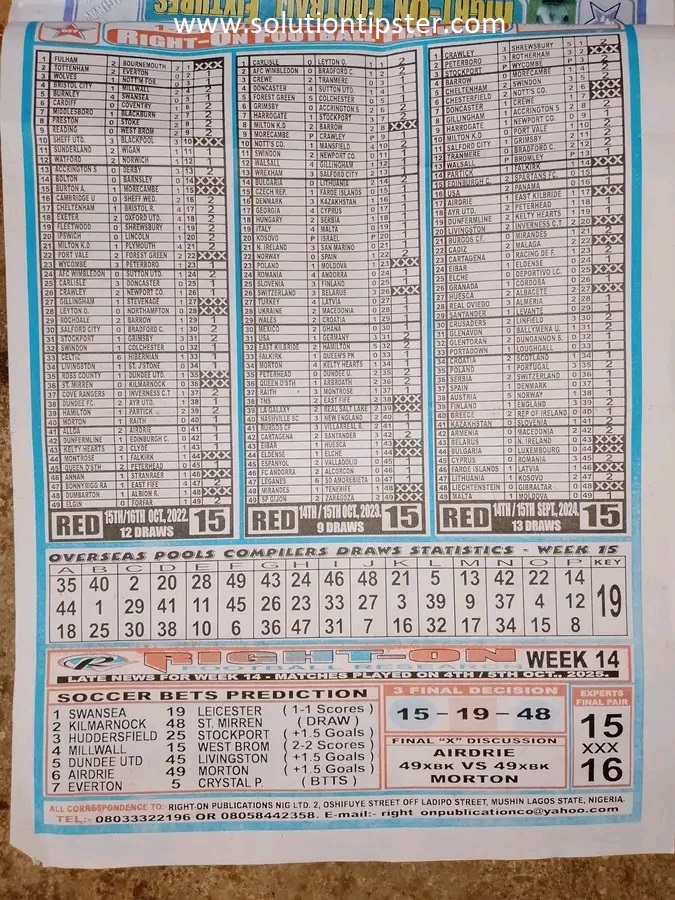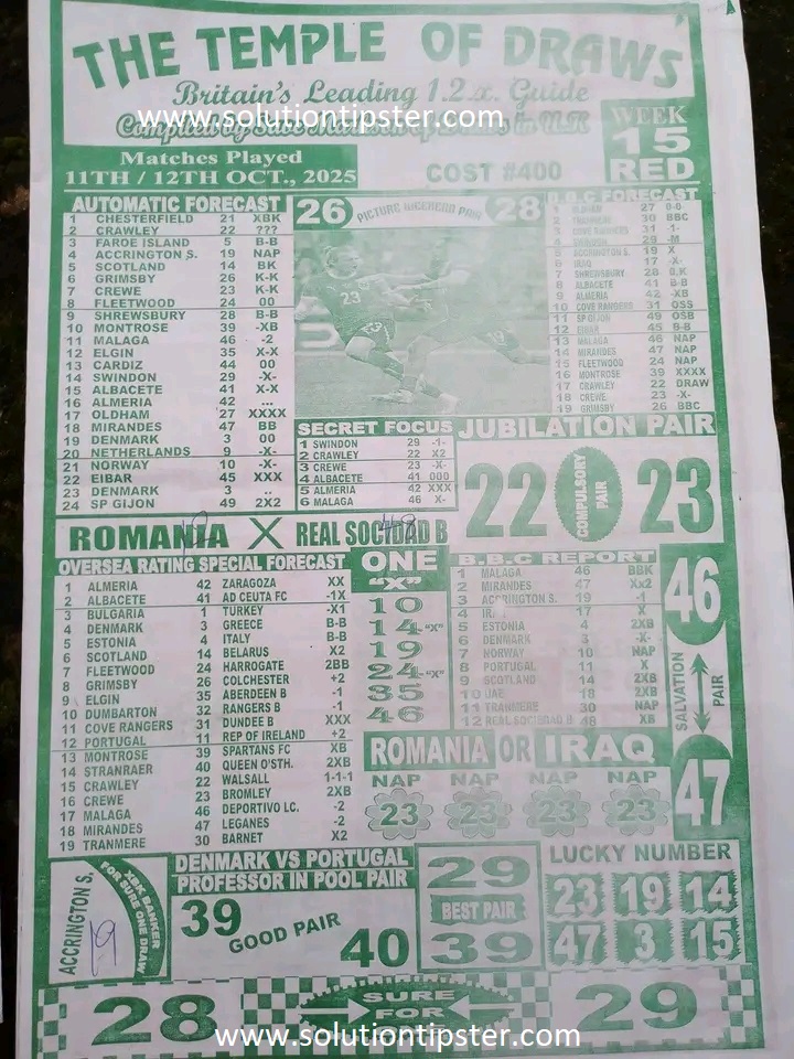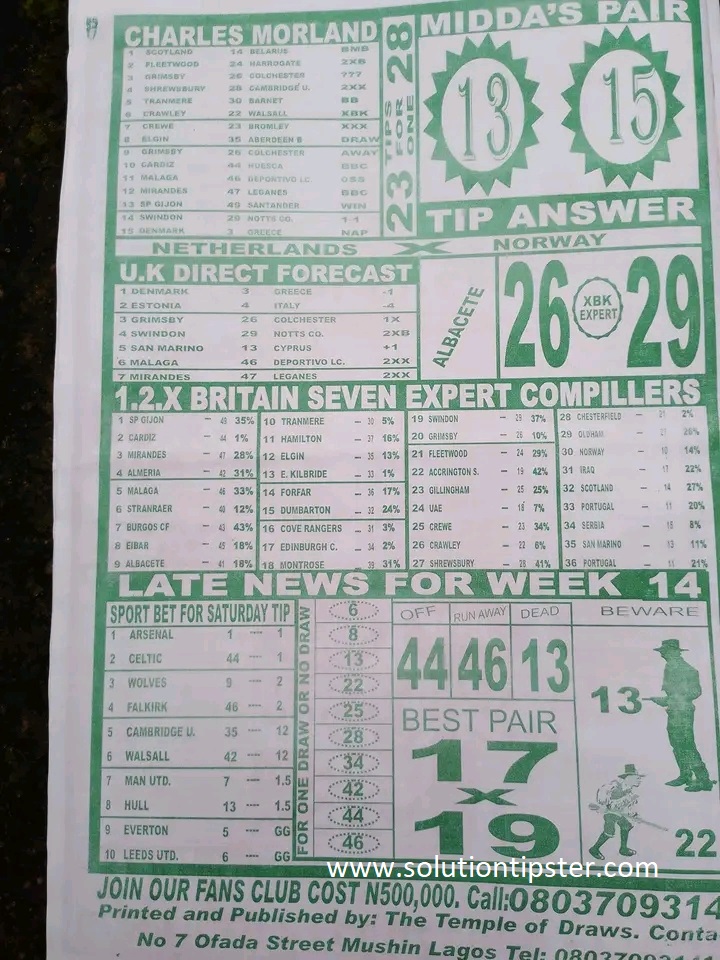 Here, we furnish you with weekly and current Pool Fixture Papers, Pools RSK papers and other forecasting papers for your forecast and winning pleasure. Click on the images to view them more clearly.