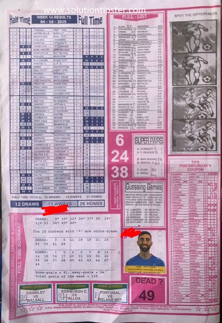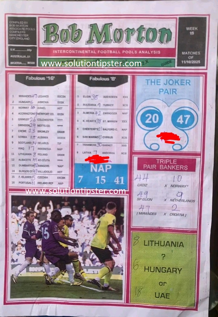 For Pools Live Results, Advance fixtures, Weekly Pools Tips and more, check – Poolsupdate.com