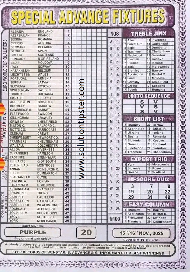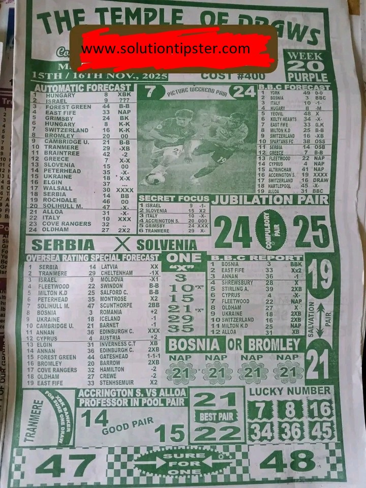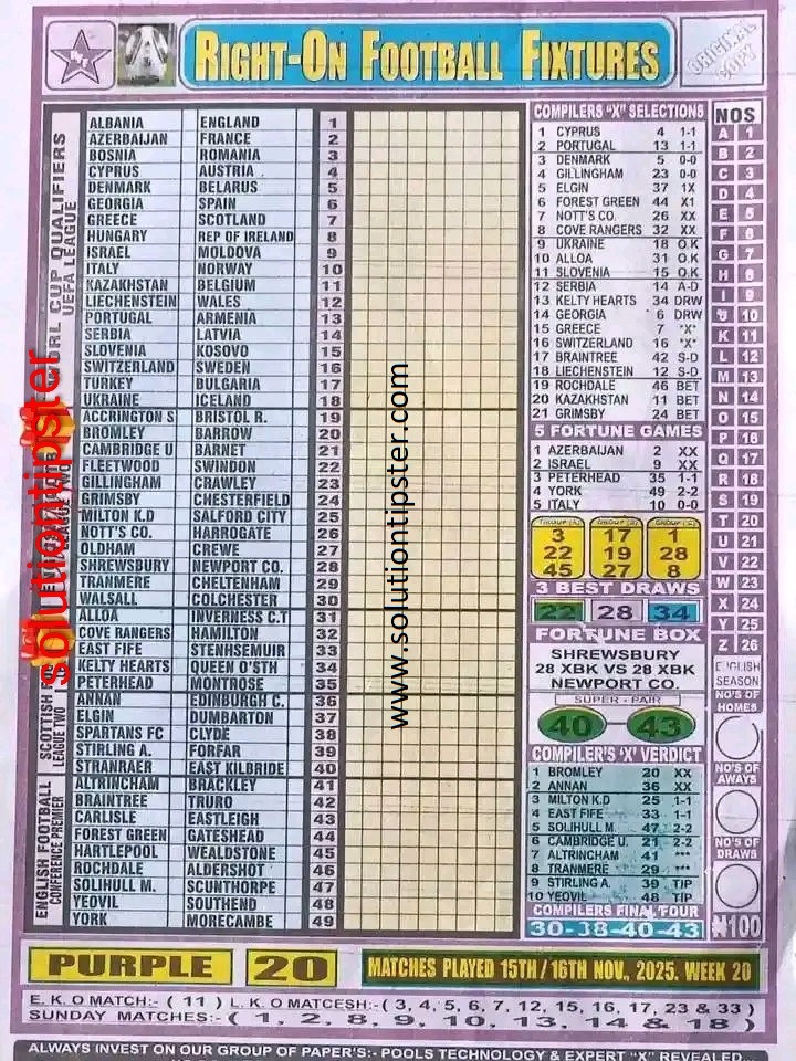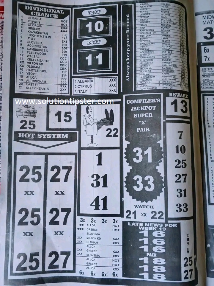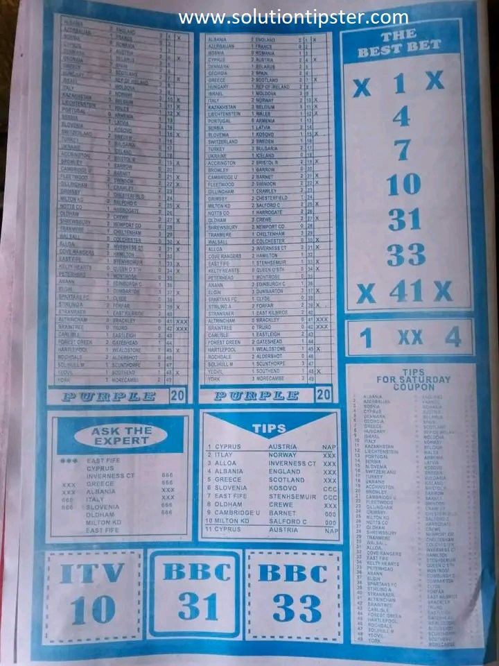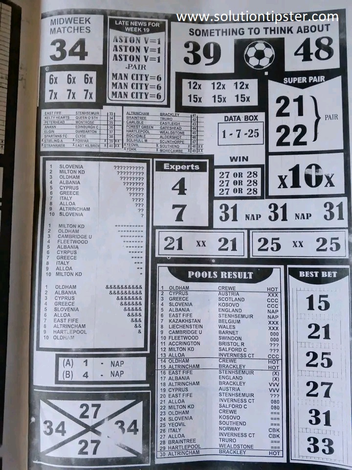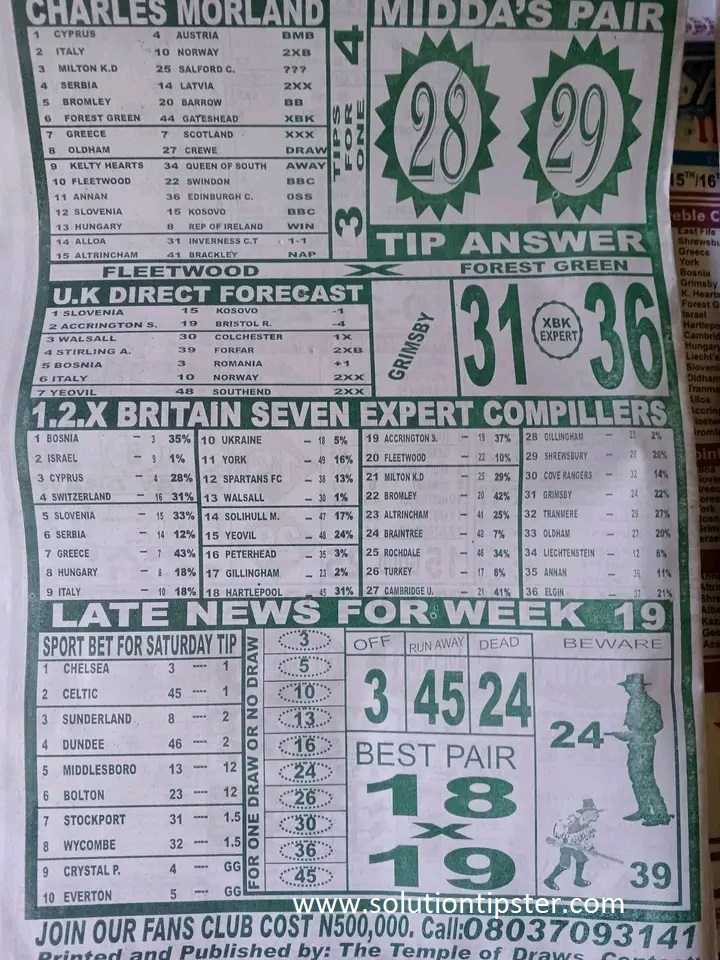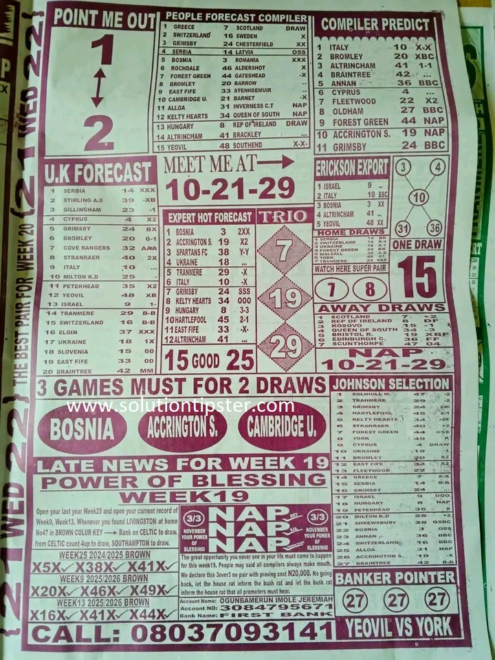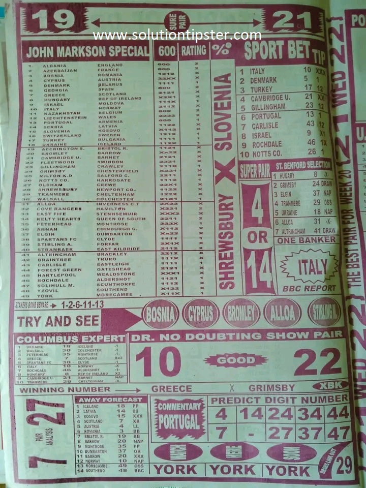 Here, we publish weekly and current Pool Fixtures Papers, Pools RSK papers and other forecasting papers for your forecast and winning pleasure. Click on the images to view them more clearly.