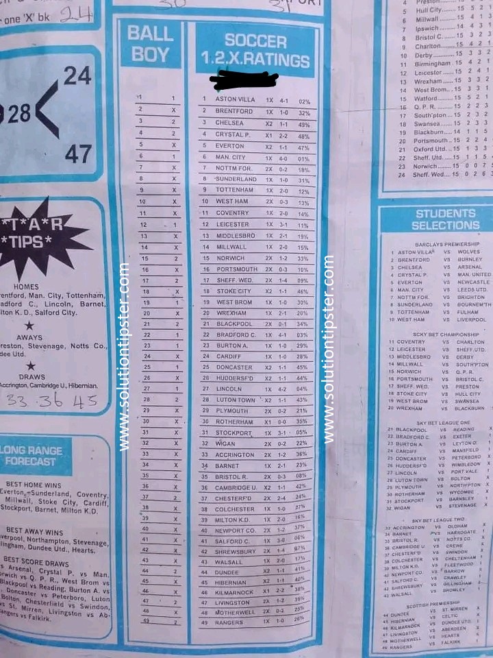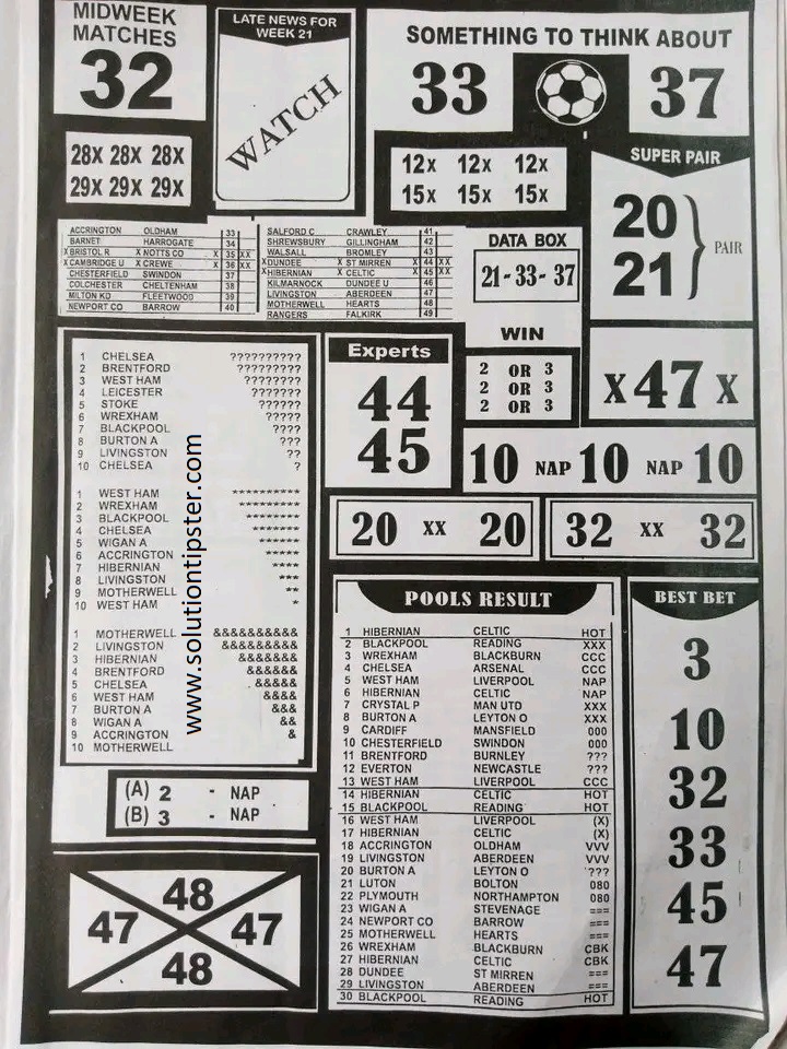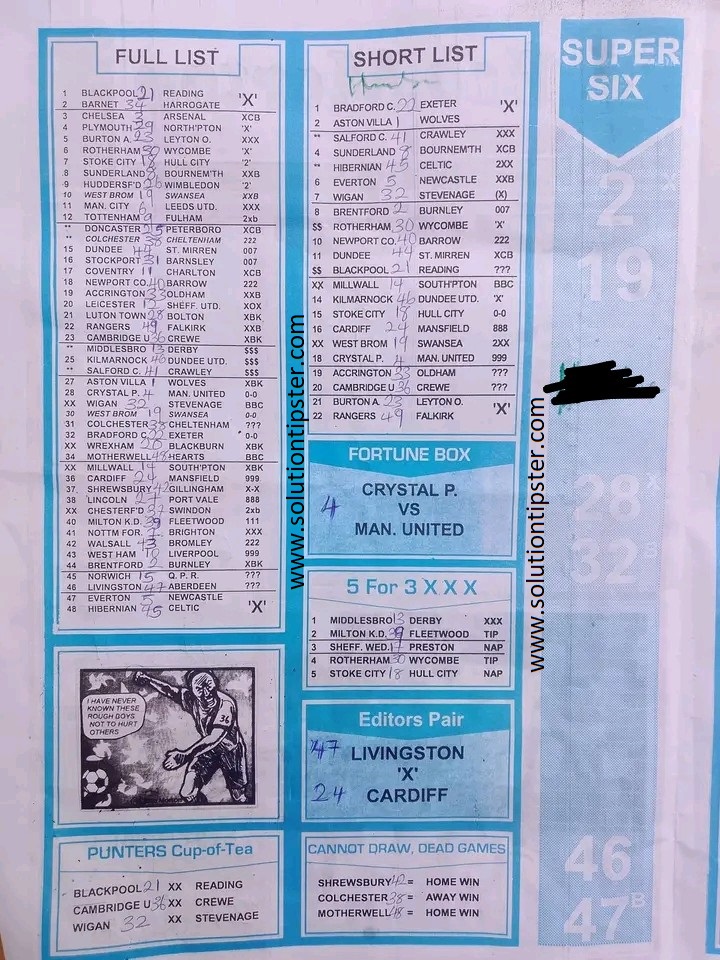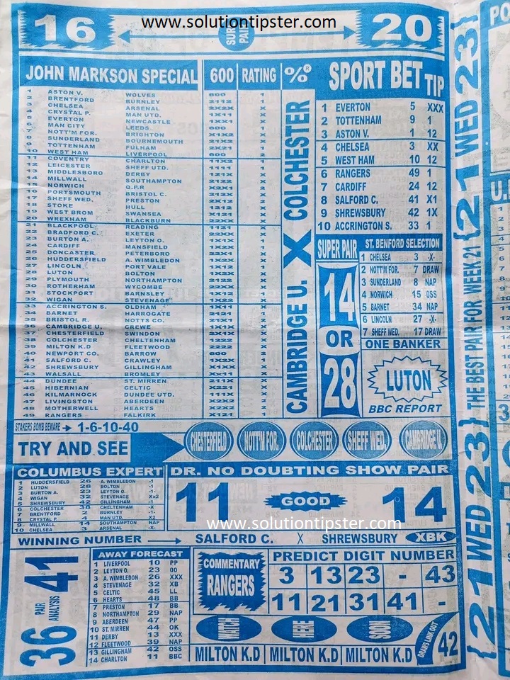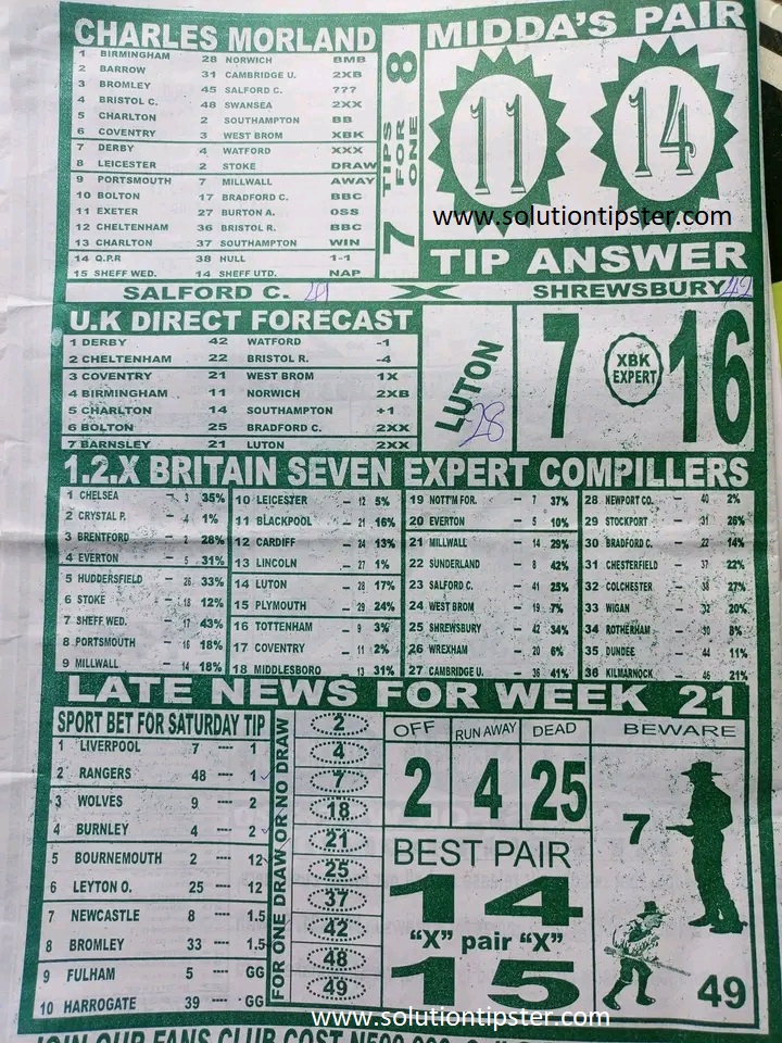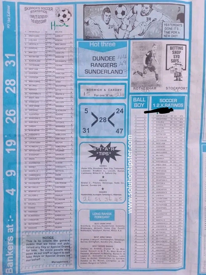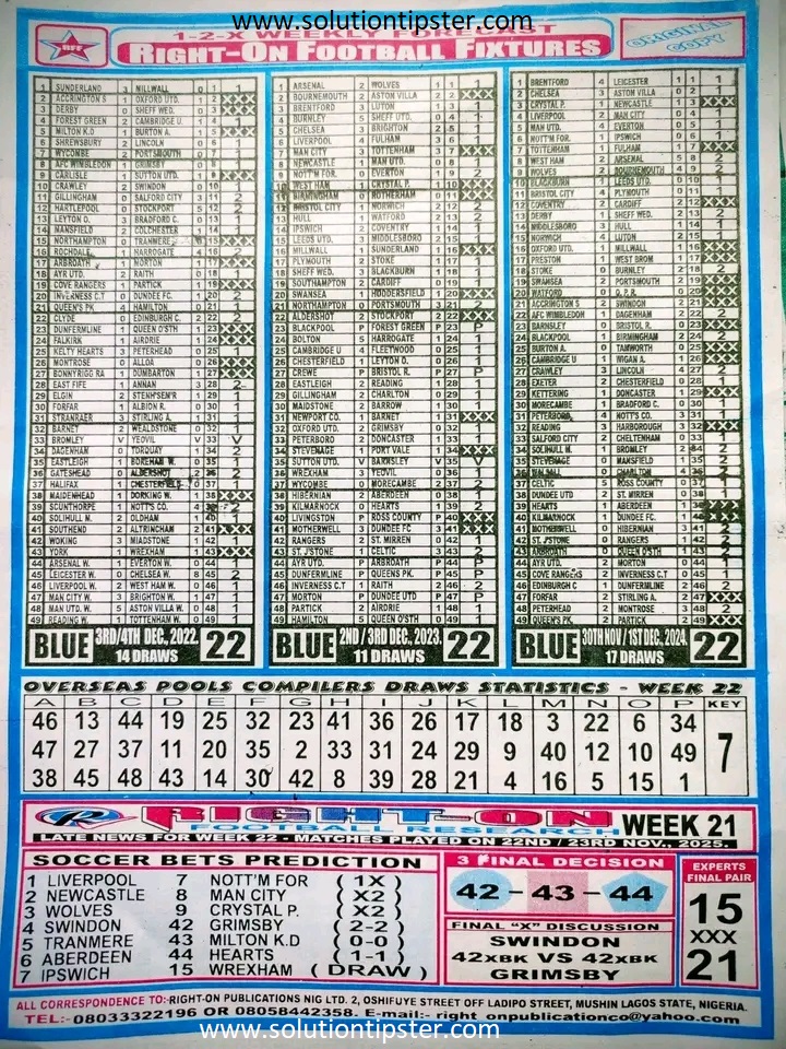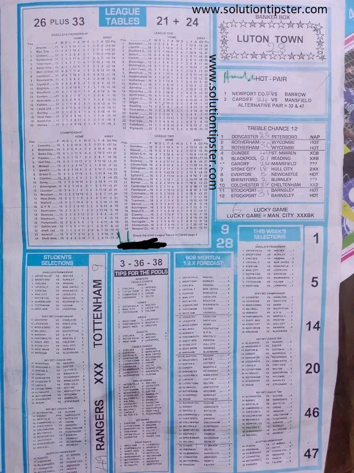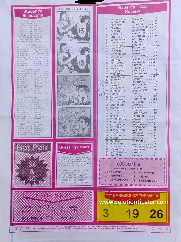 Here, we publish weekly and current Pool Fixtures Papers, Pools RSK papers and other forecasting papers for your forecast and winning pleasure. Click on the images to view them more clearly.