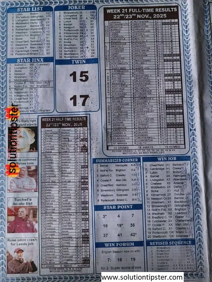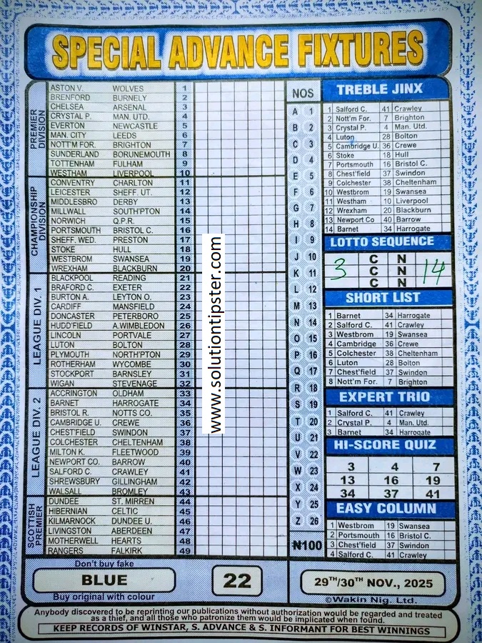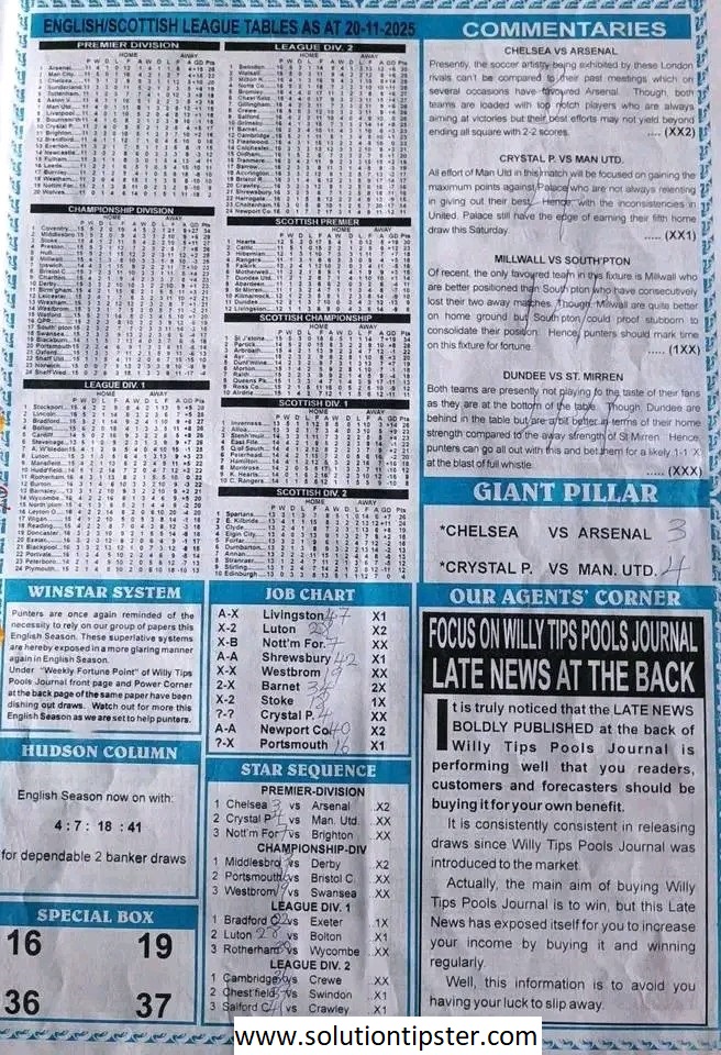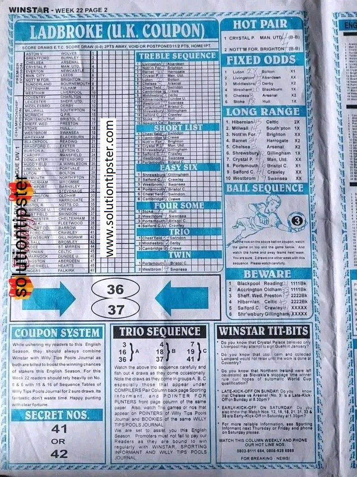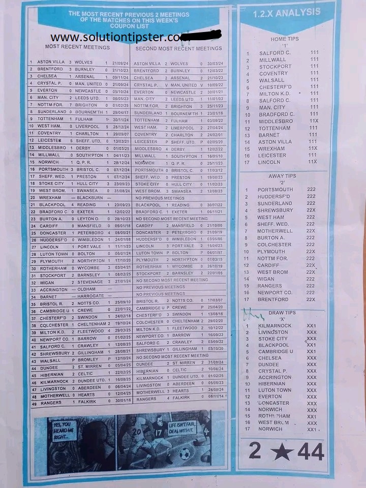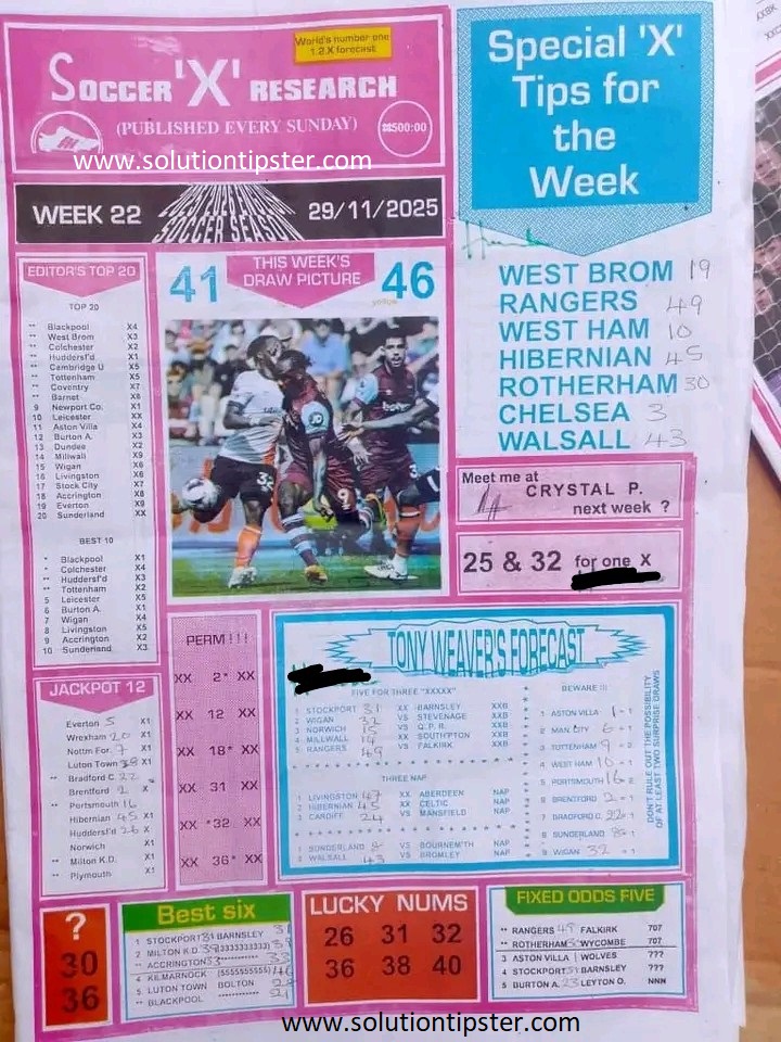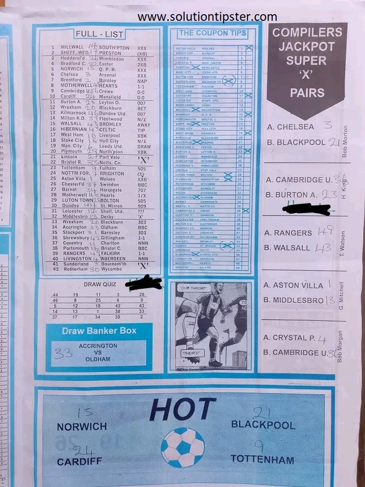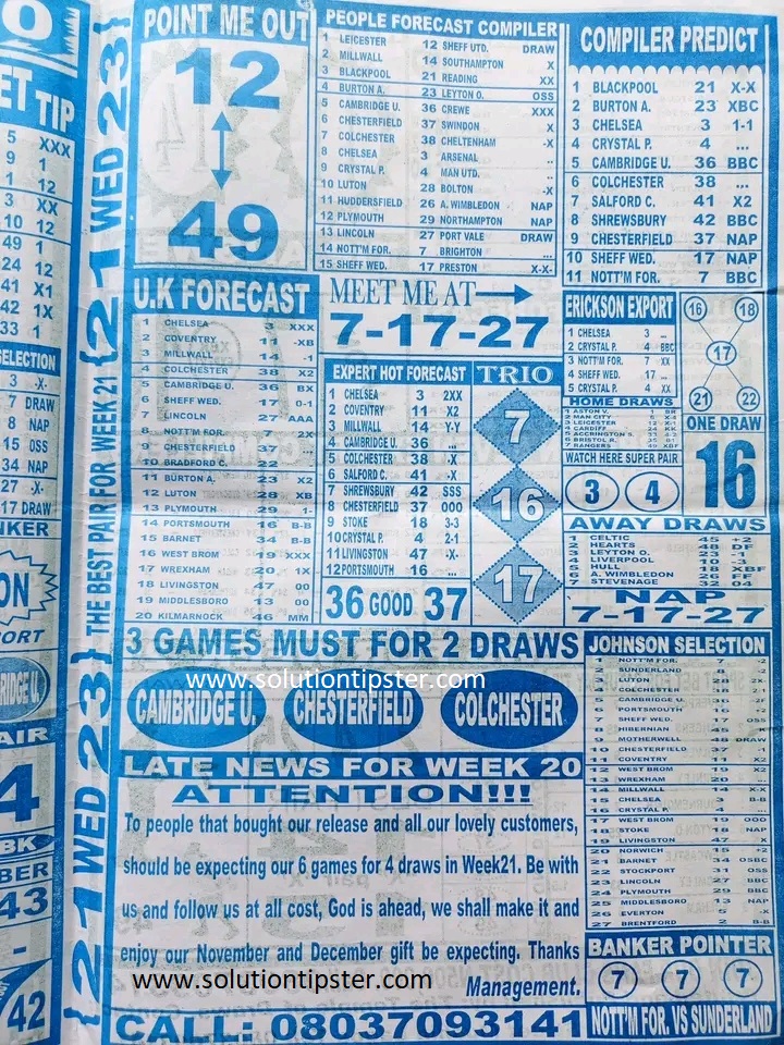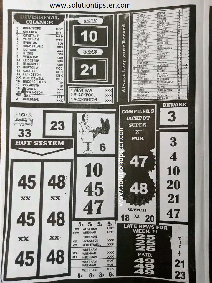 Here, we publish weekly and current Pool Fixtures Papers, Pools RSK papers and other forecasting papers for your forecast and winning pleasure. Click on the images to view them more clearly.