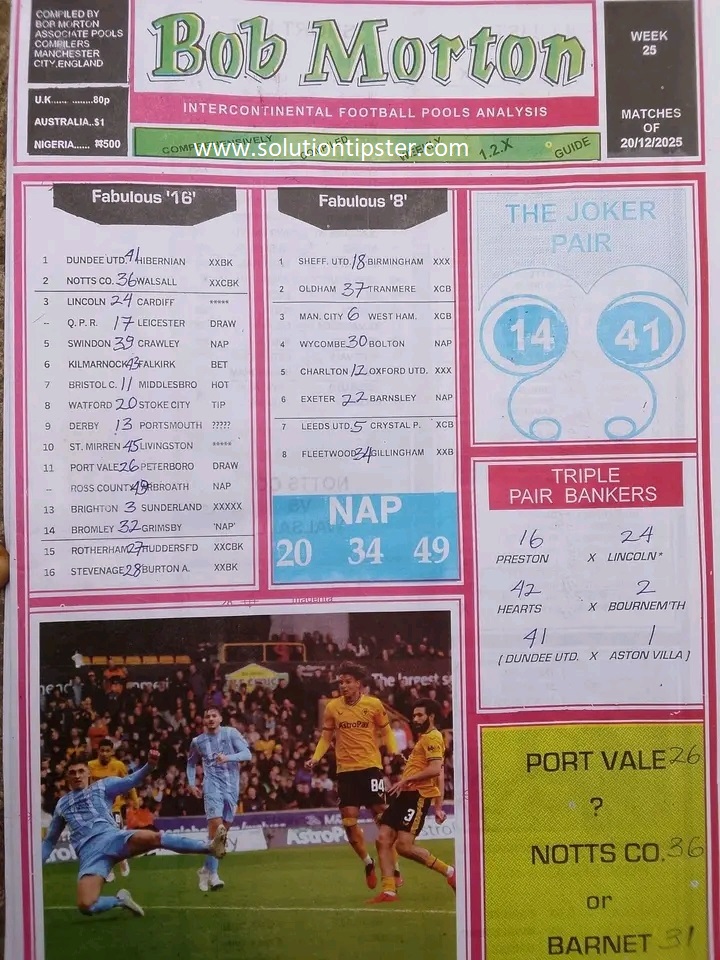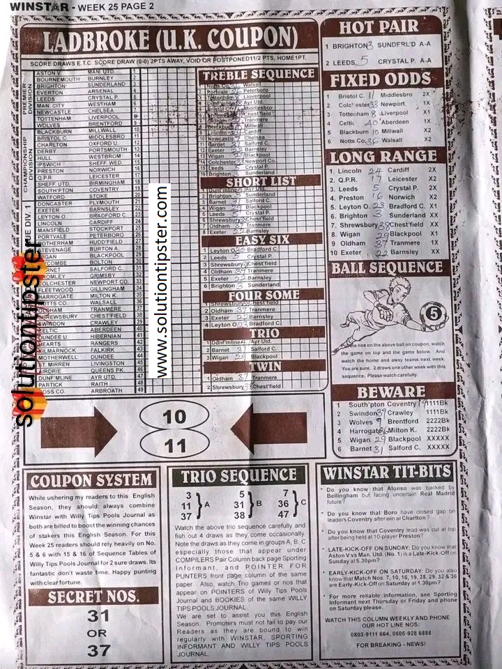 For Pools Live Results, Advance fixtures, Weekly Pools Tips and more, check – Poolsupdate.com