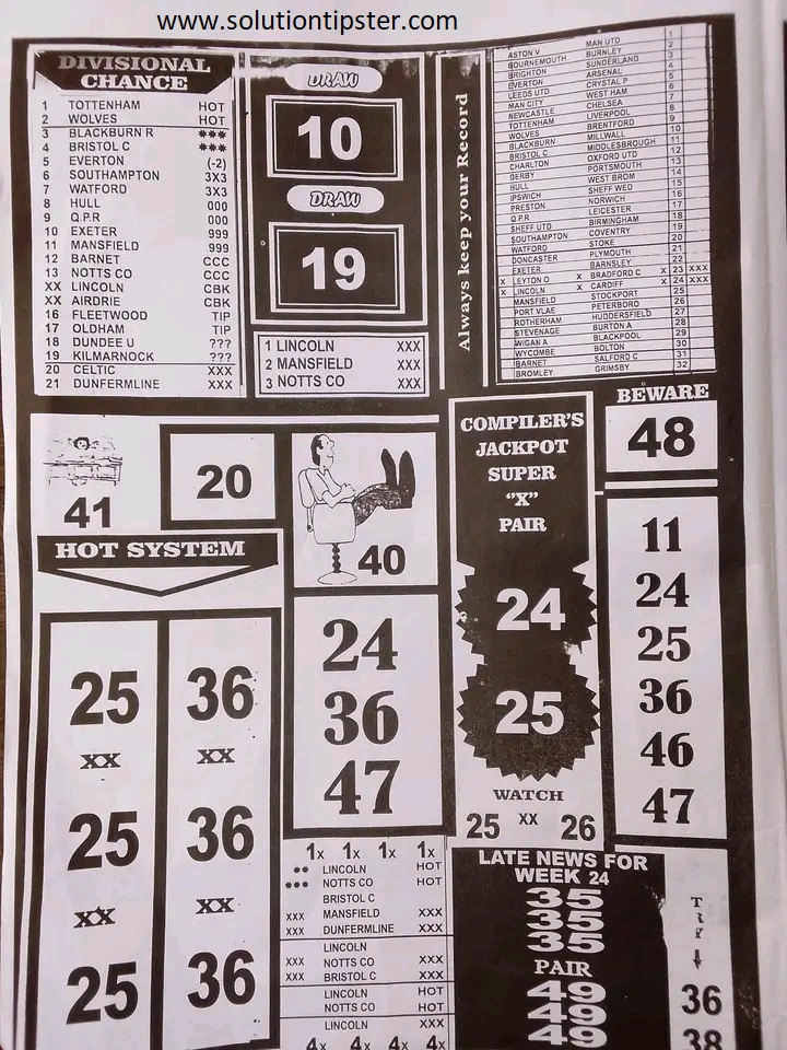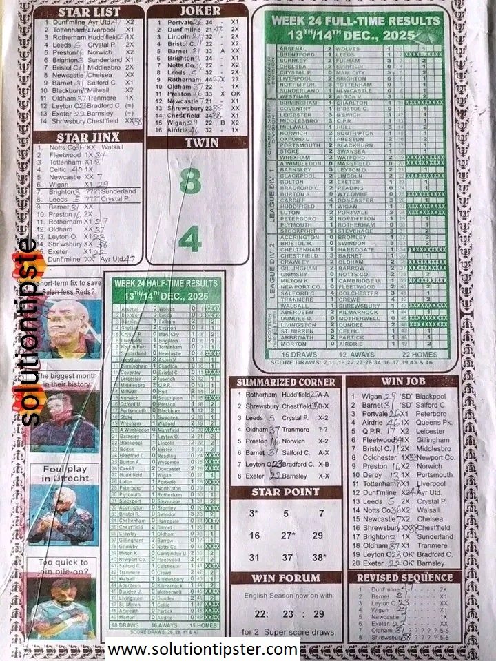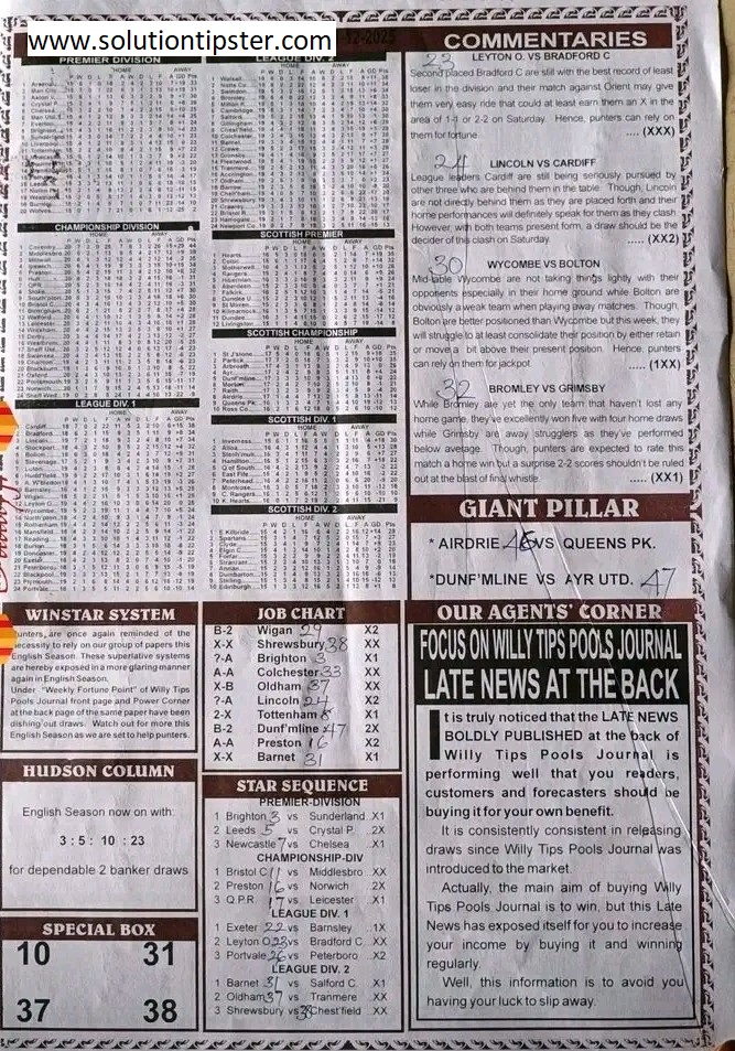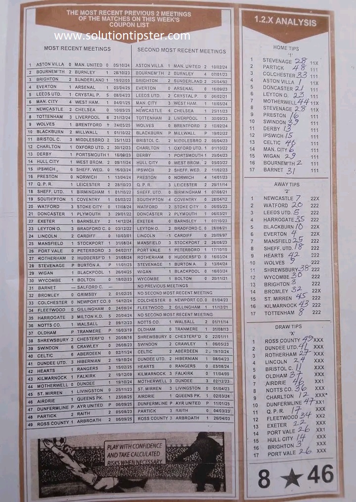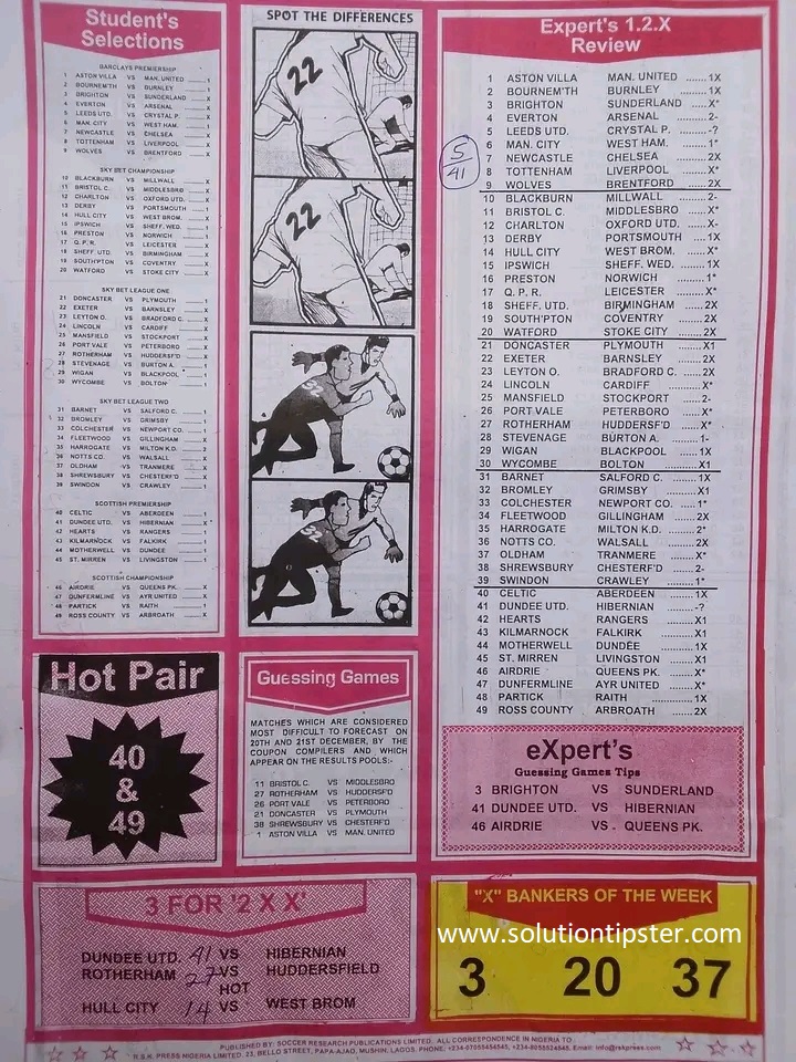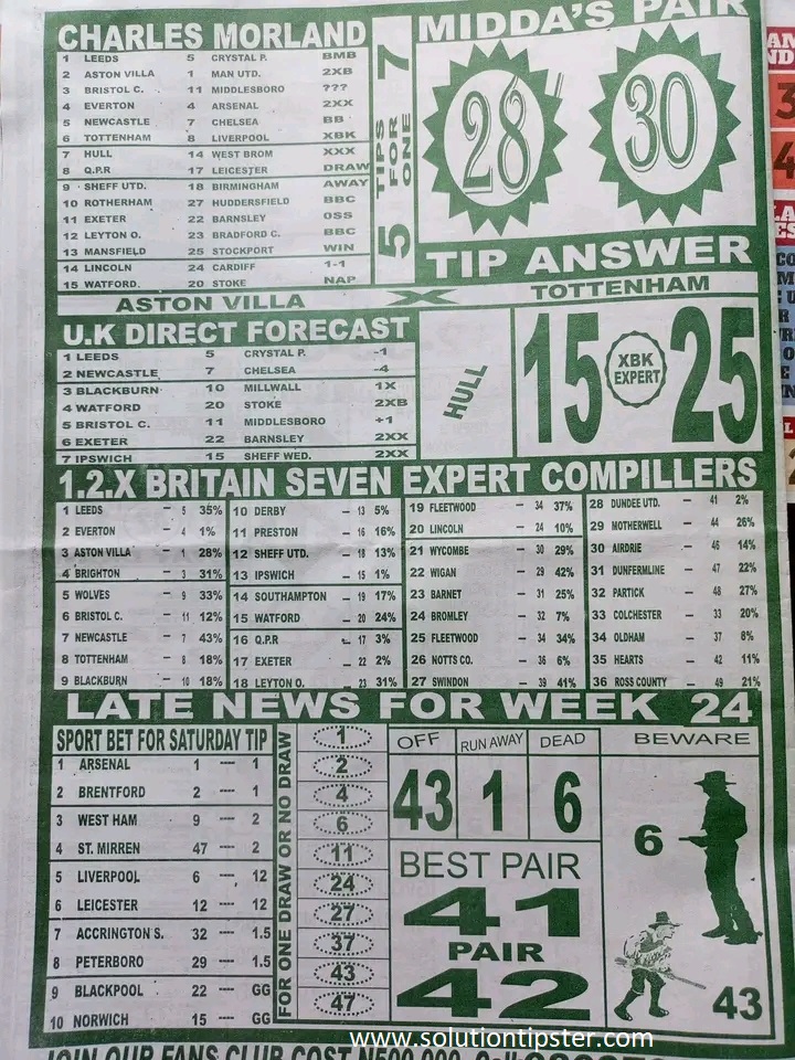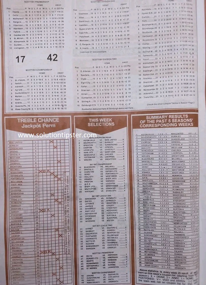 Here, we publish weekly and current Pool Fixtures Papers, Pools RSK papers and other forecasting papers for your forecast and winning pleasure. Click on the images to view them more clearly.