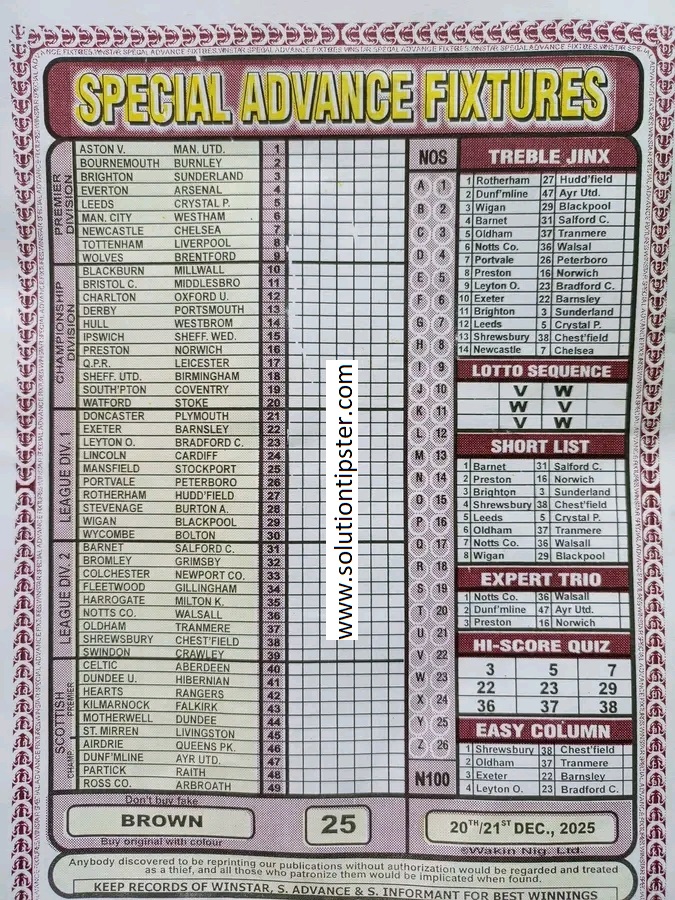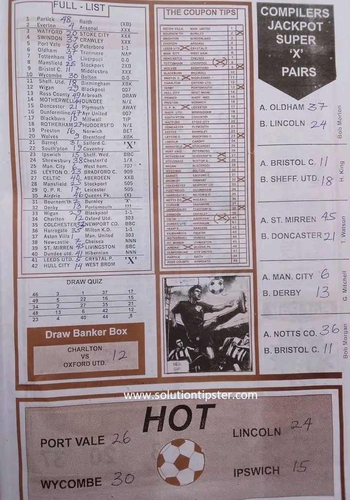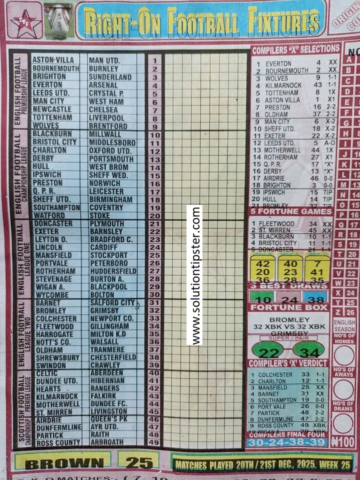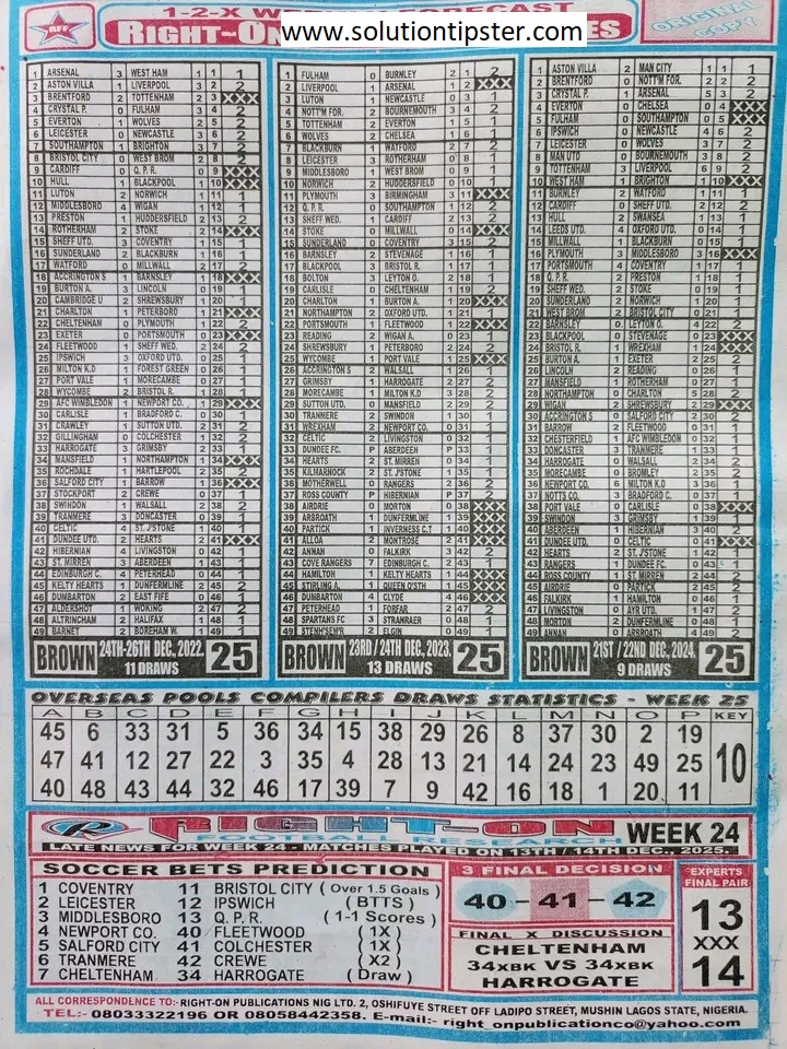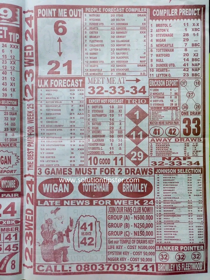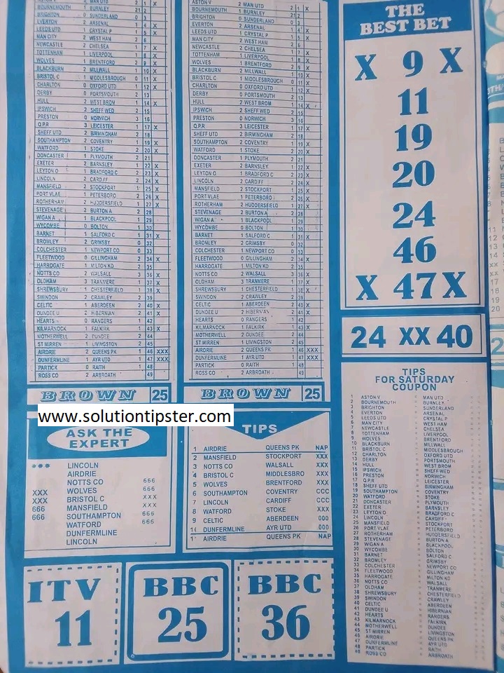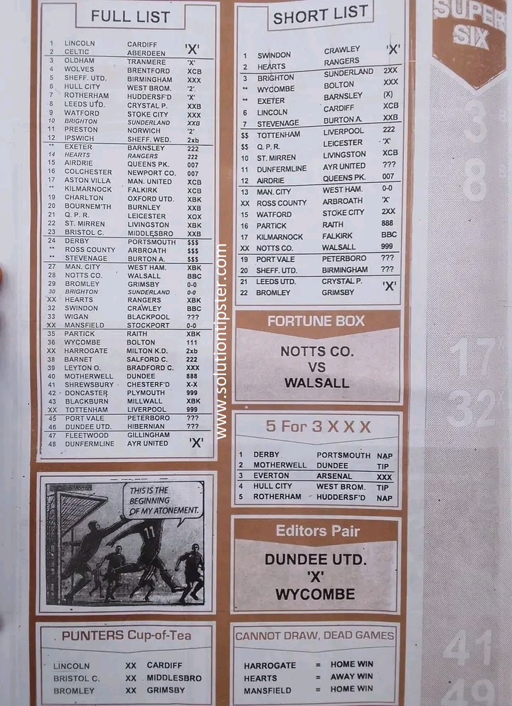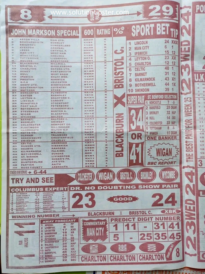 Here, we publish weekly and current Pool Fixtures Papers, Pools RSK papers and other forecasting papers for your forecast and winning pleasure. Click on the images to view them more clearly.