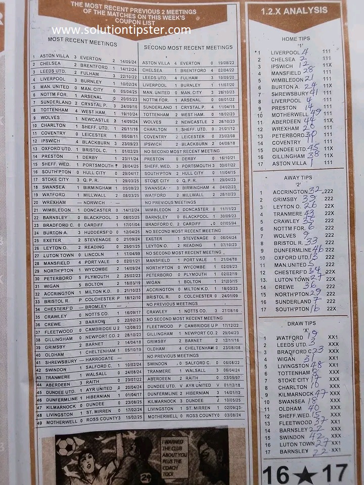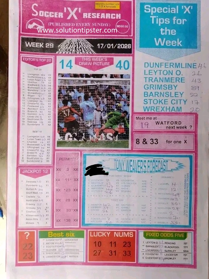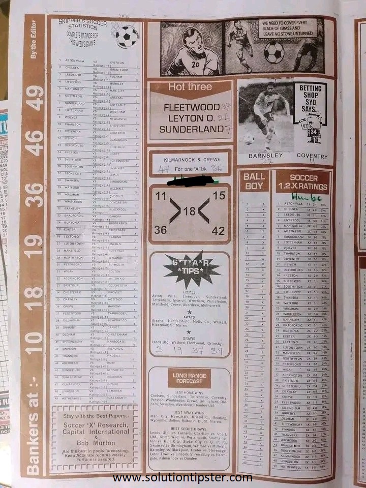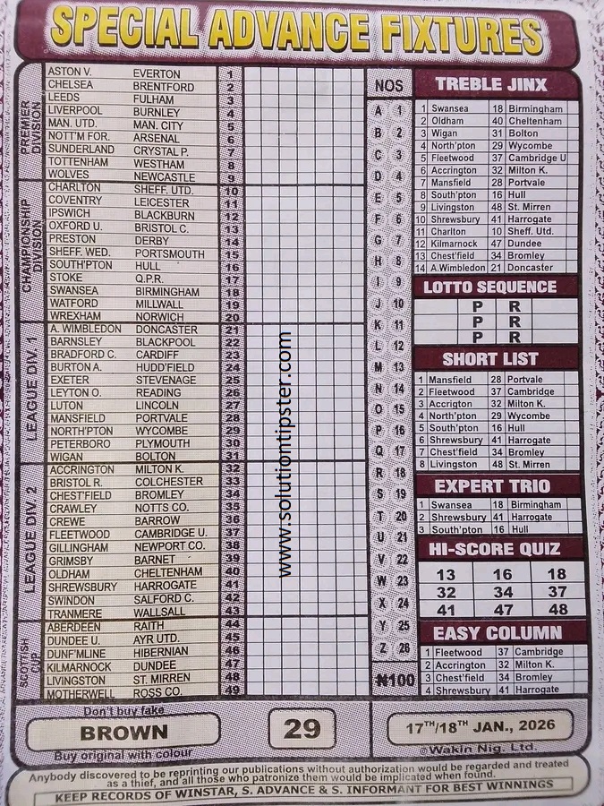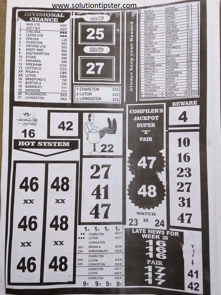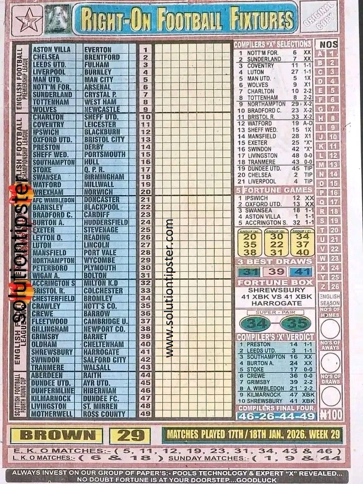 Here, we publish weekly and current Pool Fixtures Papers, Pools RSK papers and other forecasting papers for your forecast and winning pleasure. Click on the images to view them more clearly.