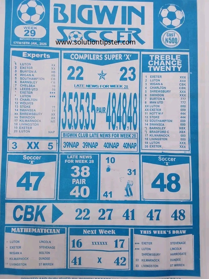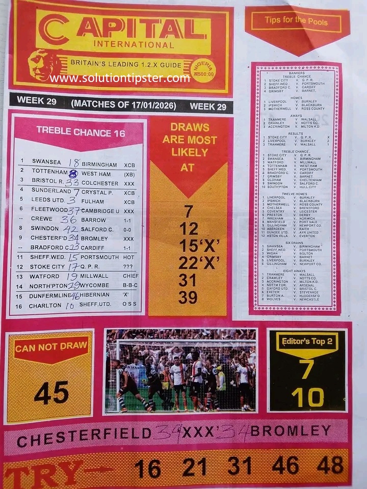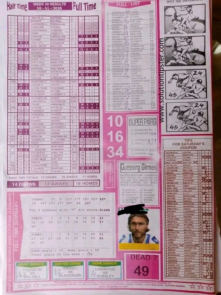 For Pools Live Results, Advance fixtures, Weekly Pools Tips and more, check – Poolsupdate.com