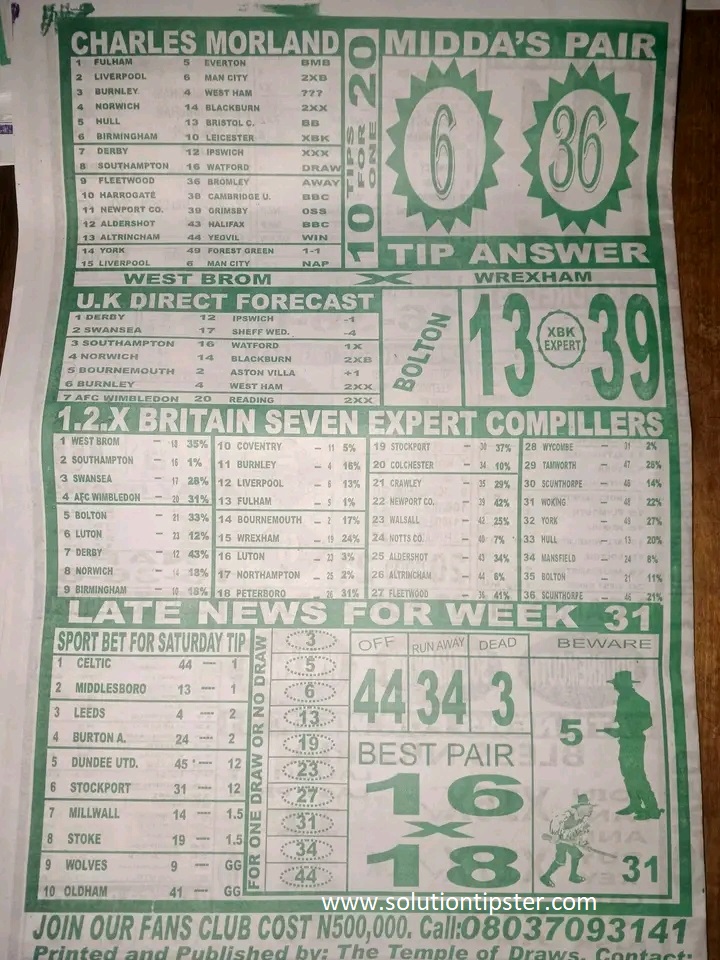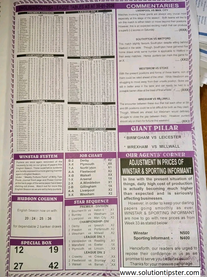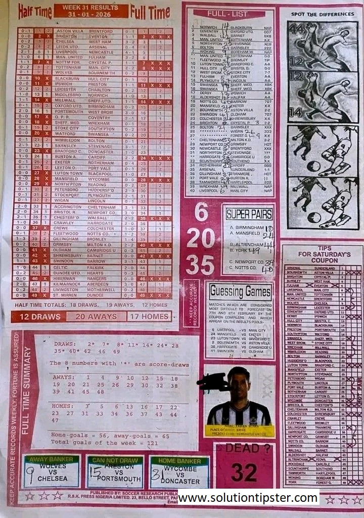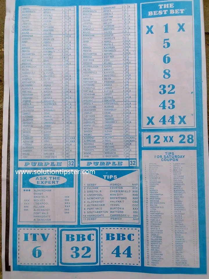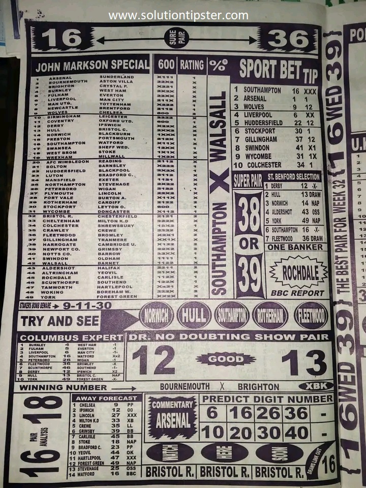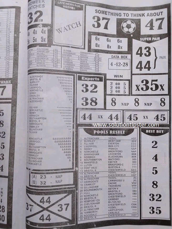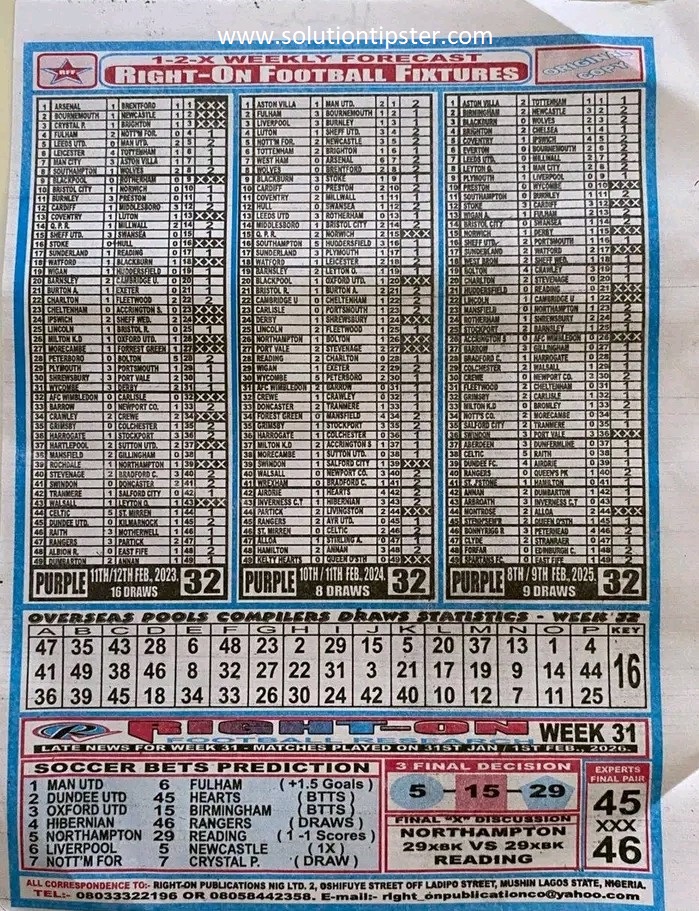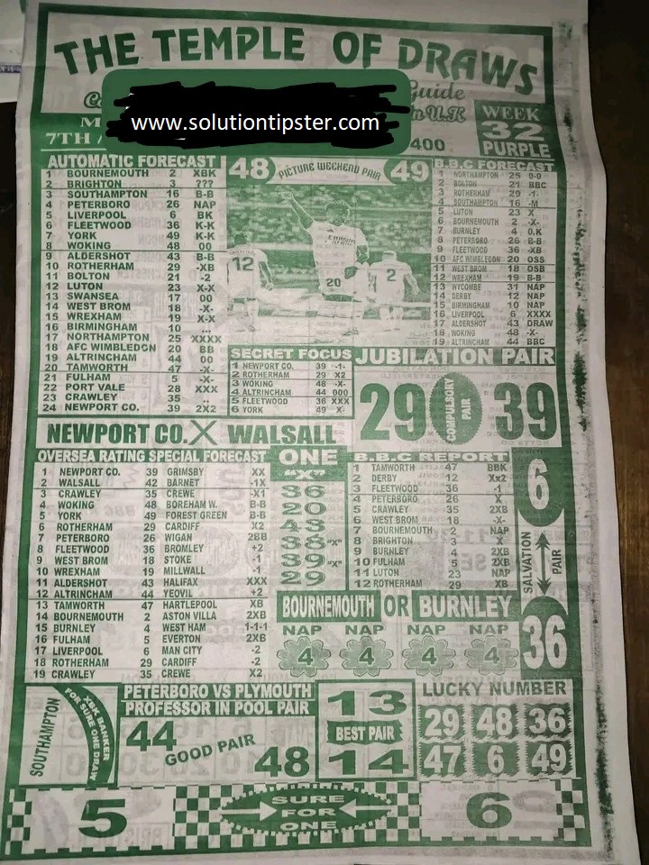 Here, we publish weekly and current Pool Fixtures Papers, Pools RSK papers and other forecasting papers for your forecast and winning pleasure. Click on the images to view them more clearly.