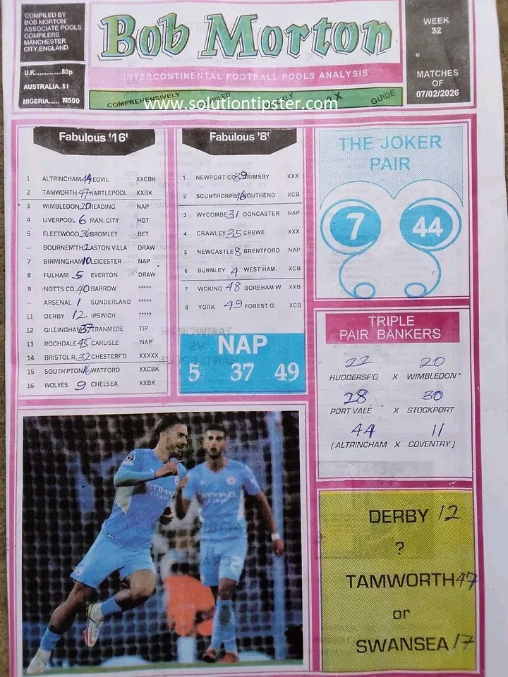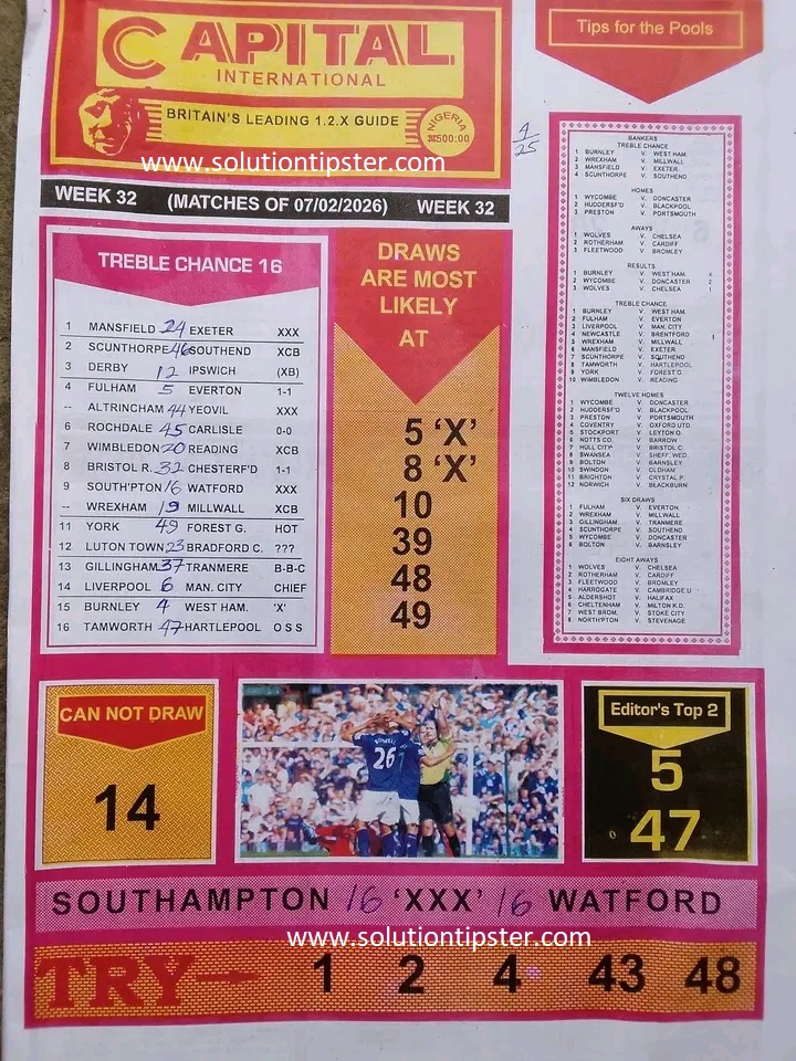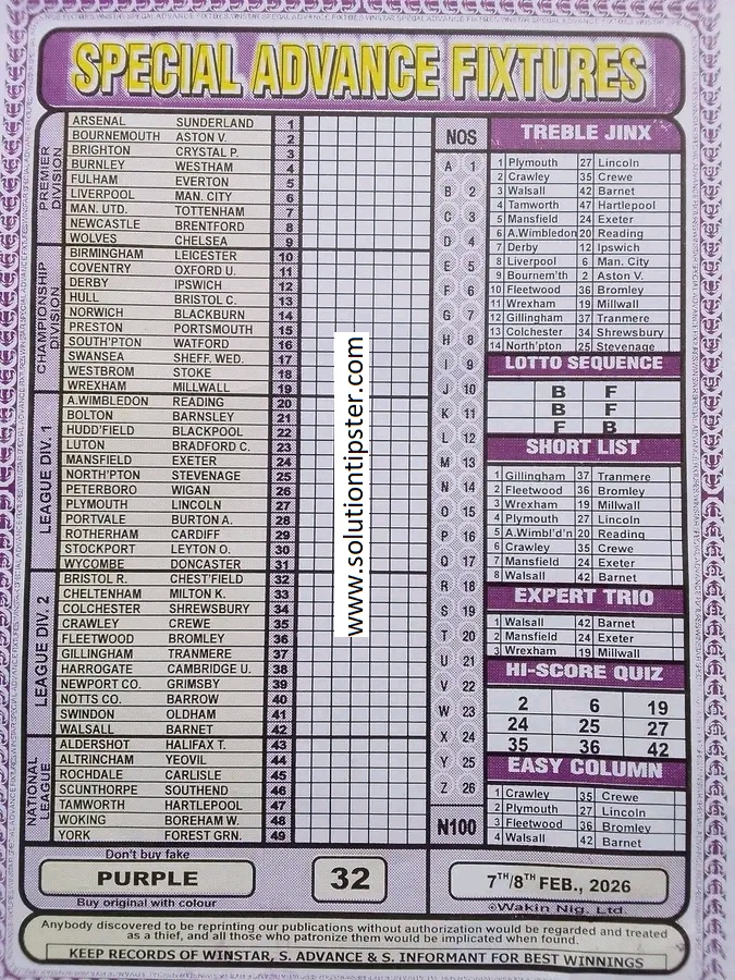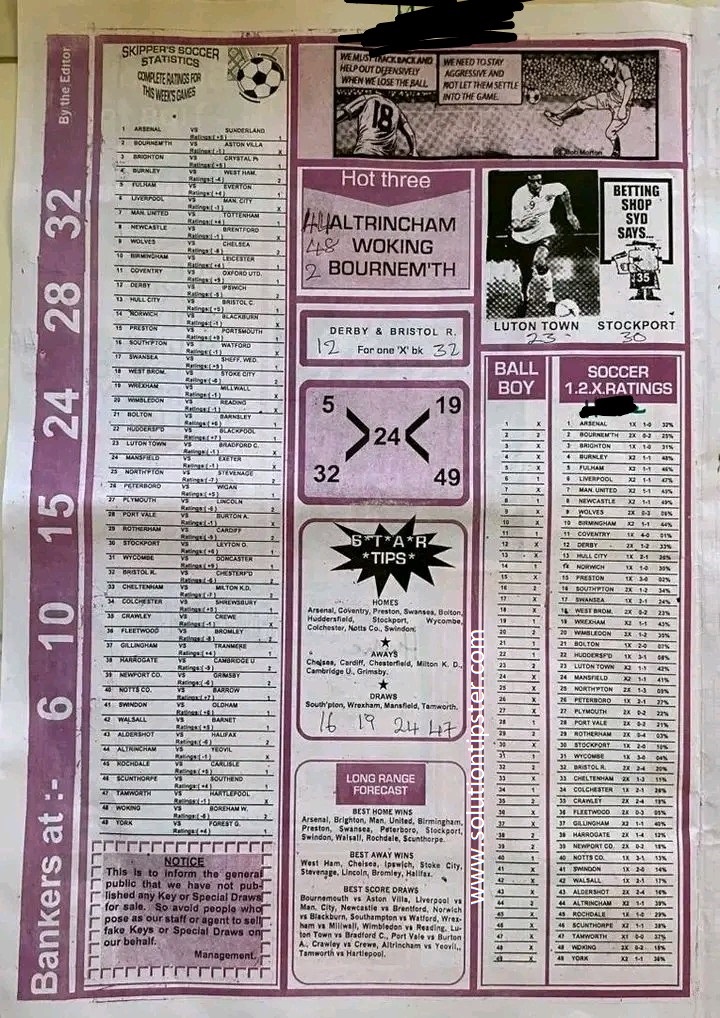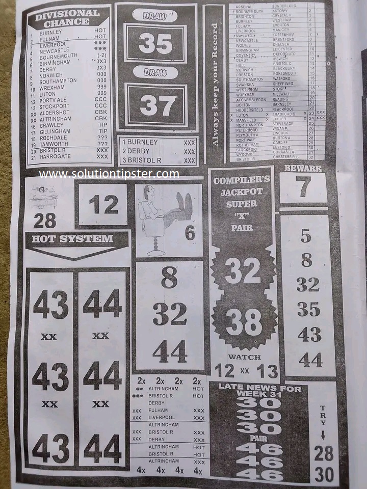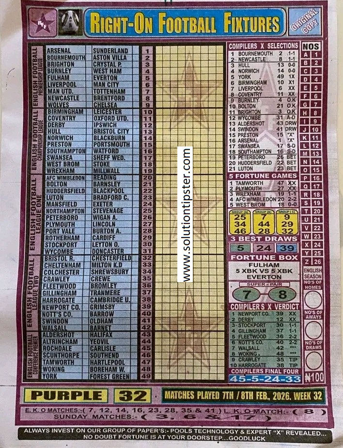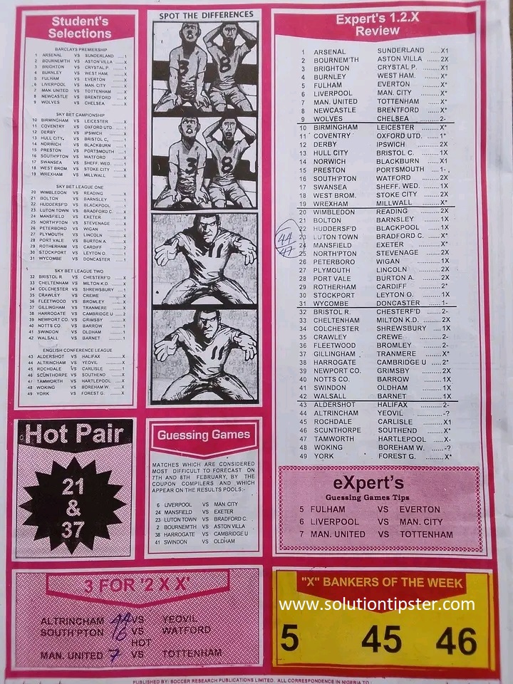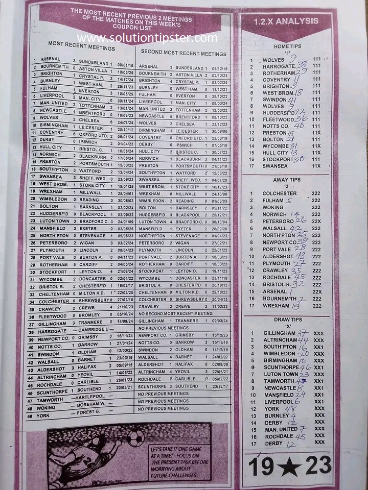 Here, we publish weekly and current Pool Fixtures Papers, Pools RSK papers and other forecasting papers for your forecast and winning pleasure. Click on the images to view them more clearly.