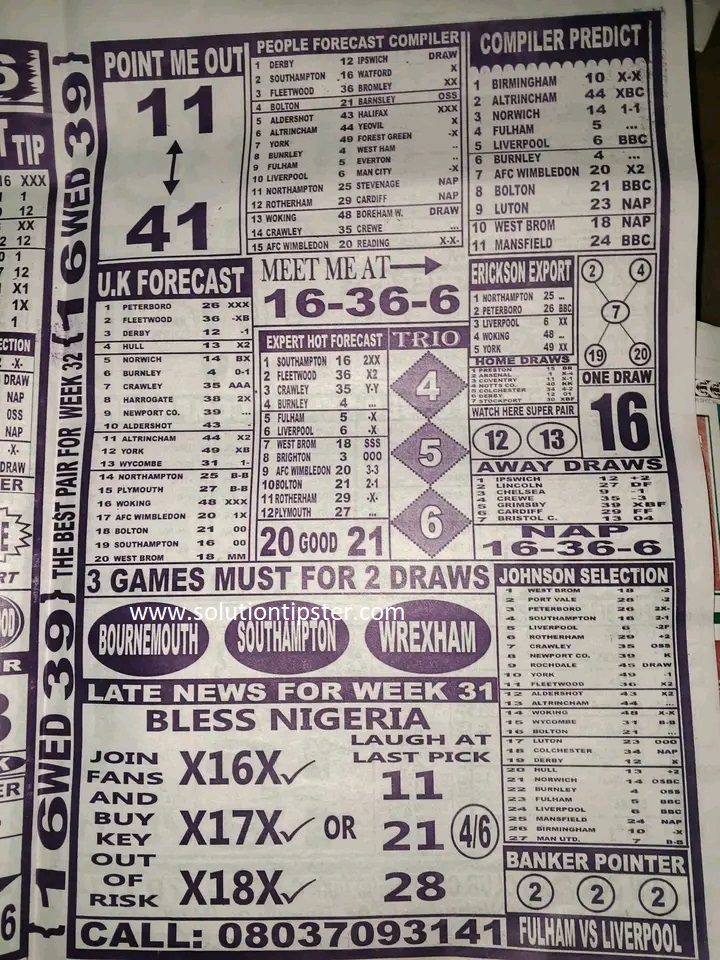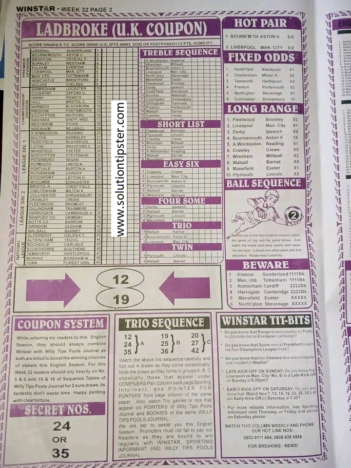 For Pools Live Results, Advance fixtures, Weekly Pools Tips and more, check – Poolsupdate.com