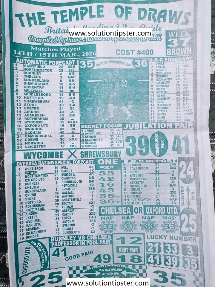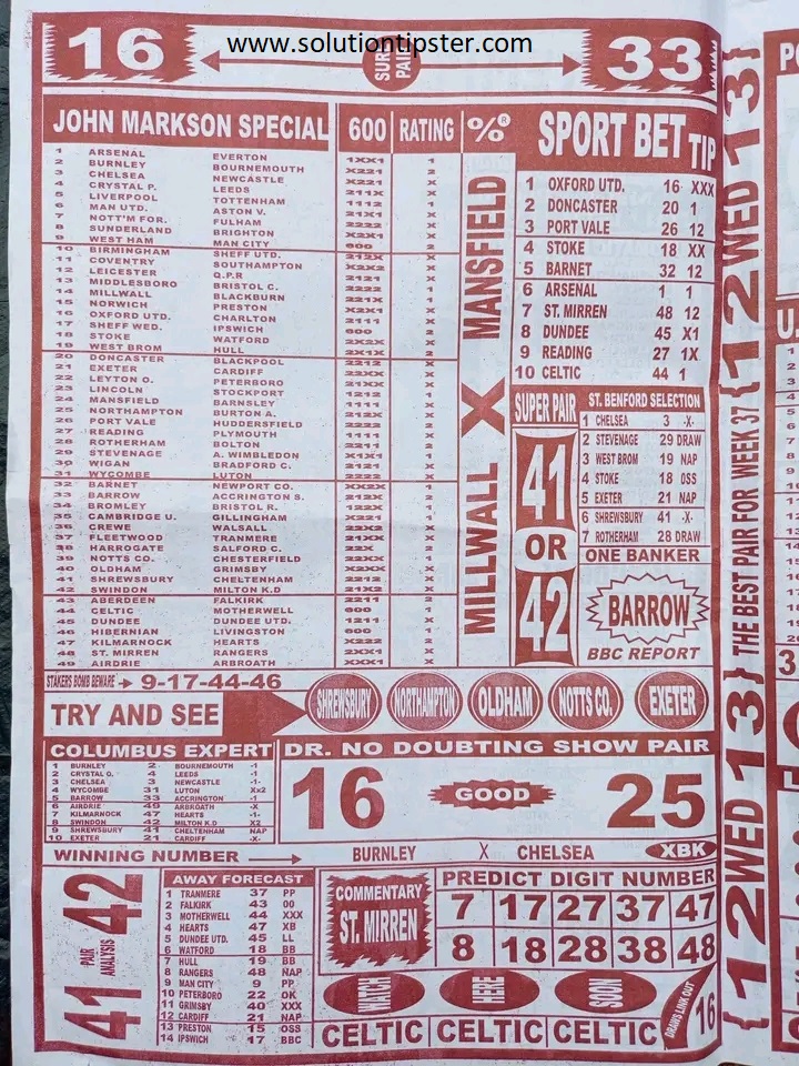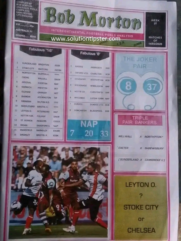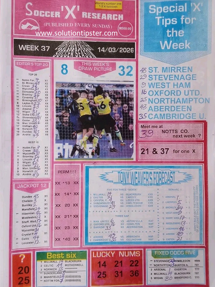 Week 37 Pools RSK Papers 2026…. Enjoy your Forecast