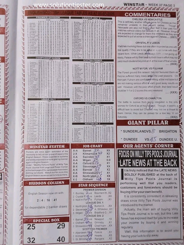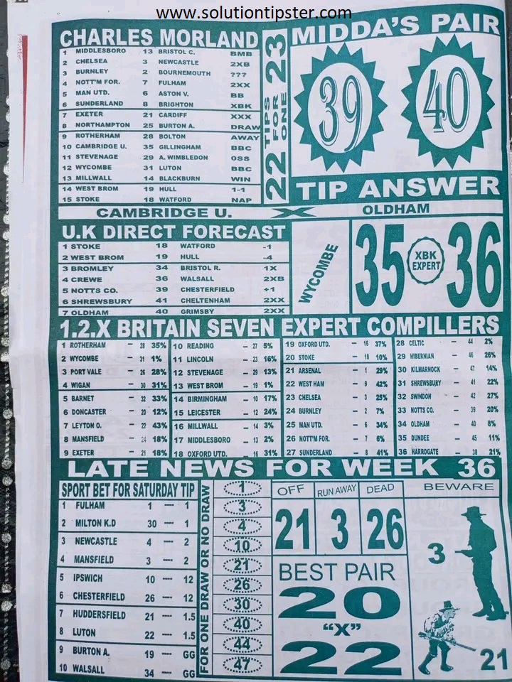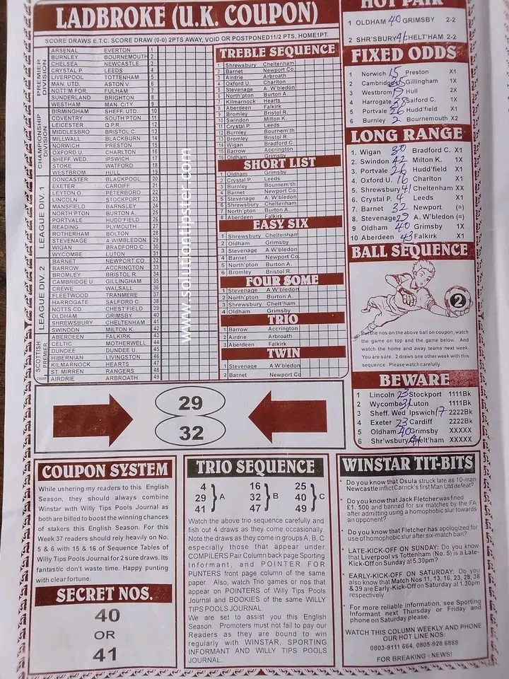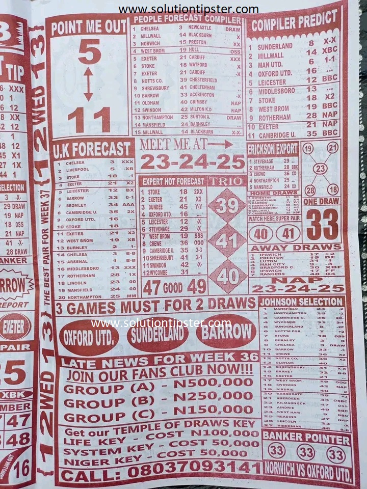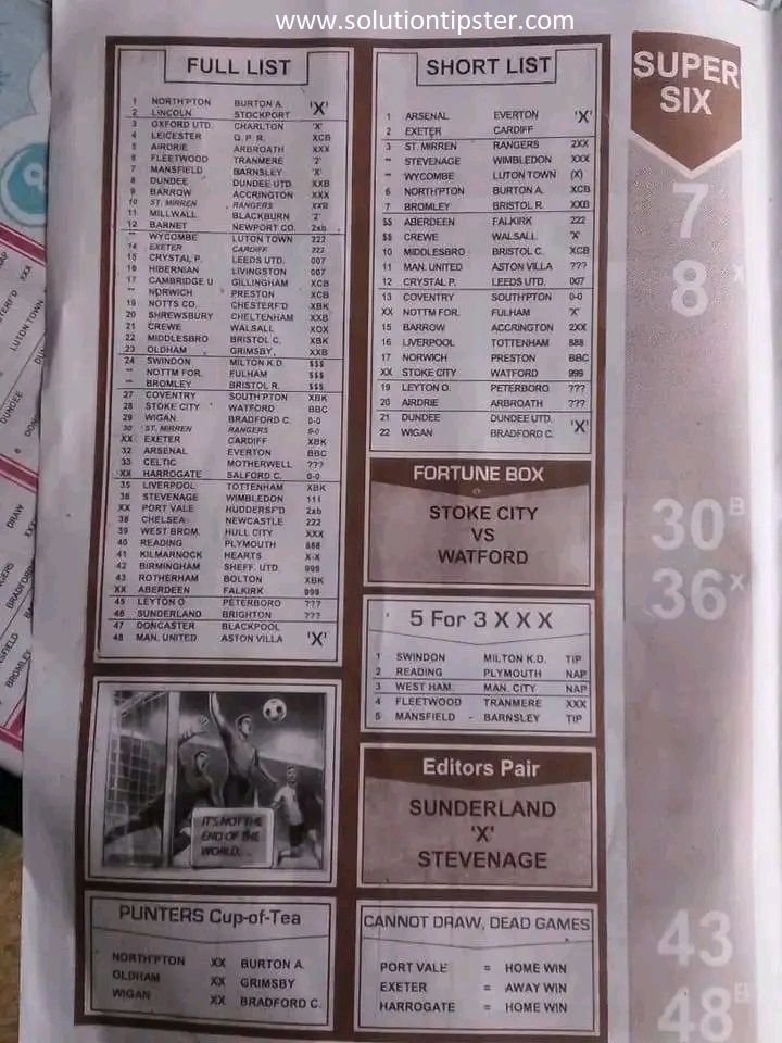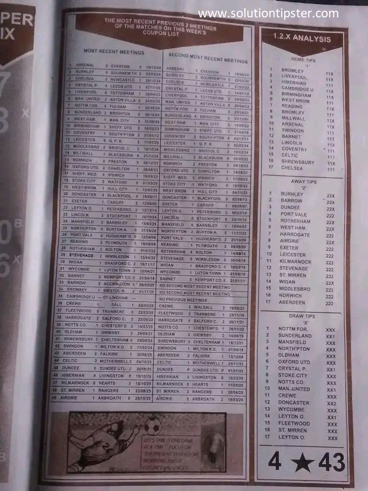 Here, we publish weekly and current Pool Fixtures Papers, Pools RSK papers and other forecasting papers for your forecast and winning pleasure. Click on the images to view them more clearly.