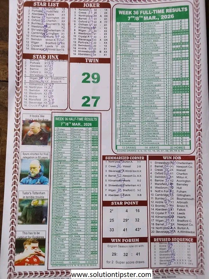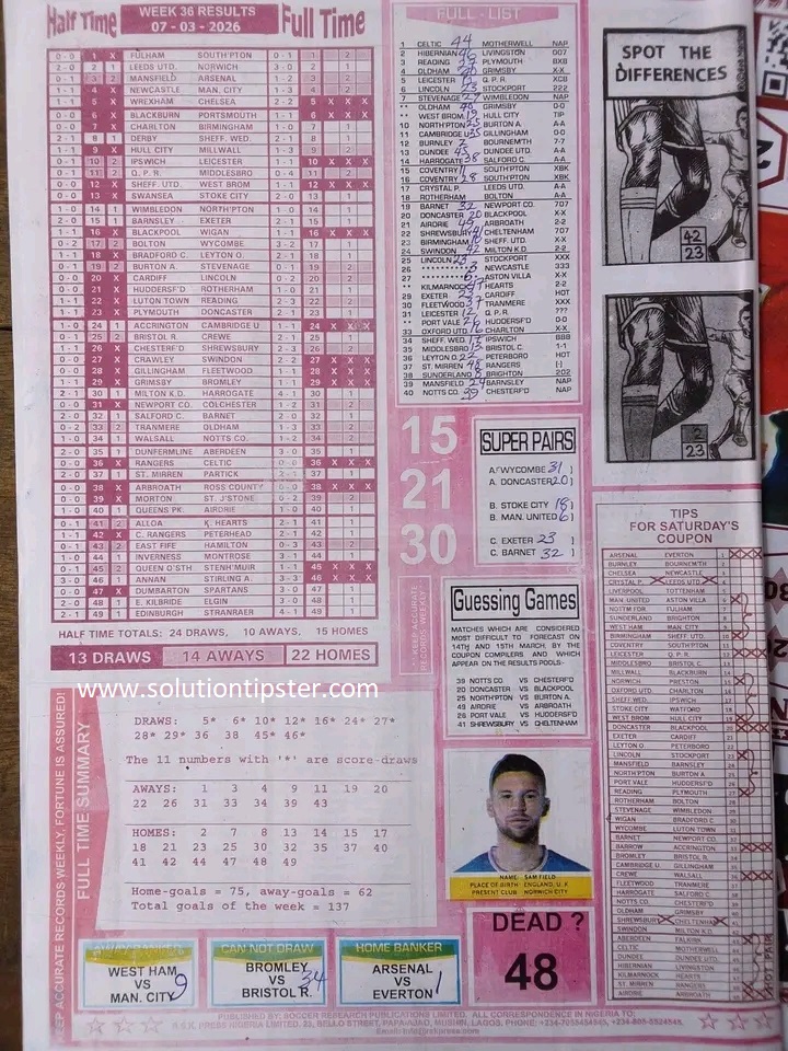 For Pools Live Results, Advance fixtures, Weekly Pools Tips and more, check – Poolsupdate.com